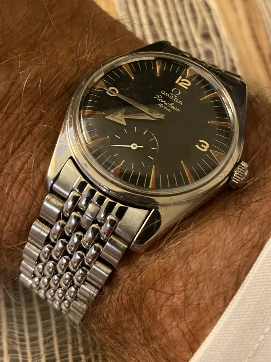 What a beauty! Well, this has been an education. I don't think that I've ever seen that style of Ranchero with the small seconds crosshair and with a stainless steel case. Very atttractive! .Right back at you with mine: