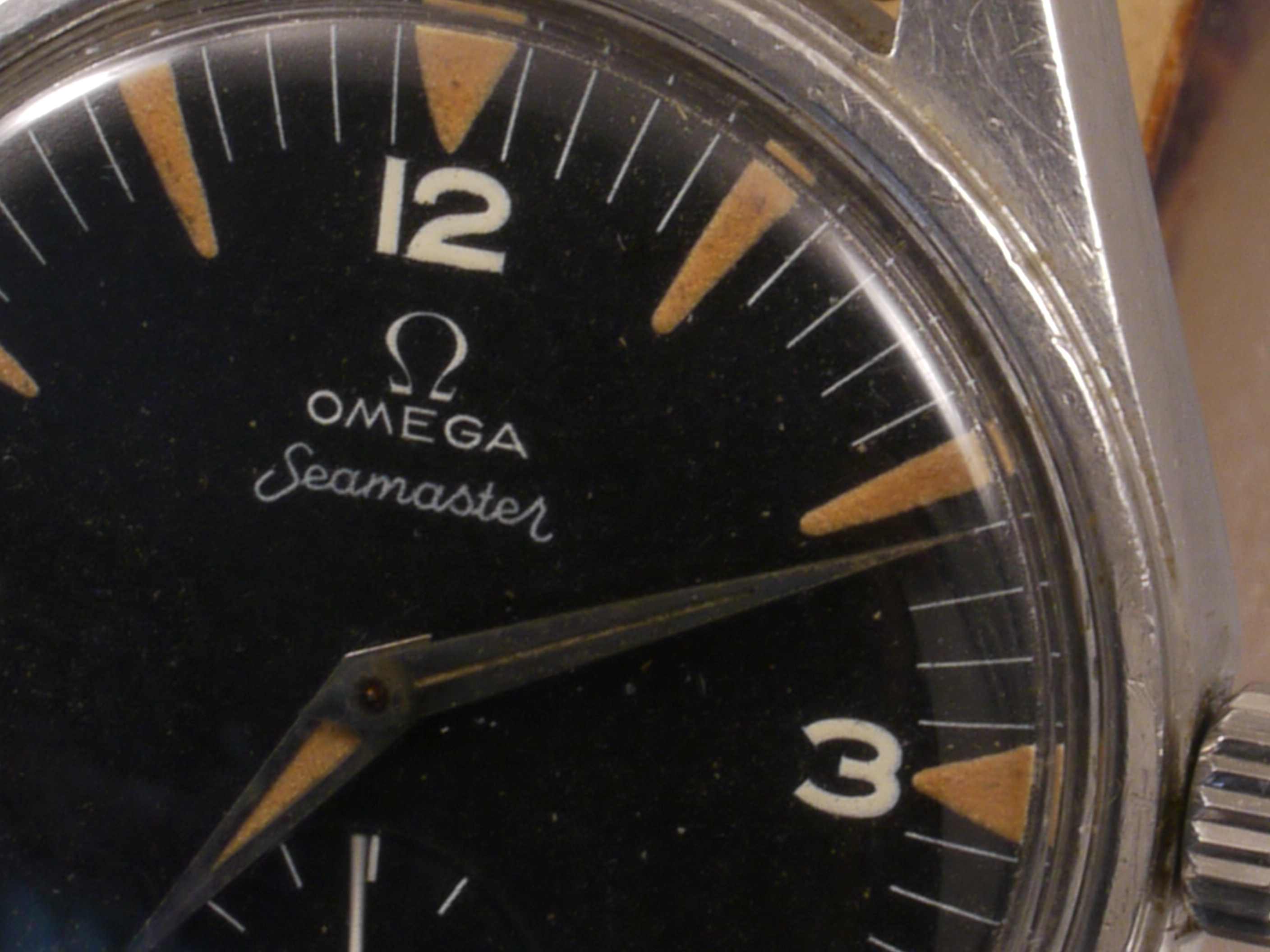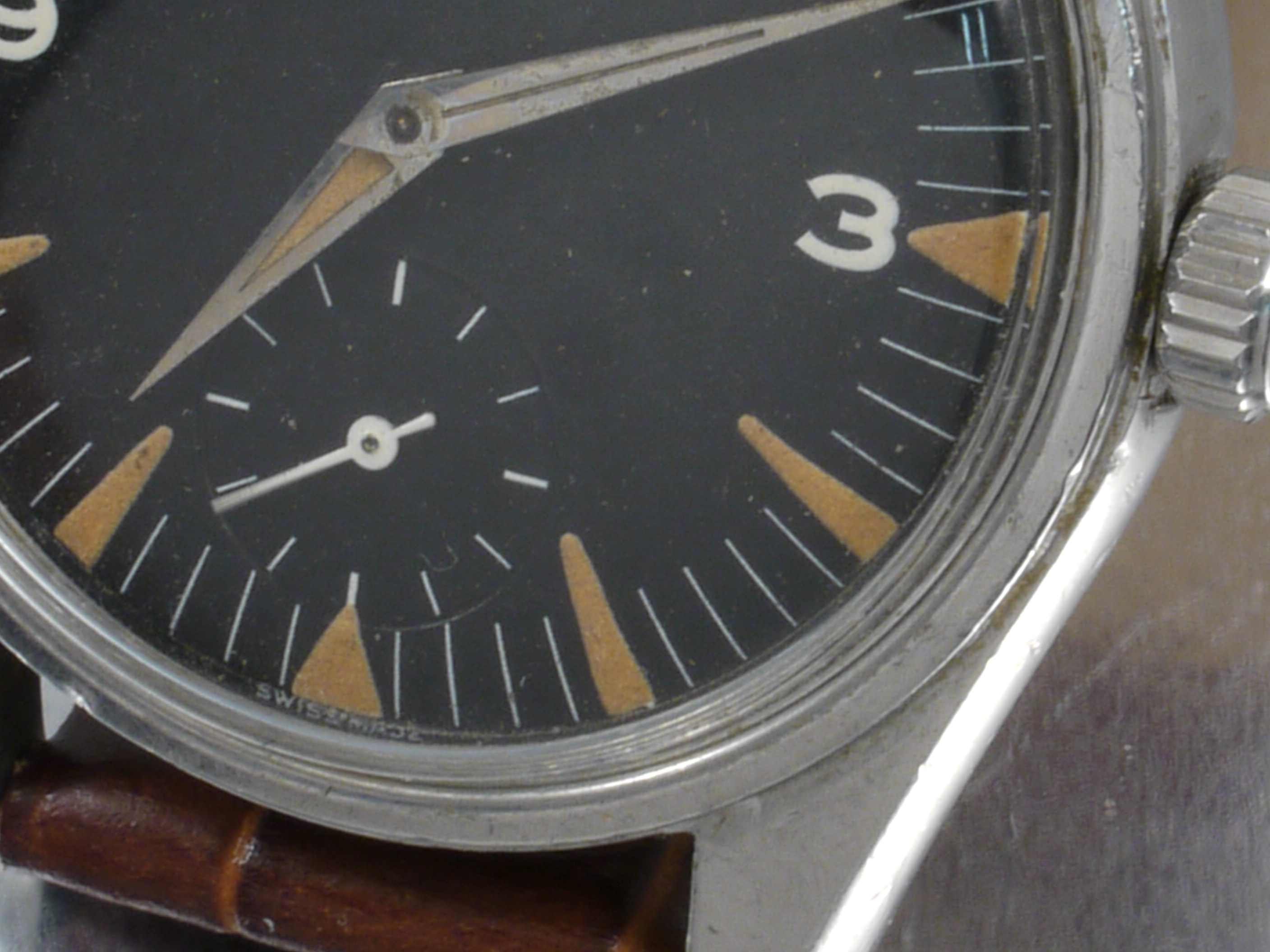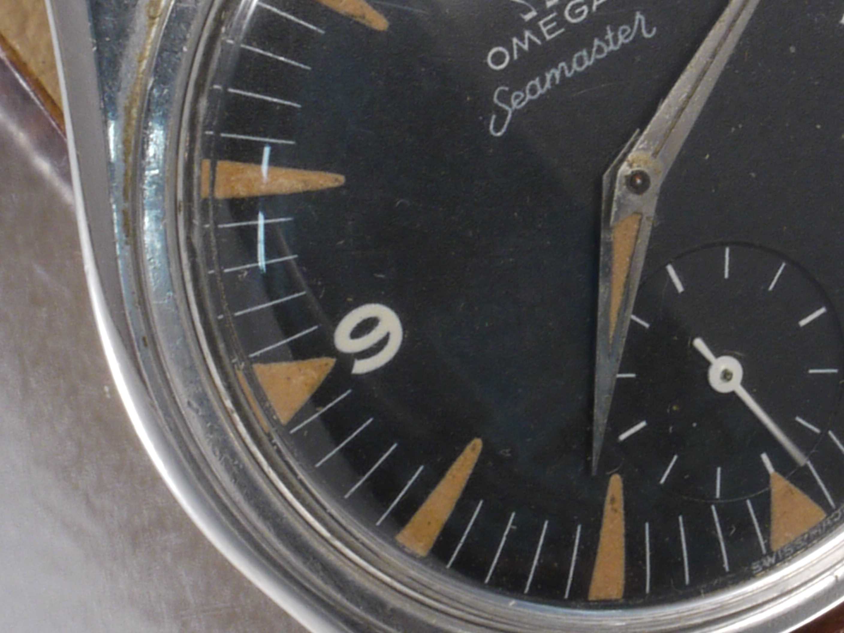 I think it's possible that this watch has been relumed. Please compare the lume on the hour hand with the lume on the minute hand. Also, some of the triangular hour markers appear to be somewhat irregular in shape and the lume is brighter in tint than I would expect for a 65 year old watch.
