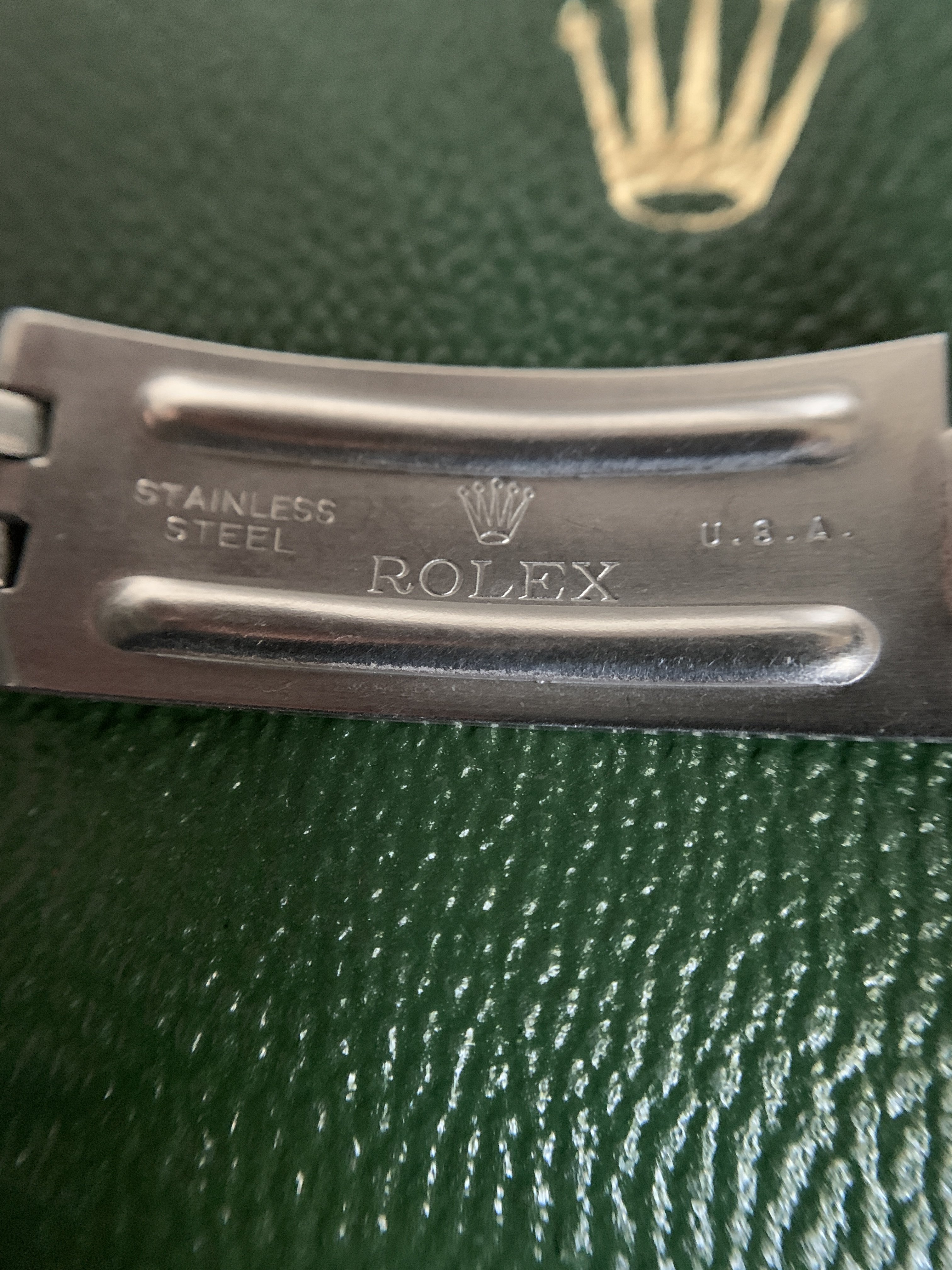 This was found with an old school collector who had the Rolex Jubilee complete with the original box. The bracelet has plenty of stretch, as to be expected with a vintage jubilee, but still very wearable, and the clasp closes securely.