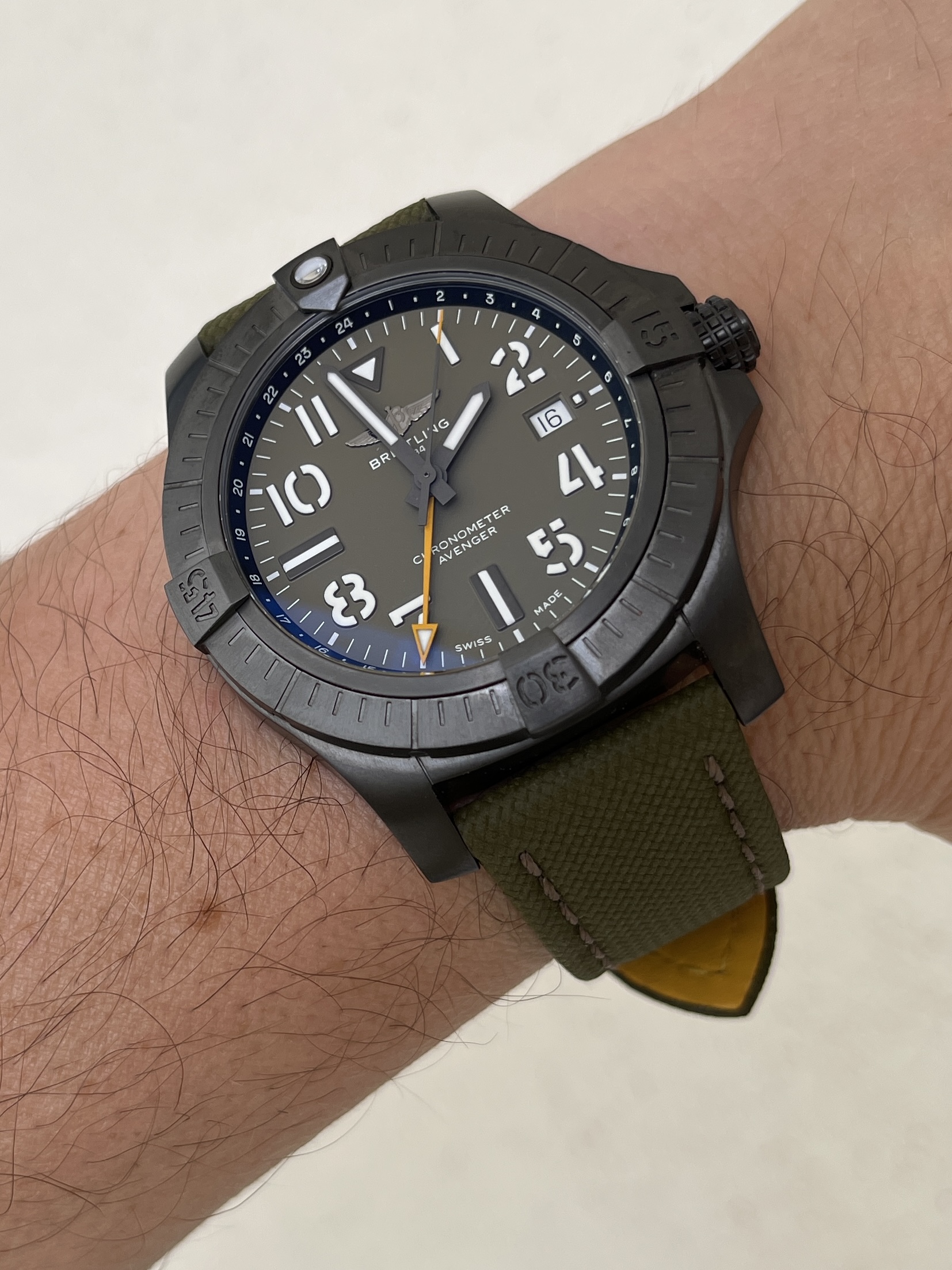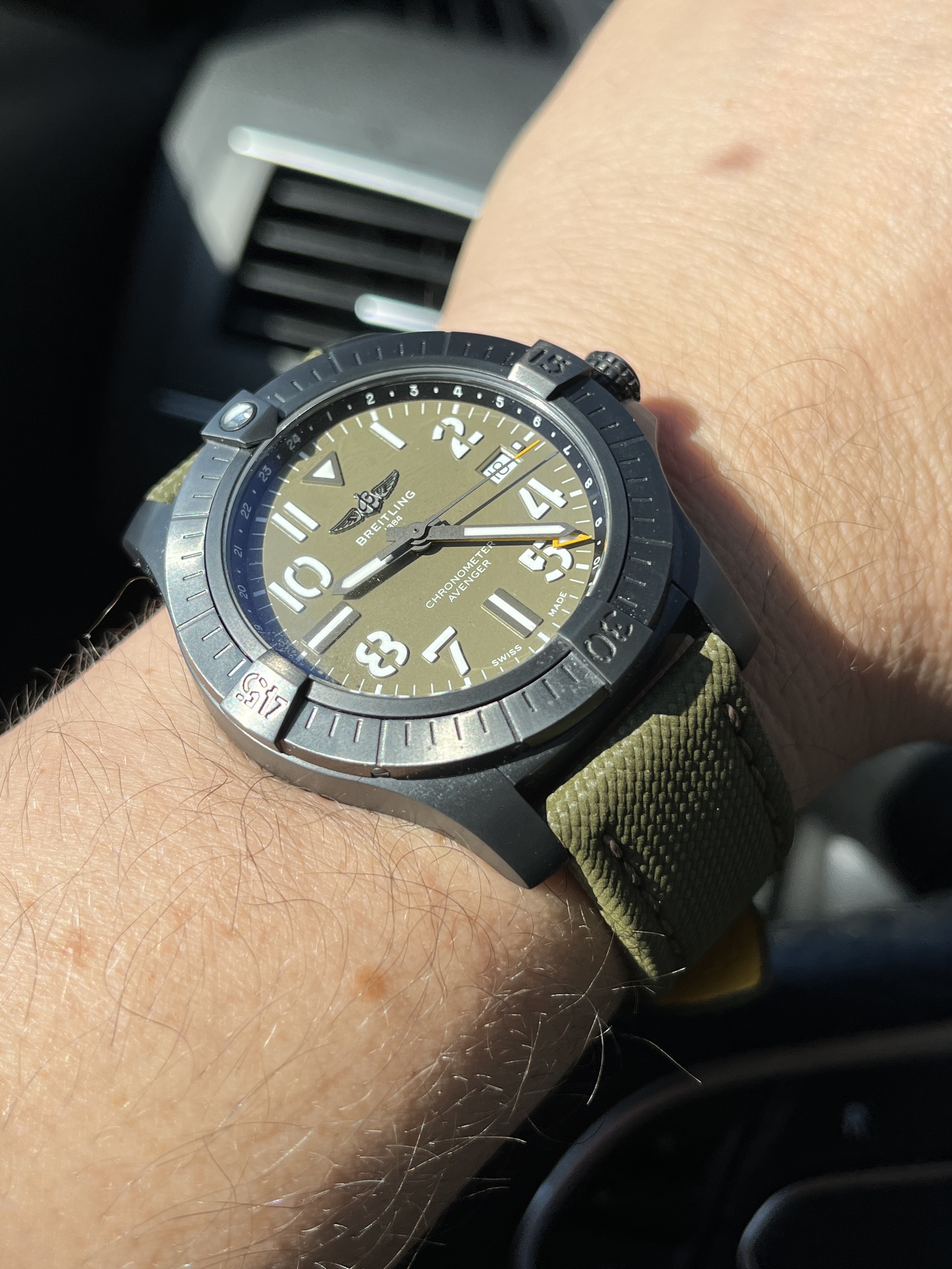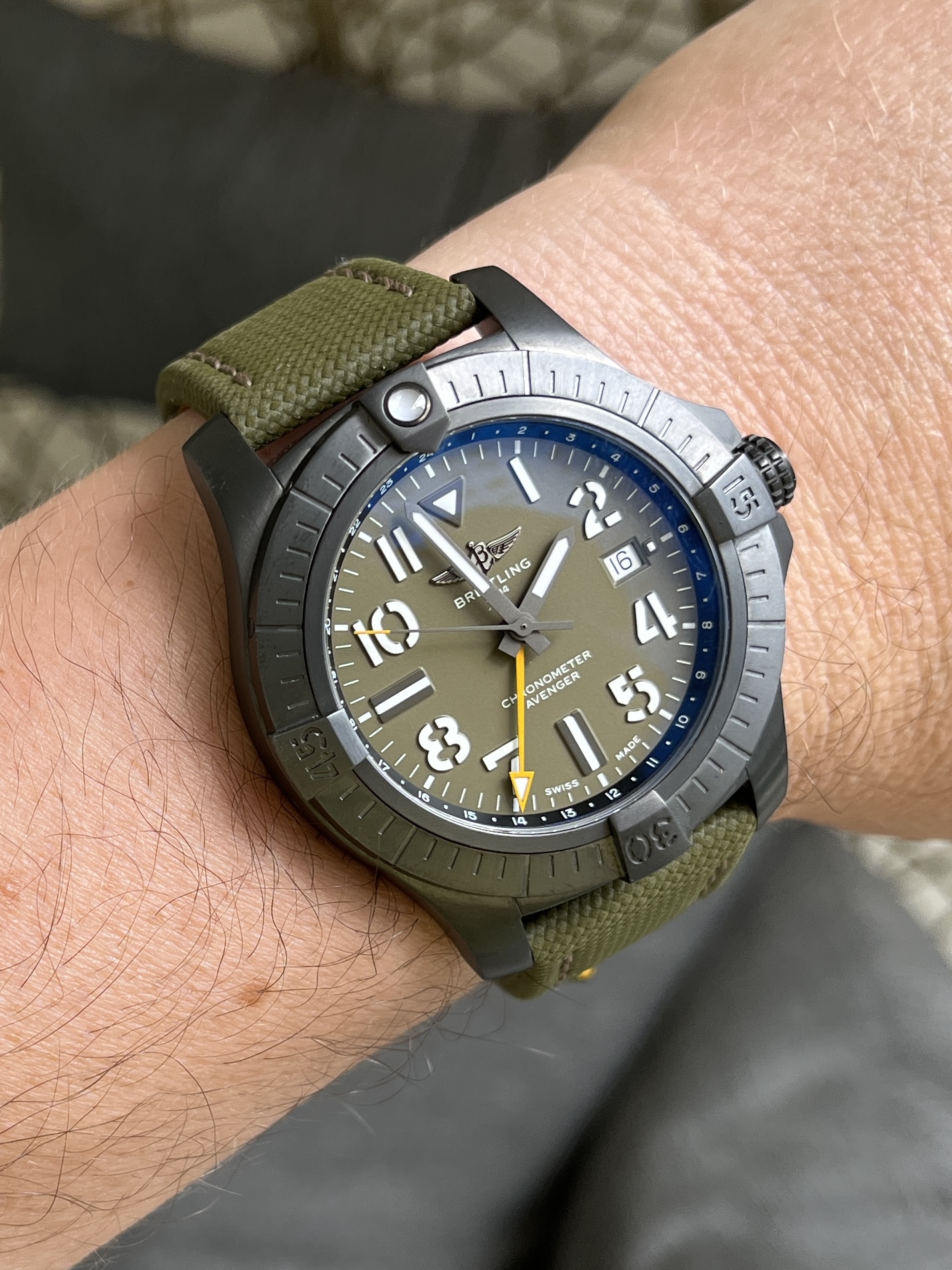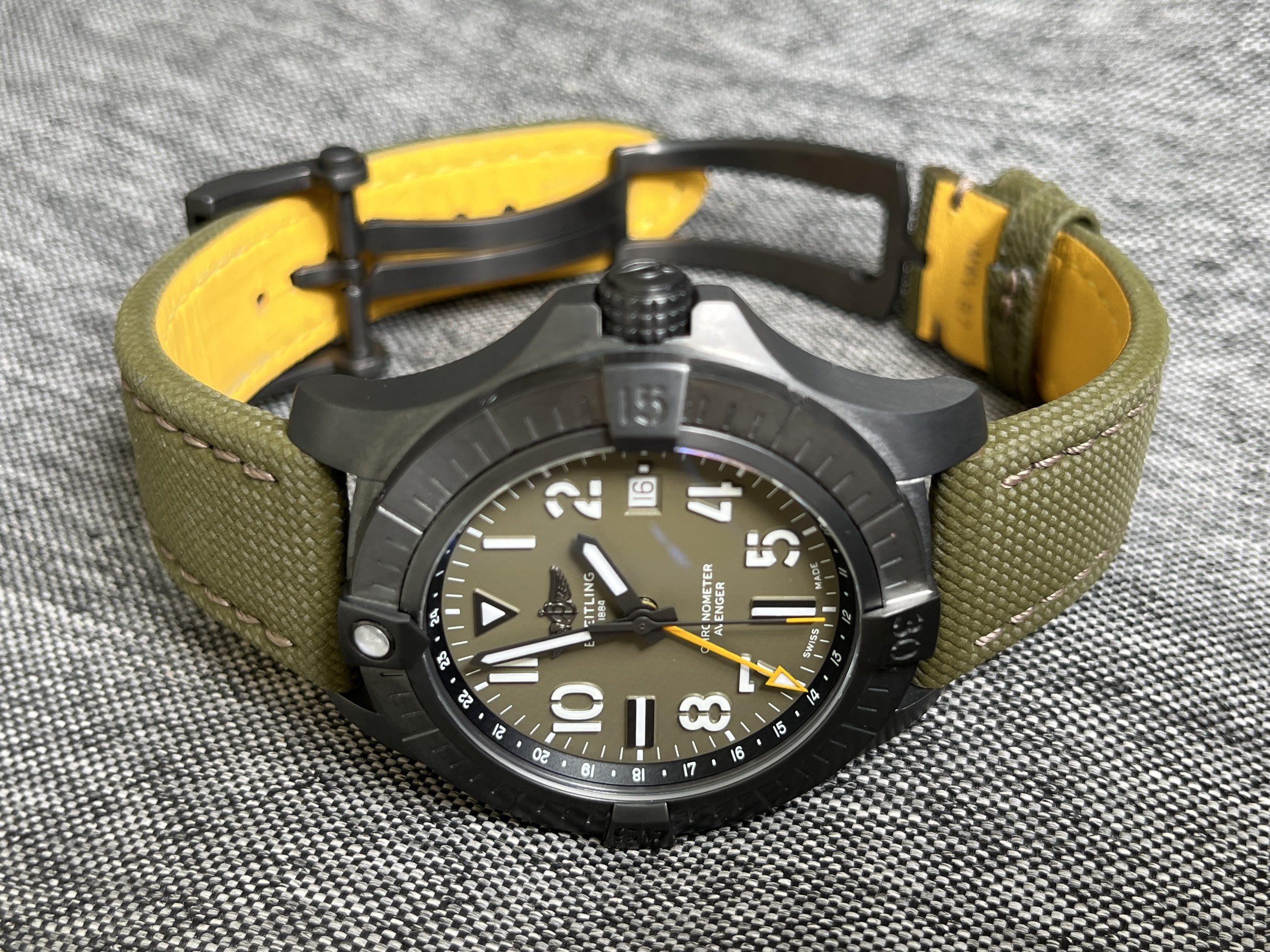 Very unusual limited edition (1 of 2000) Avenger, made of TITANIUM, DLC covered, extremely durable and cool with fantastic green dial and DEPLOYANT clasp (there is also other - cheaper - version with tang-buckle) - reference V323952A1L1X2.