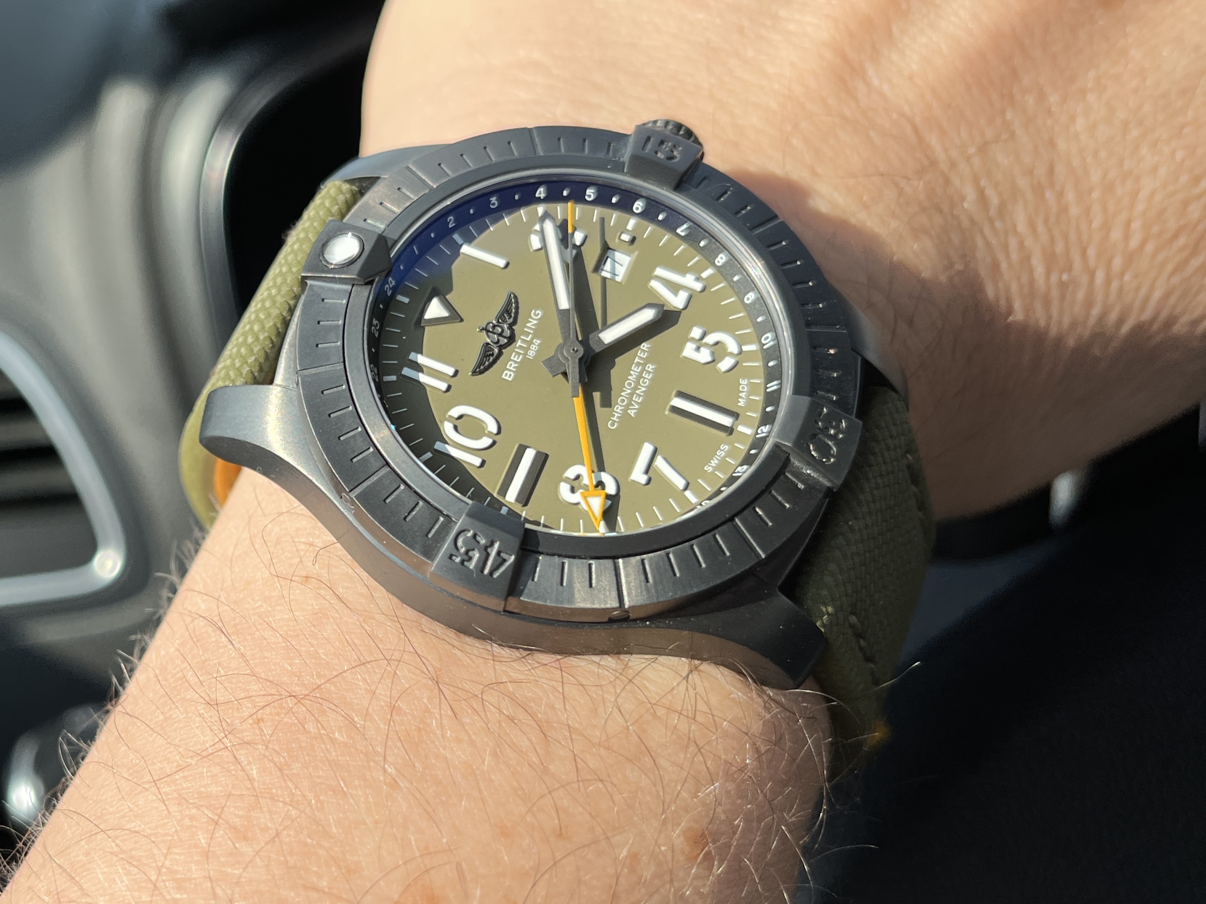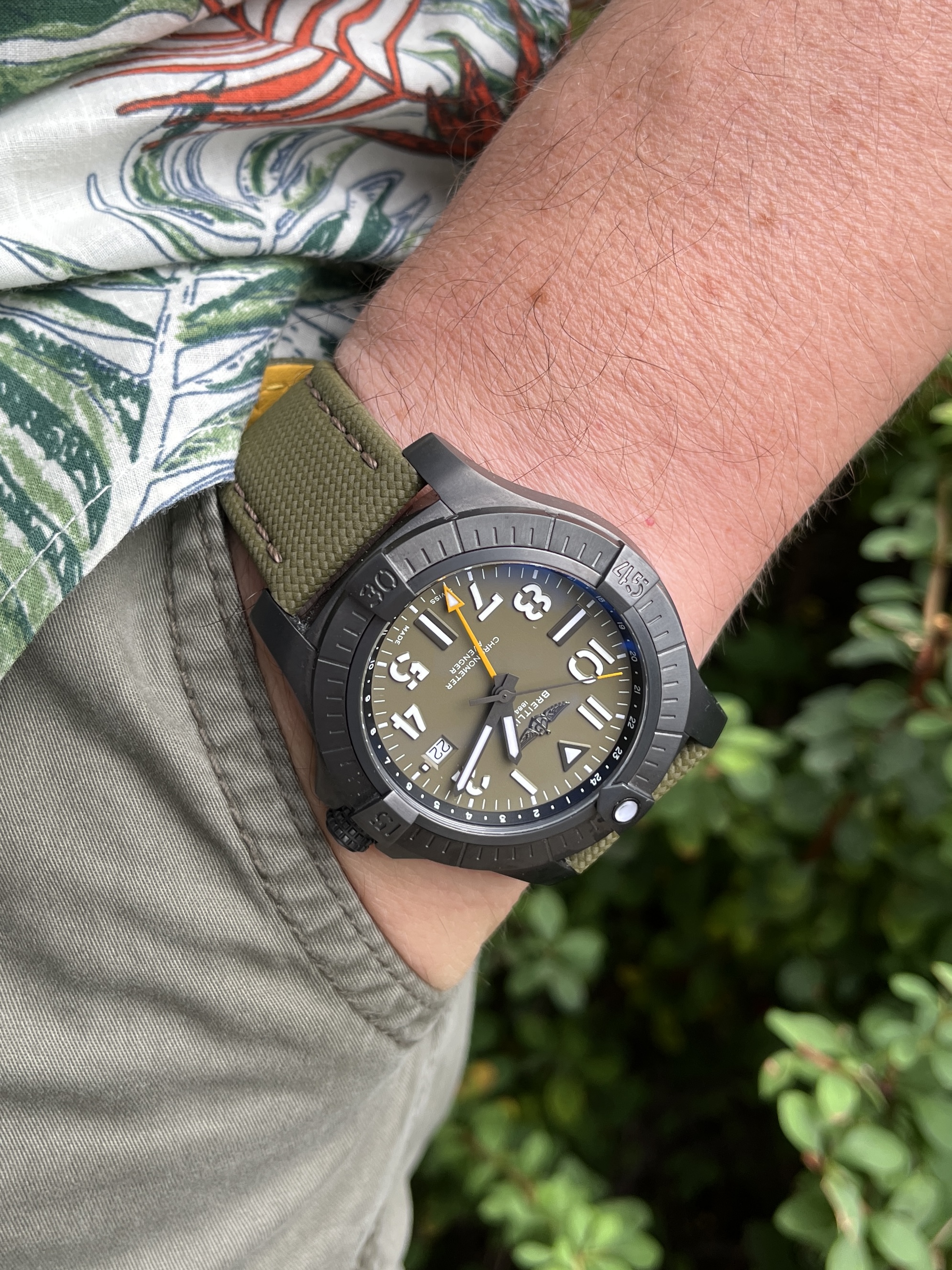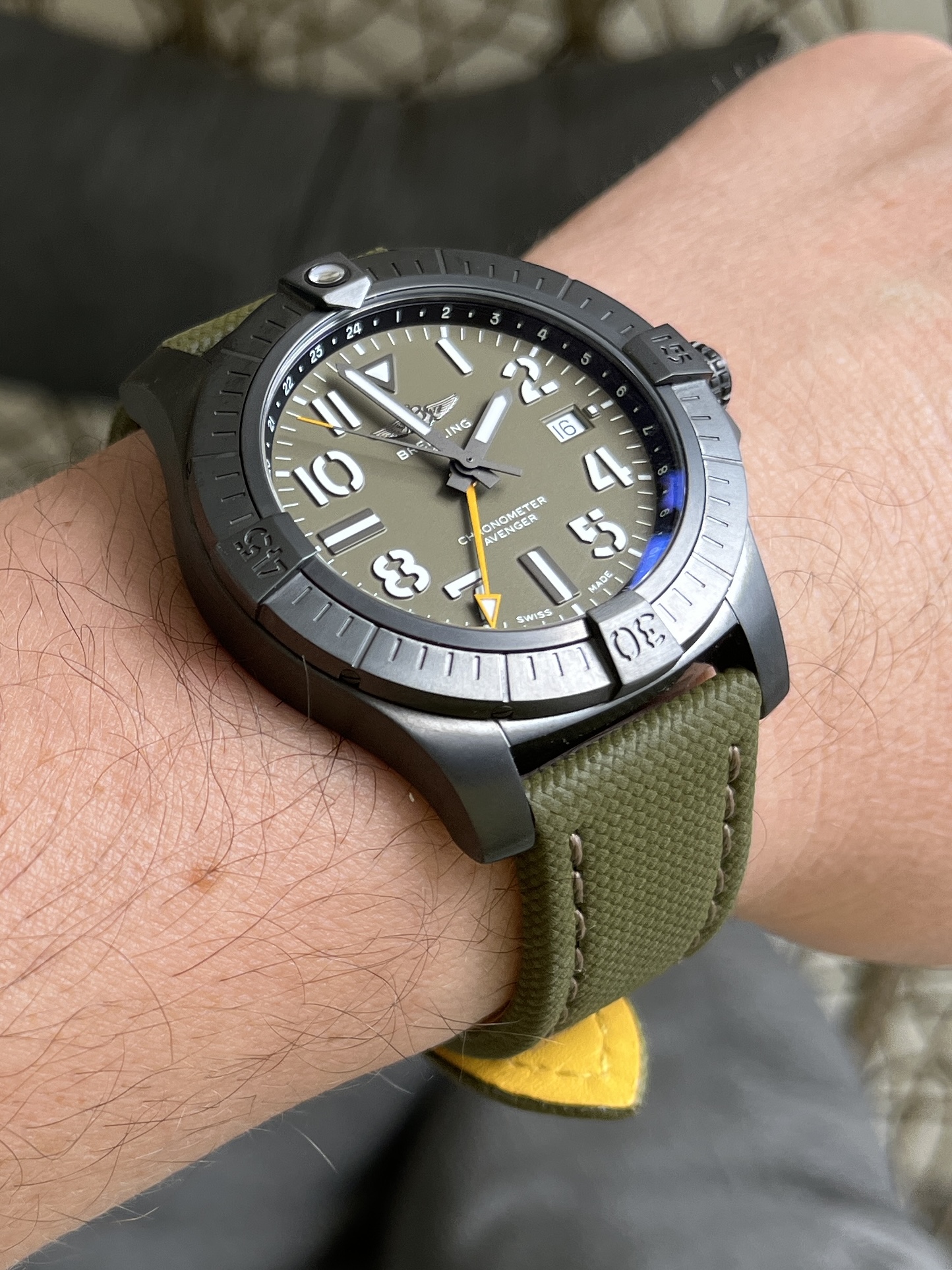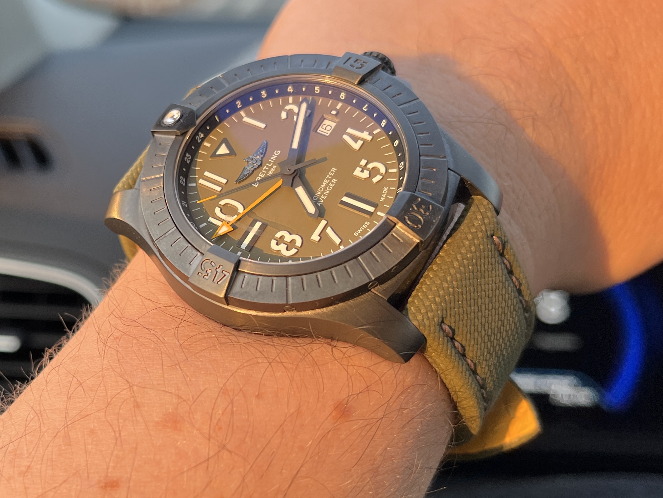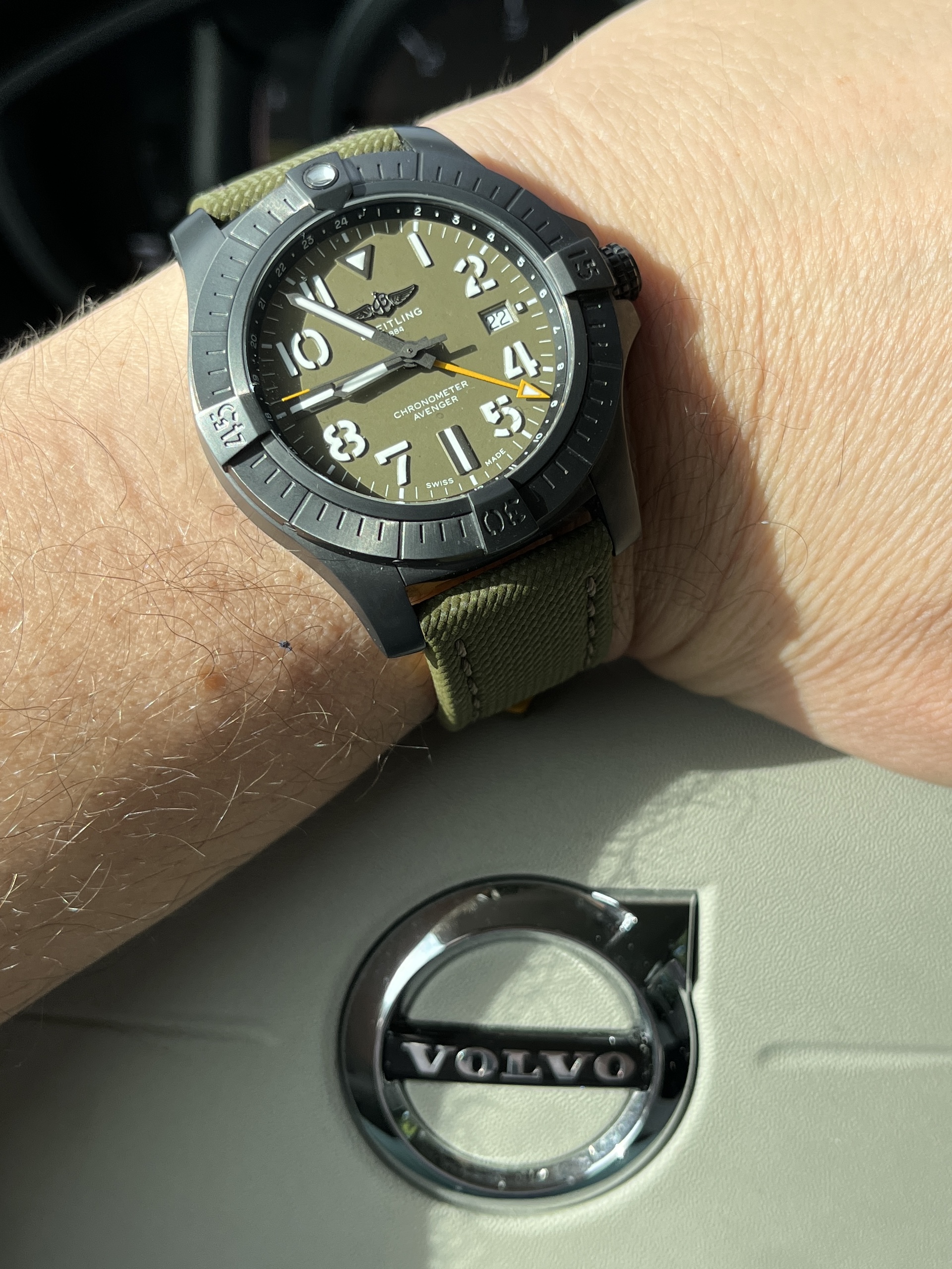 Very unusual limited edition (1 of 2000) Avenger, made of TITANIUM, DLC covered, extremely durable and cool with fantastic green dial and DEPLOYANT clasp (there is also other - cheaper - version with tang-buckle) - reference V323952A1L1X2.