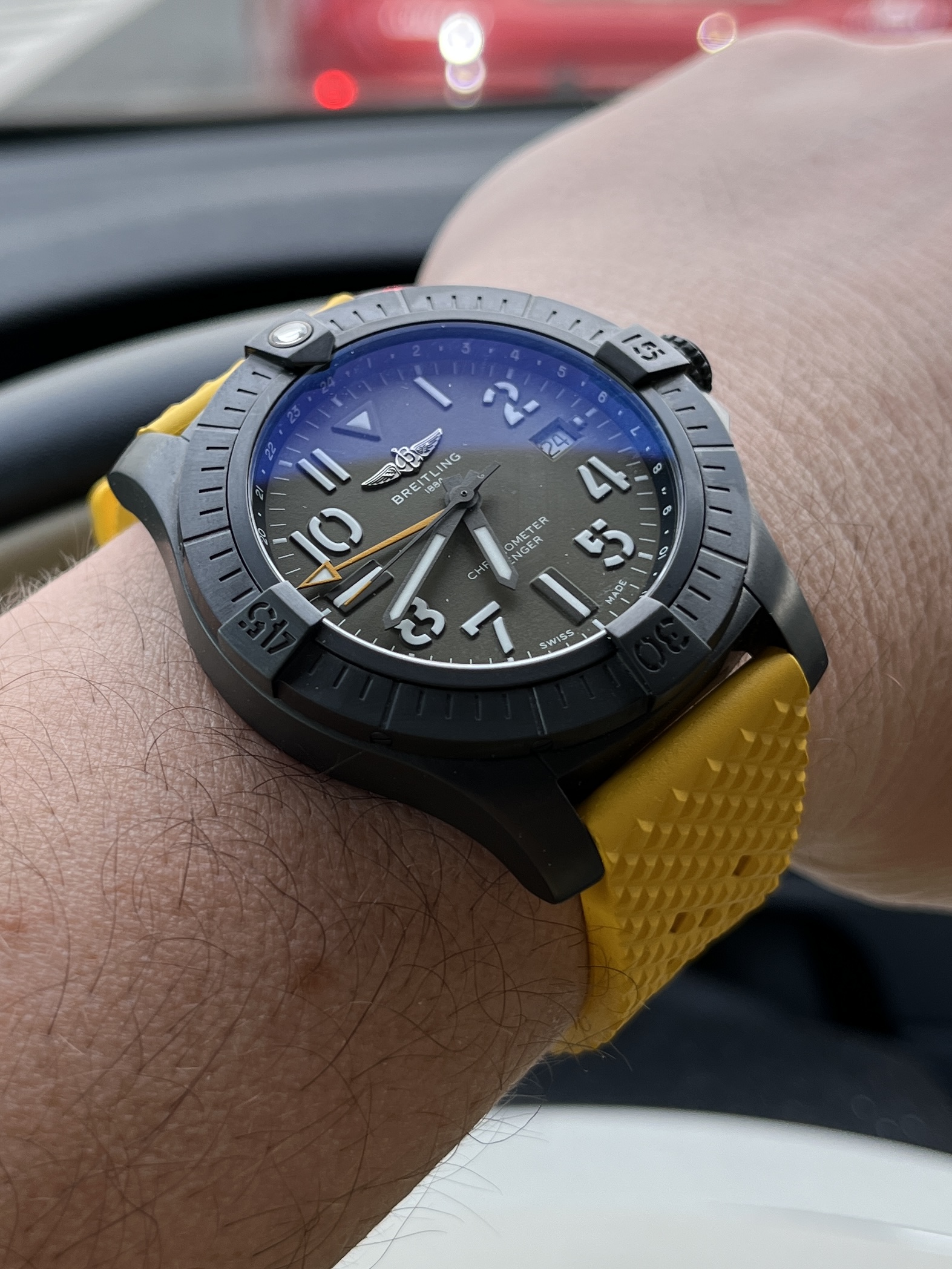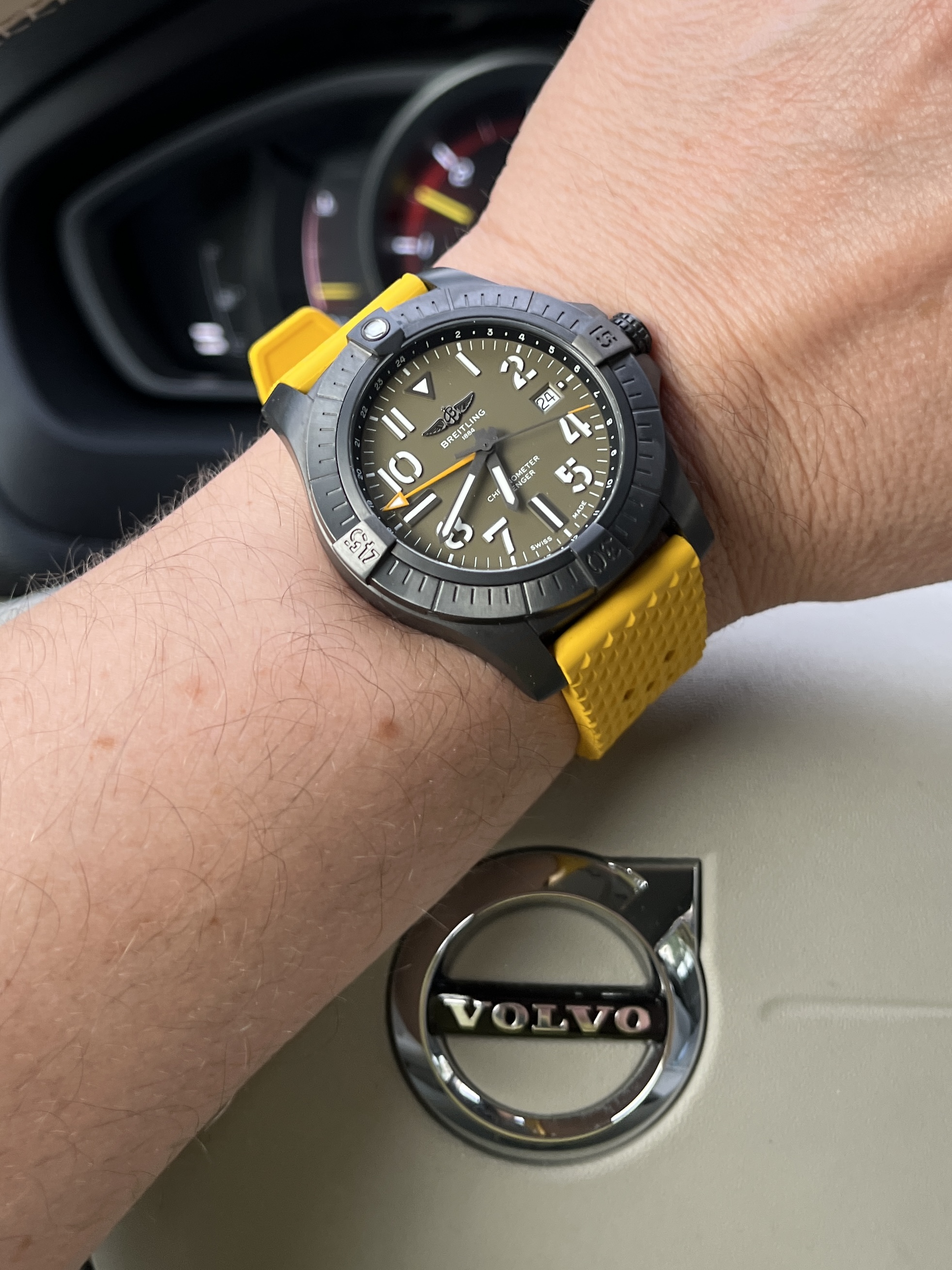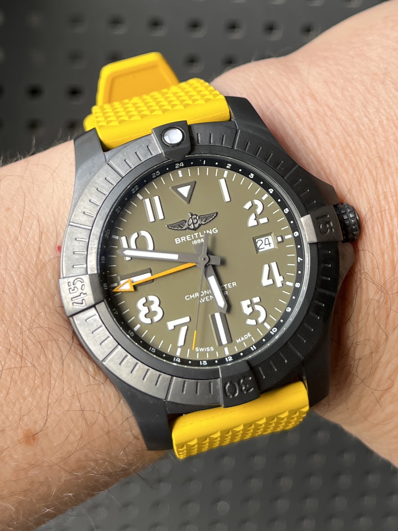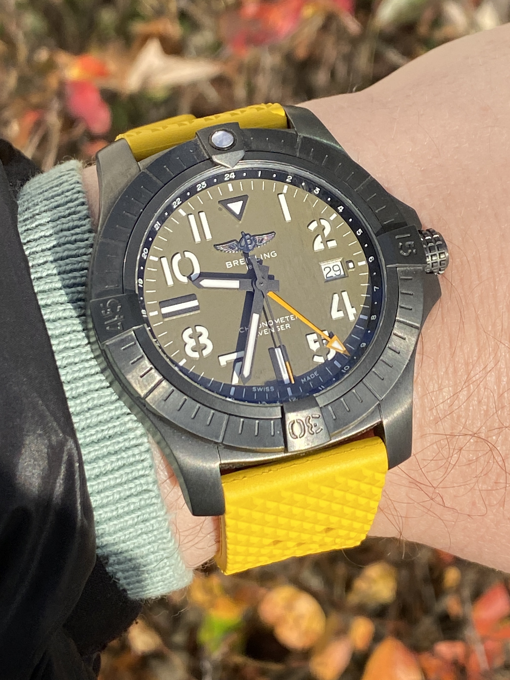 - extra yellow strap (Watch Bandit) with matching black tang buckle (no-name PCV coated steel)