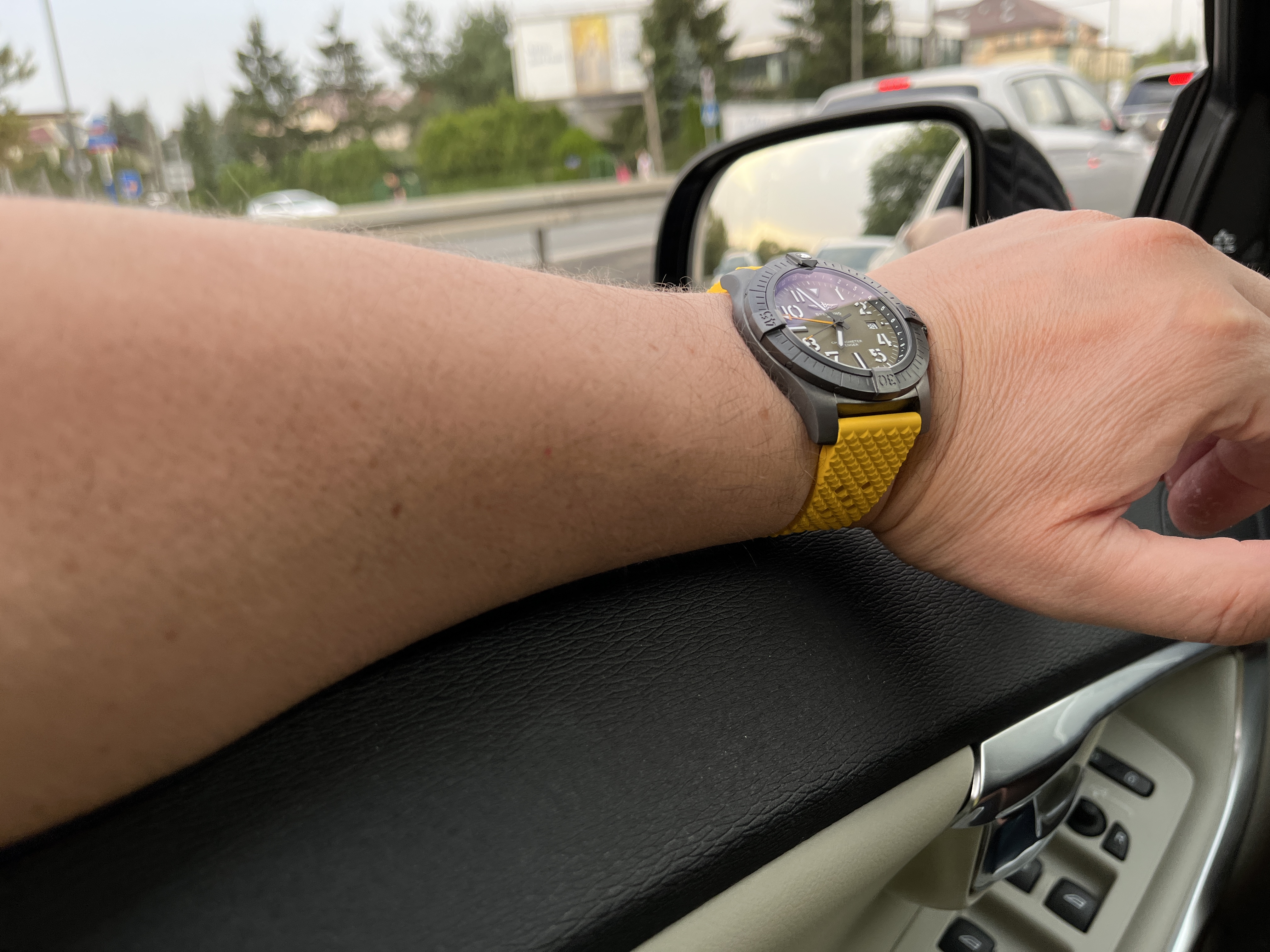 Purchased new in June this year, so under warranty until June 2024. Original green strap was worn probably first 2 days, then I swapped it into Watch Bandit yellow rubber strap and this is how I wore it ever since. Still probably not more than 20 times on my wrist, being one of many in rotation.
