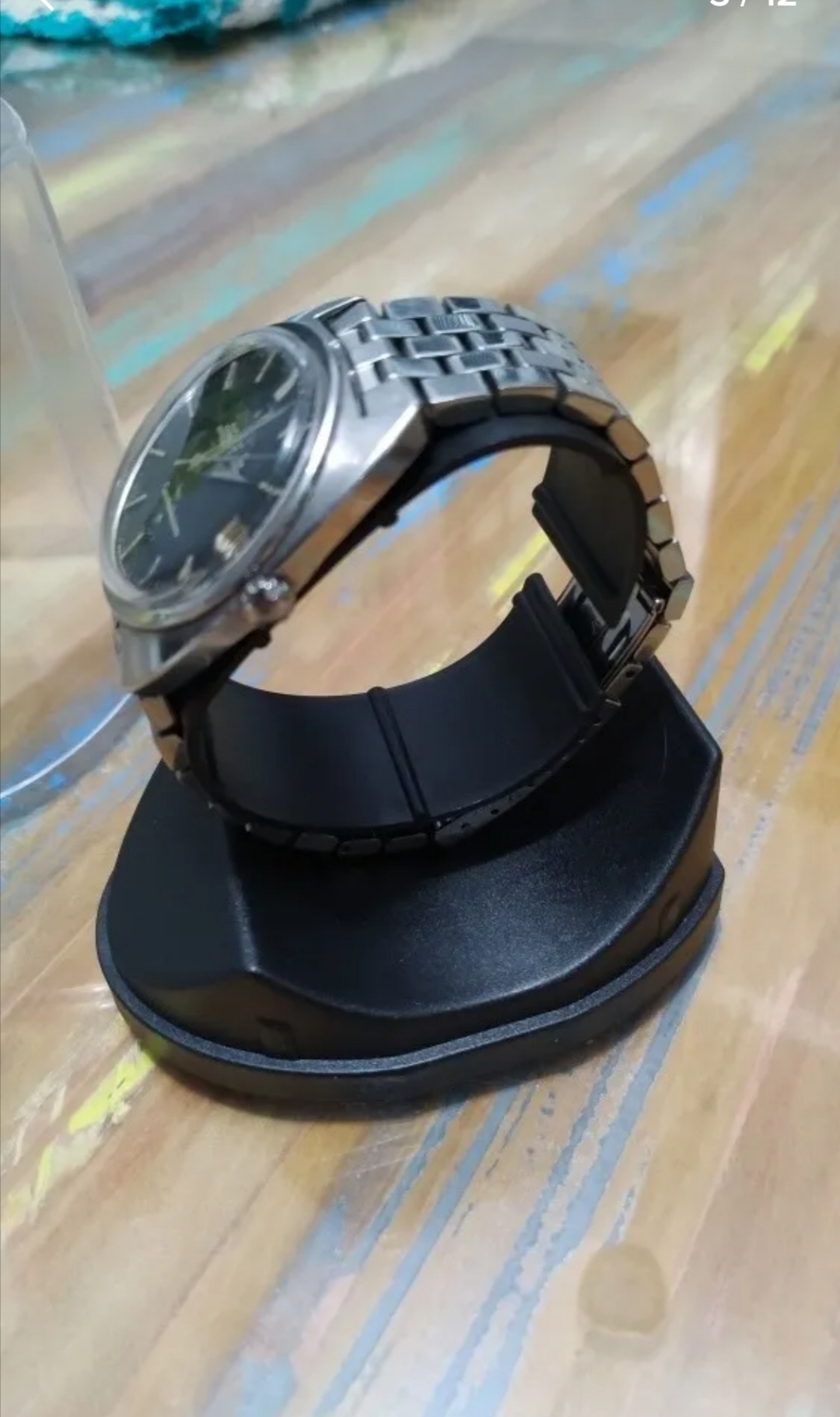 It is my understanding, that this black dial version with the dolphin hands, tritium lume markers and the very short crown is quite rare and I was even inclined to think it was either redial or franken. But I did find a couple more examples of it in the internet in the end though.