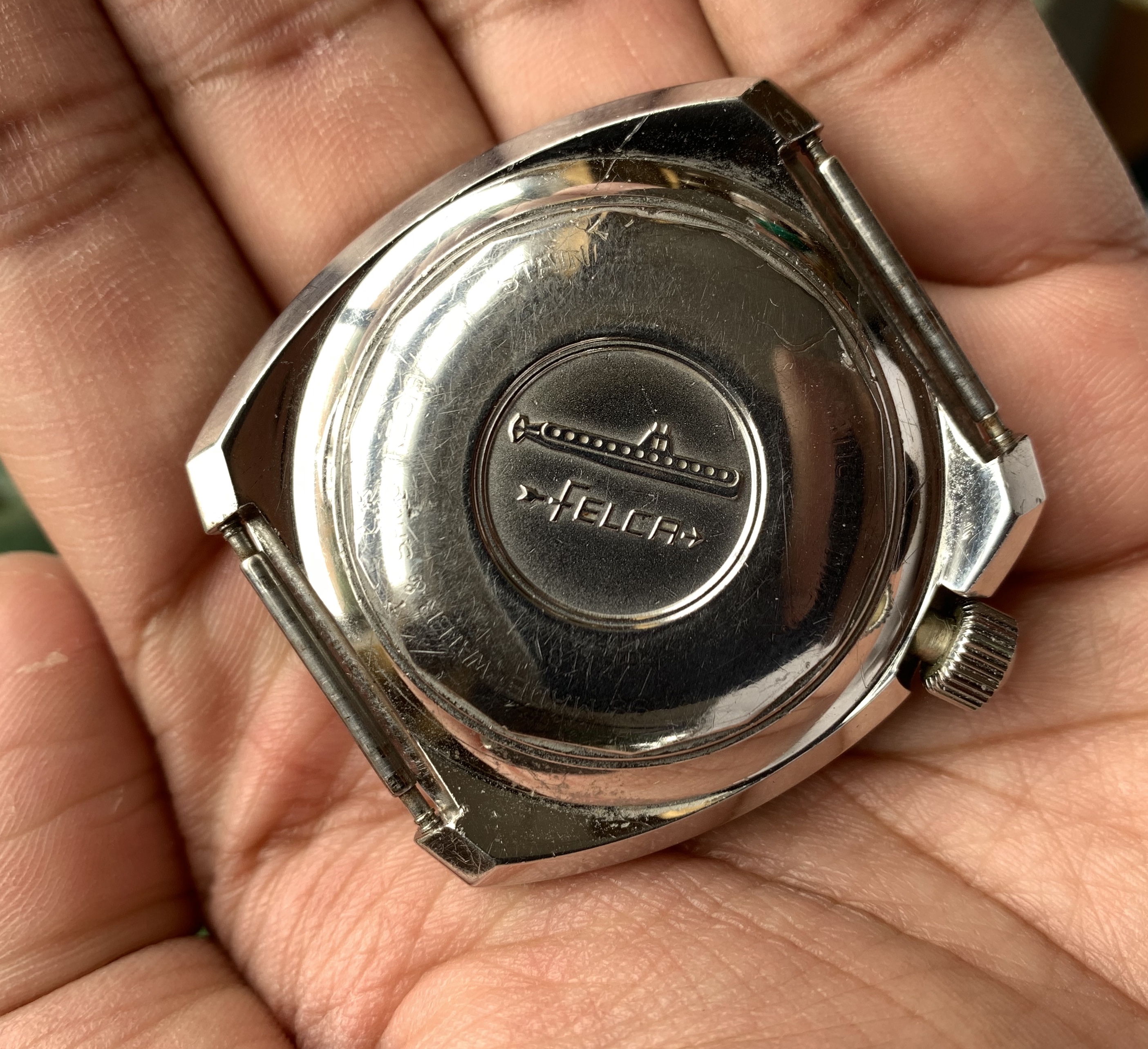 The caseback has the good old submarine with the Felca brand, scuff marks and the like from use / wear over the years.