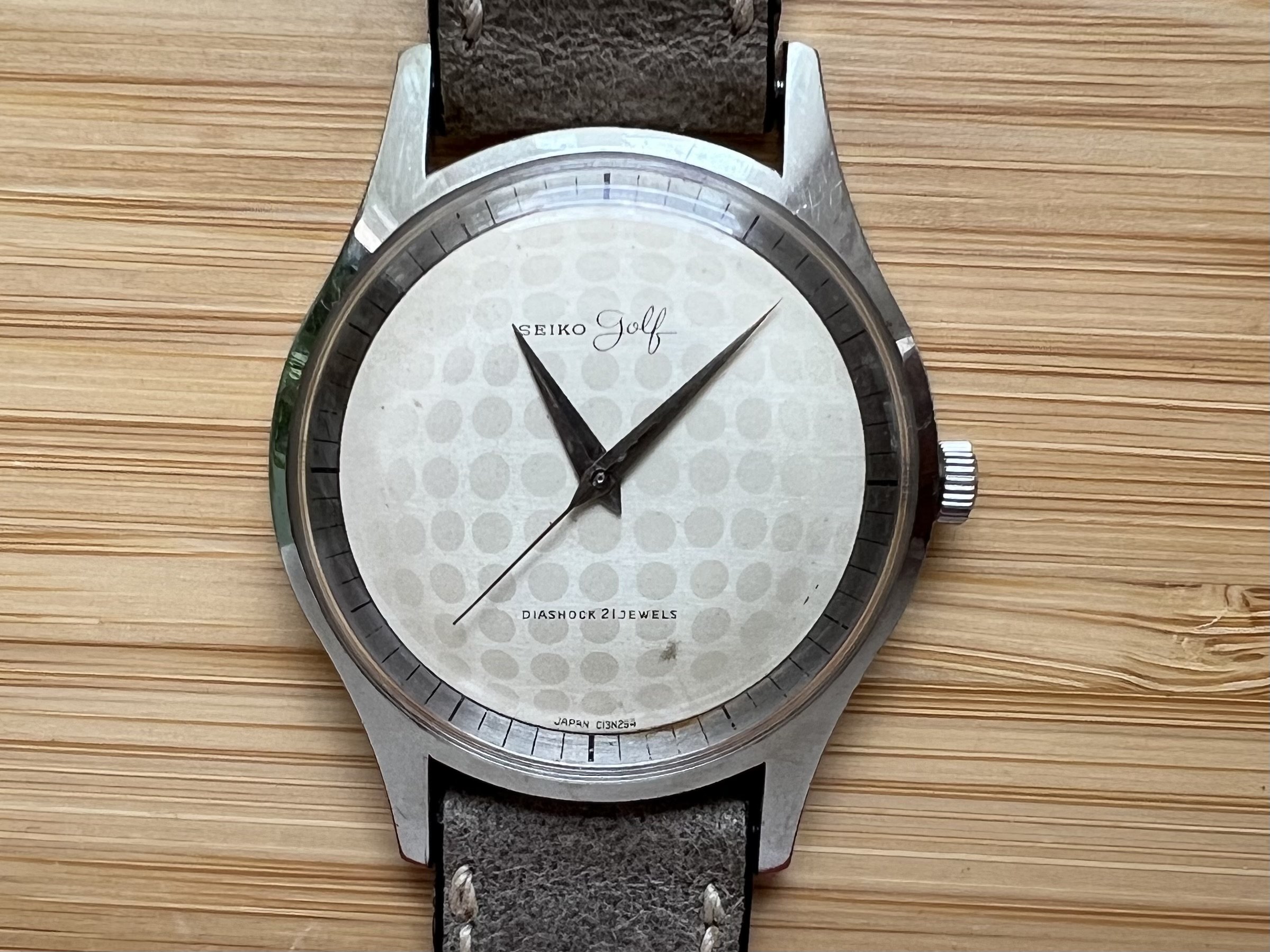 For your consideration is a rather rare Seiko Cronos Golf. The story behind this model is that during World War II, the US military took control of most golf courses in Japan. Ownership where then gradually returned back in the 1950s, wherein there was a significant increase in enthusiasm for the sport.