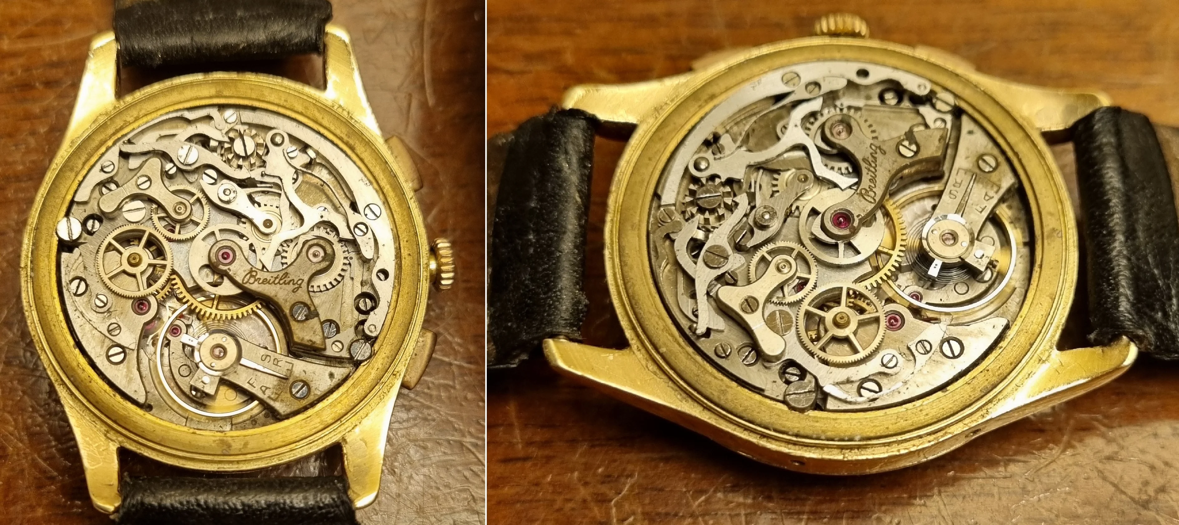 - Movement Bridge: One of the movement bridges is also signed "Breitling" (which is likely a repair part replacement, given the UG dial and serial).