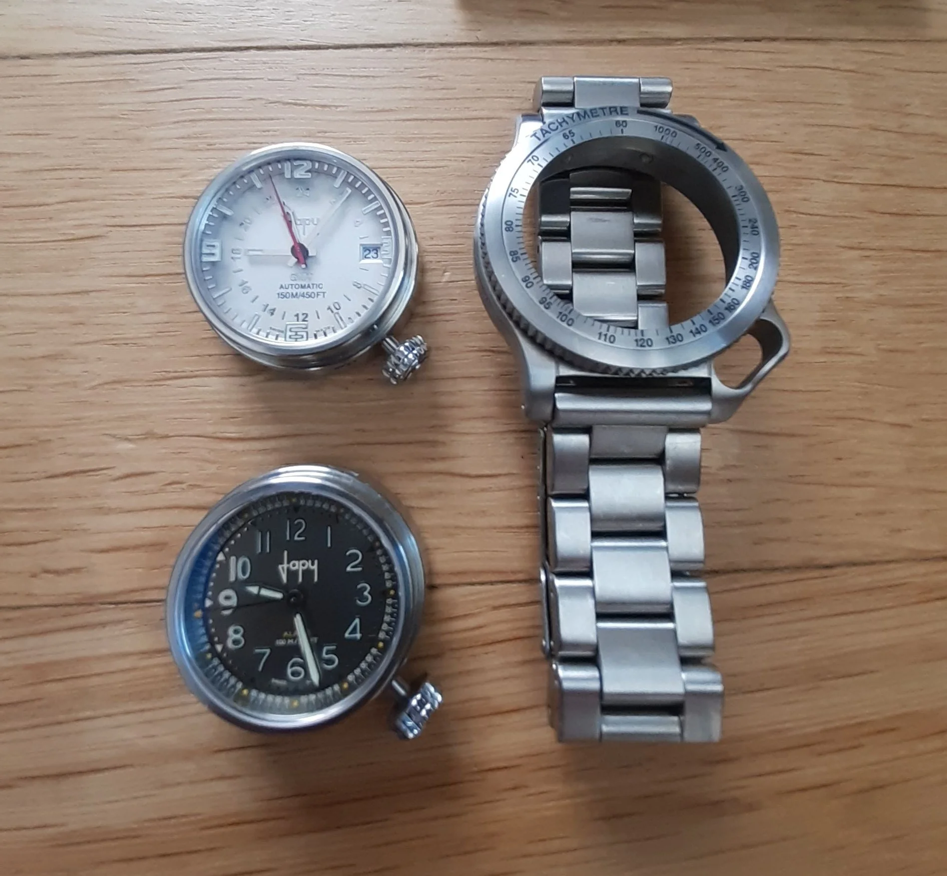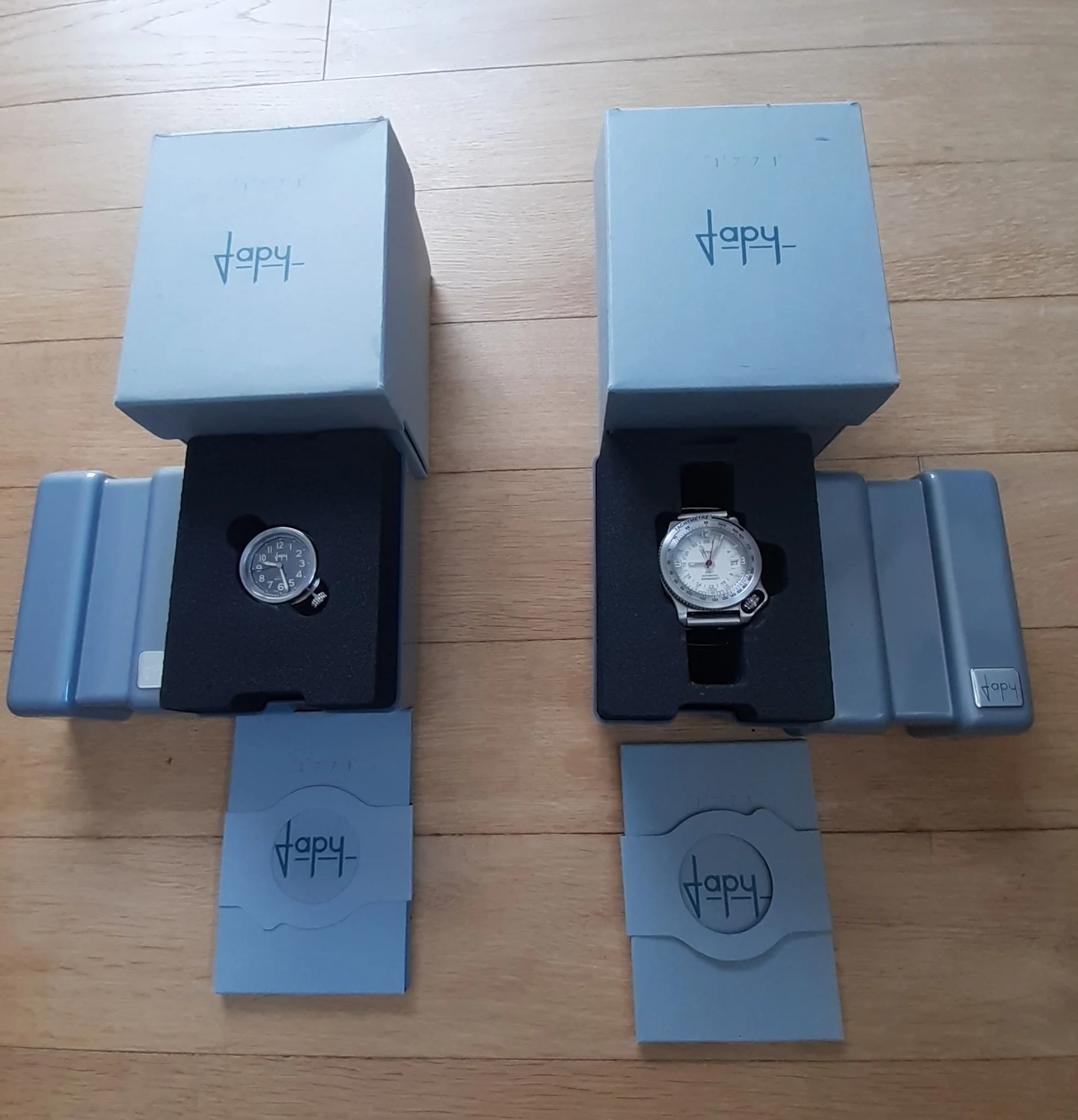 My Christmas present: a pair of Japy watches from the 2000s. I'd been looking for a Japy for years, without success, and then two at once!