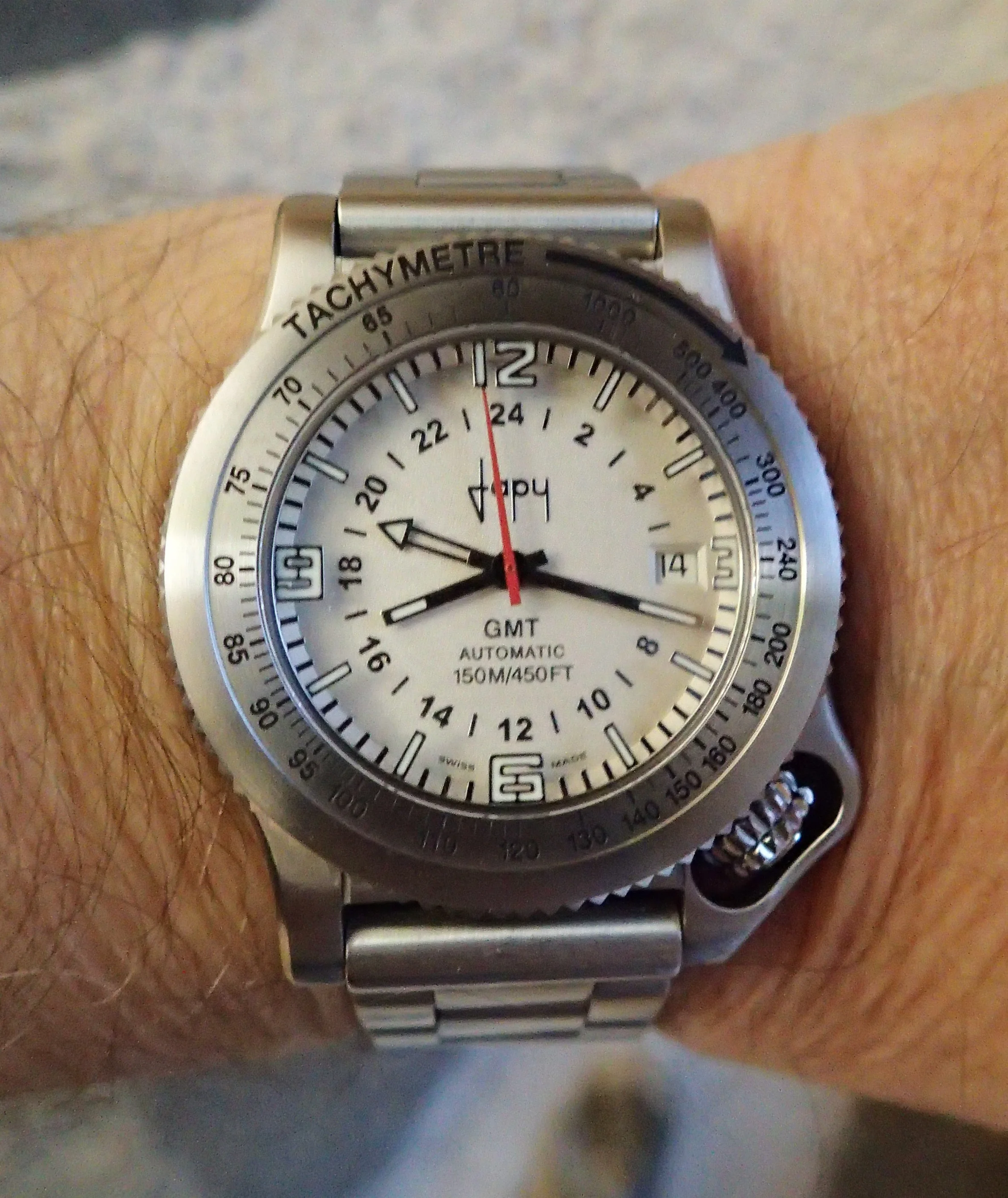 A GMT automatic and a quartz alarm clock.