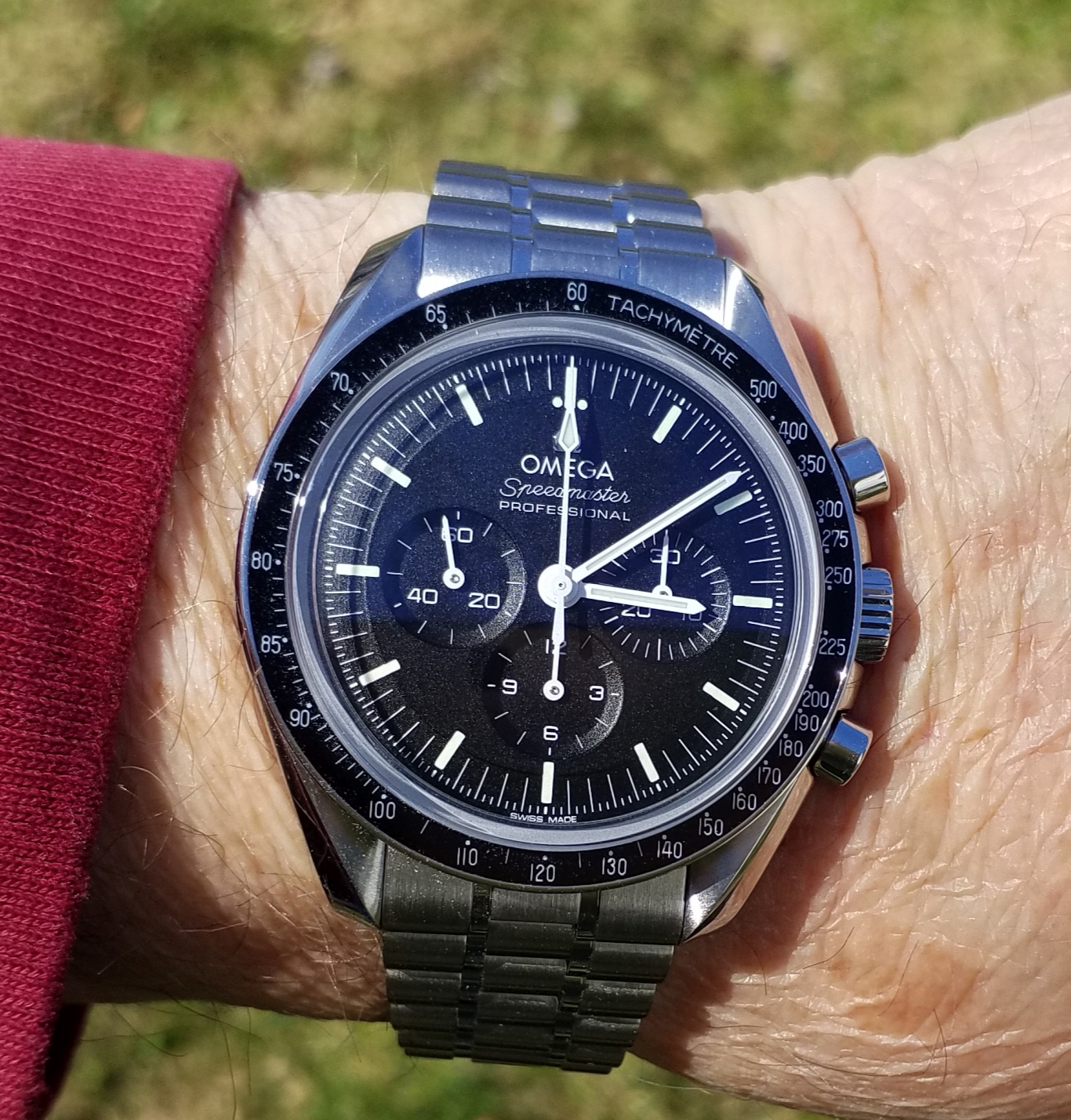 Congrats Phil F. I know you have been deliberating and waiting. Glad you finally have one. And yes, they do wear thinner, right? Such a good thing. I find the bracelet extremely comfortable personally. I have not worn another watch since purchasing mine with the exception fo putting on my SKX for a short time while doing some work that might otherwise bang up my Speedmaster unnecessarily.