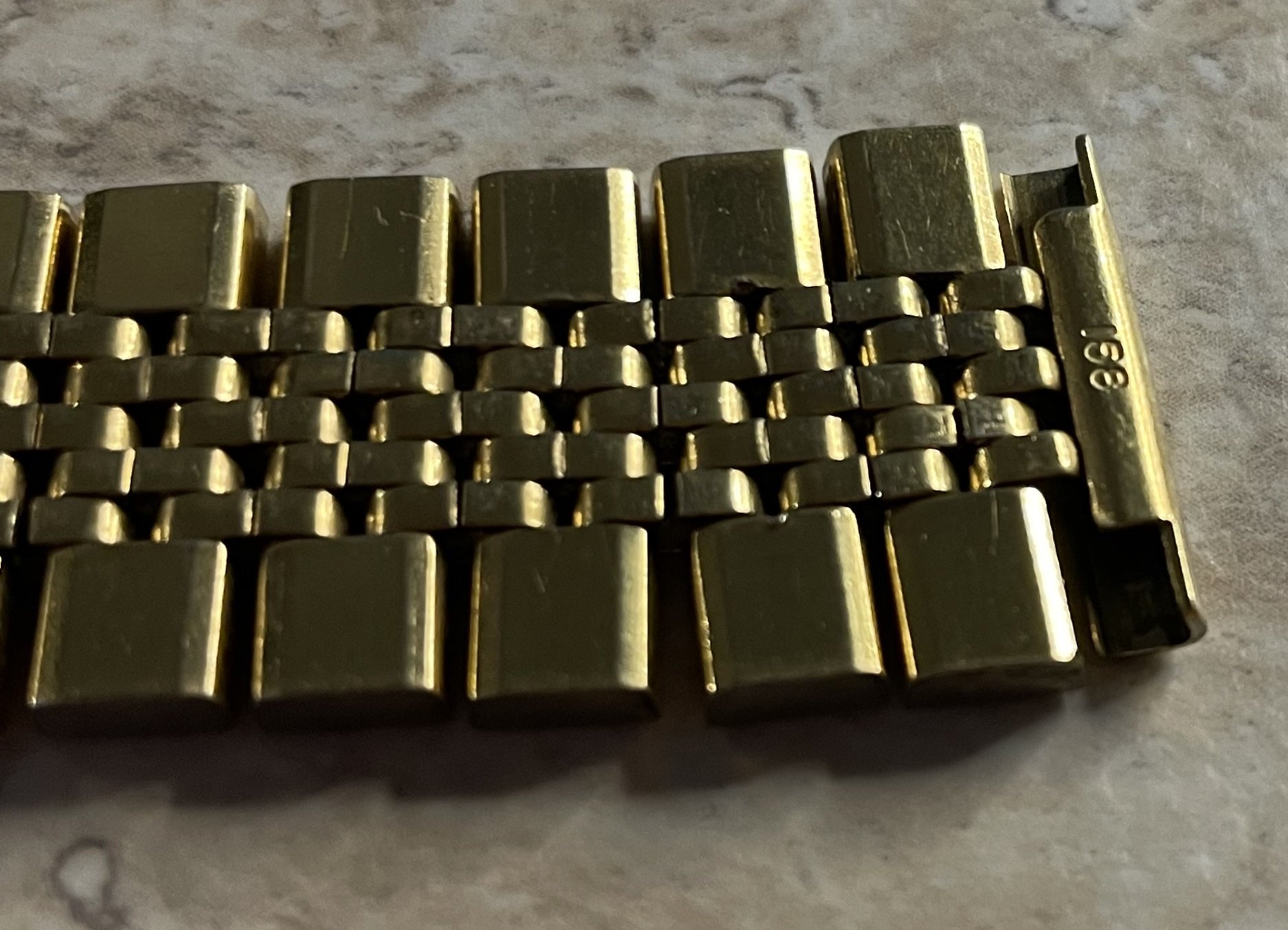 The endlinks are 18mm but the bracelet itself is 19mm wide. I like this, although it is probably mixed from different bracelets. Also, I never saw bracelets, where the links are only gold plated on top and bottom of the bracelet and not on the sides.