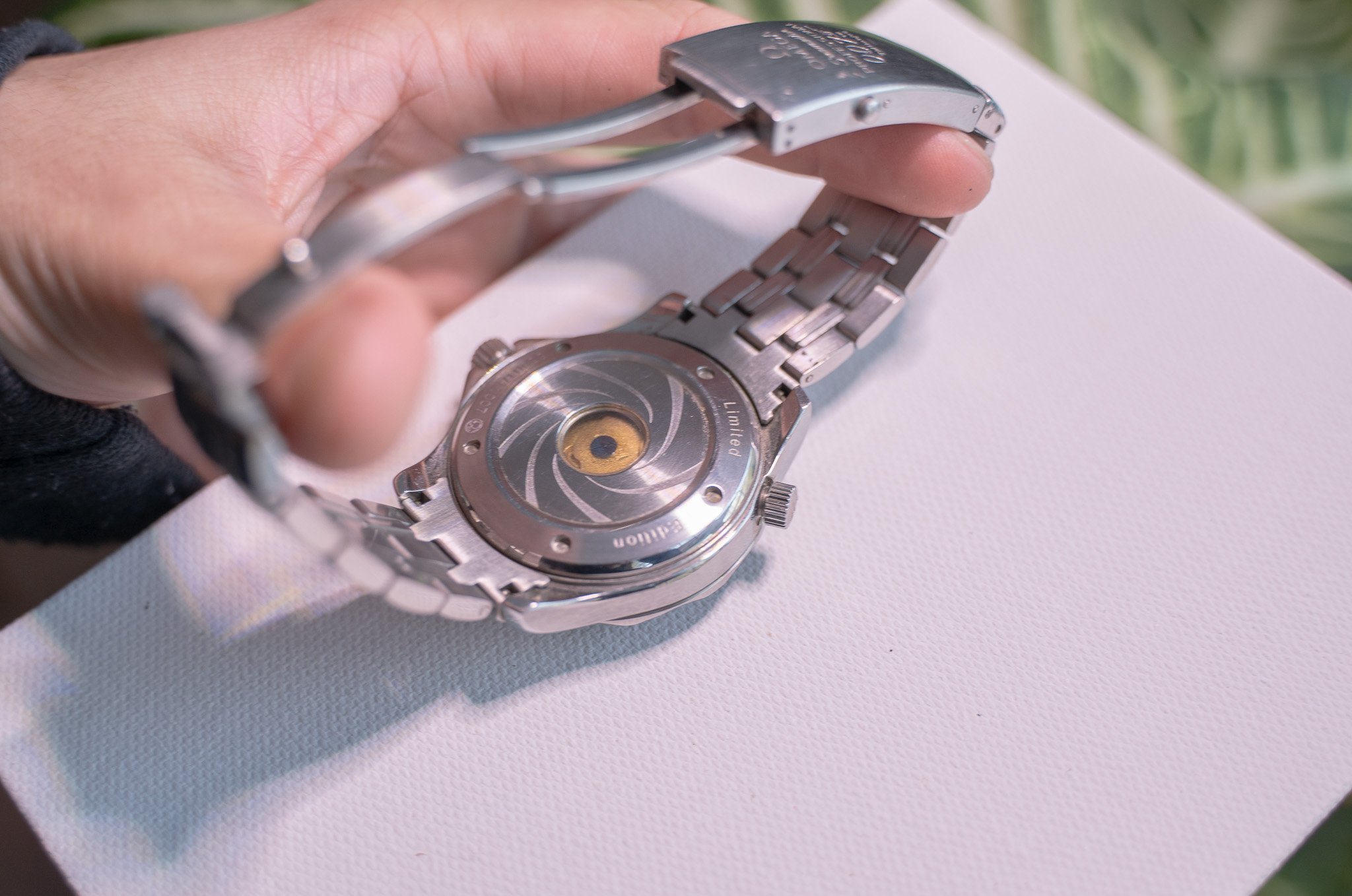 If you'r not convicted by what you'r told, you just have to compare with pictures of a true one. It's easily to be find even on Omega's official website.