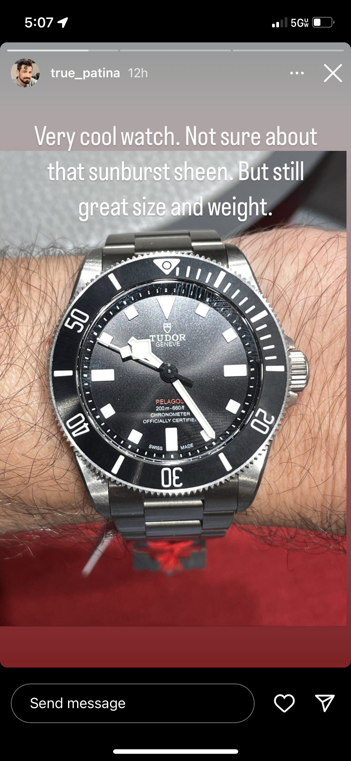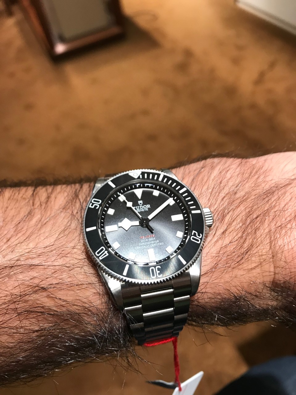 My Tudor AD called me over the weekend and offered me the Pelagos 39. Went down this morning to try it on. Decided not to buy because I did not like the sun-ray brushing on dial and bezel. I posted a mini-review in the Rolex sub-forum thread on the Pelagos 39: