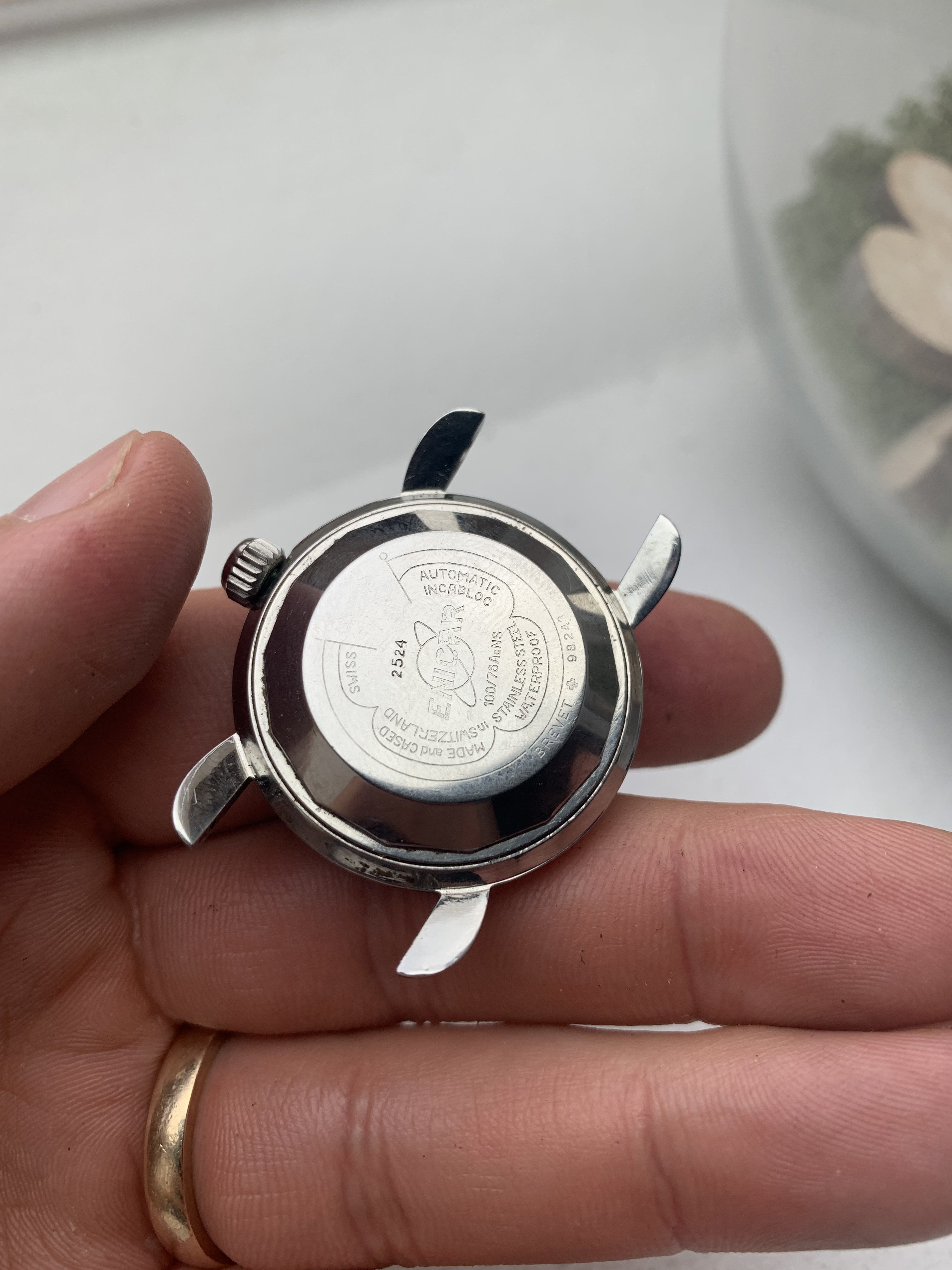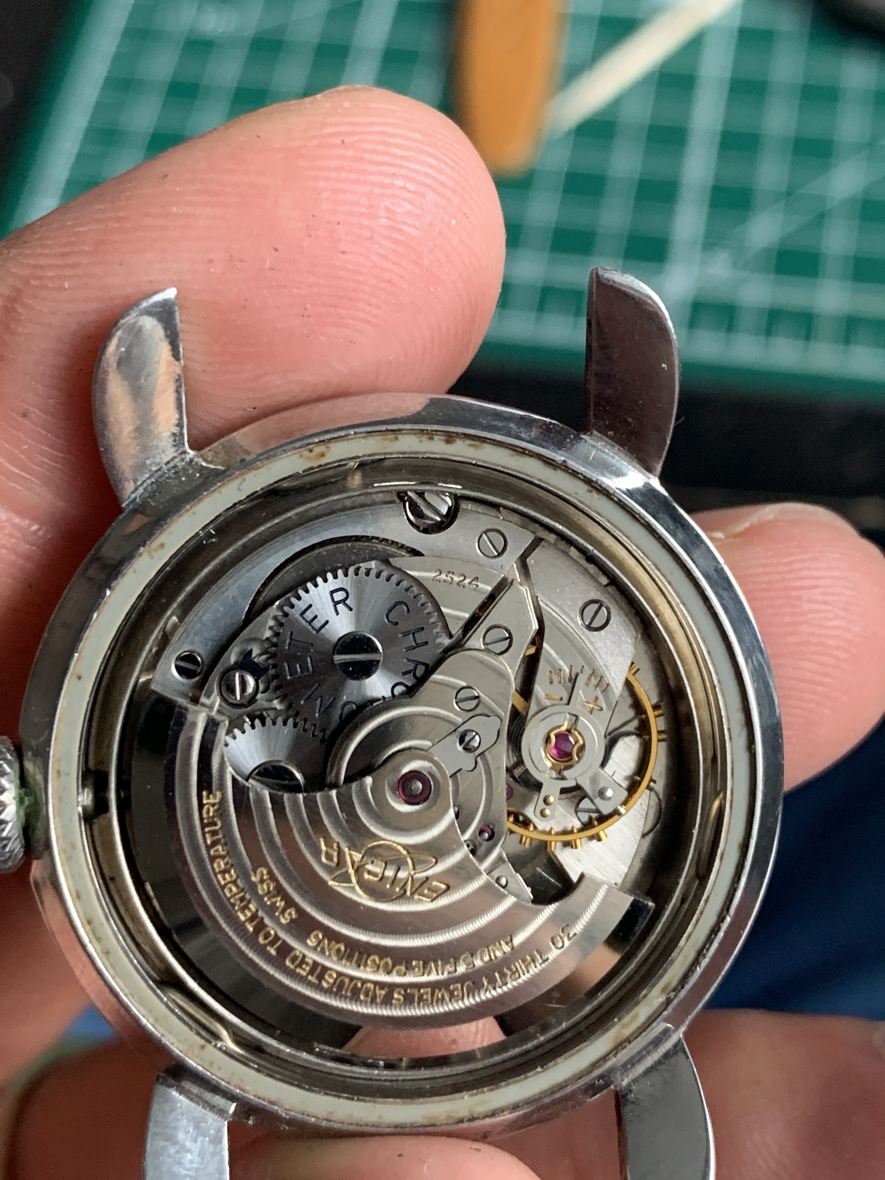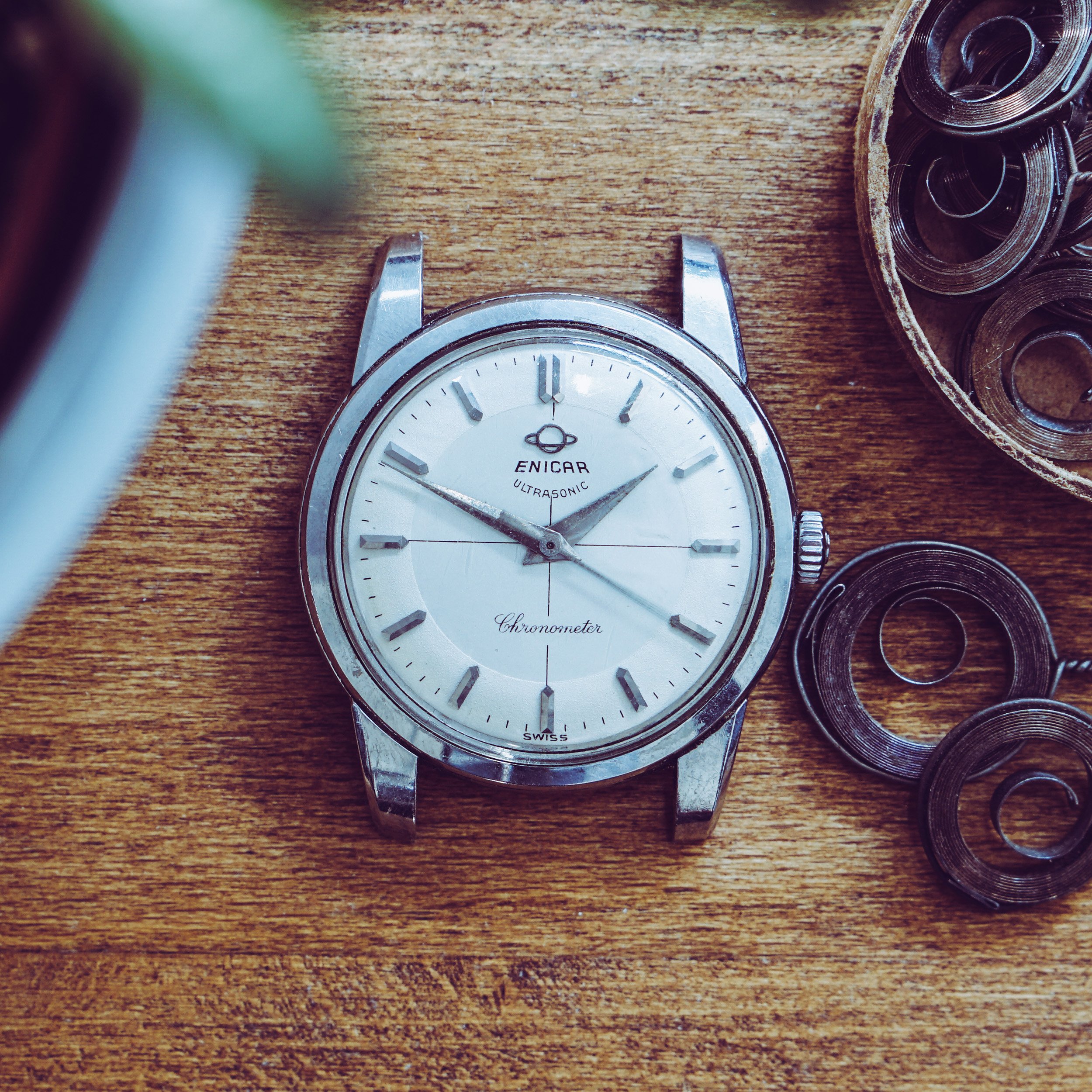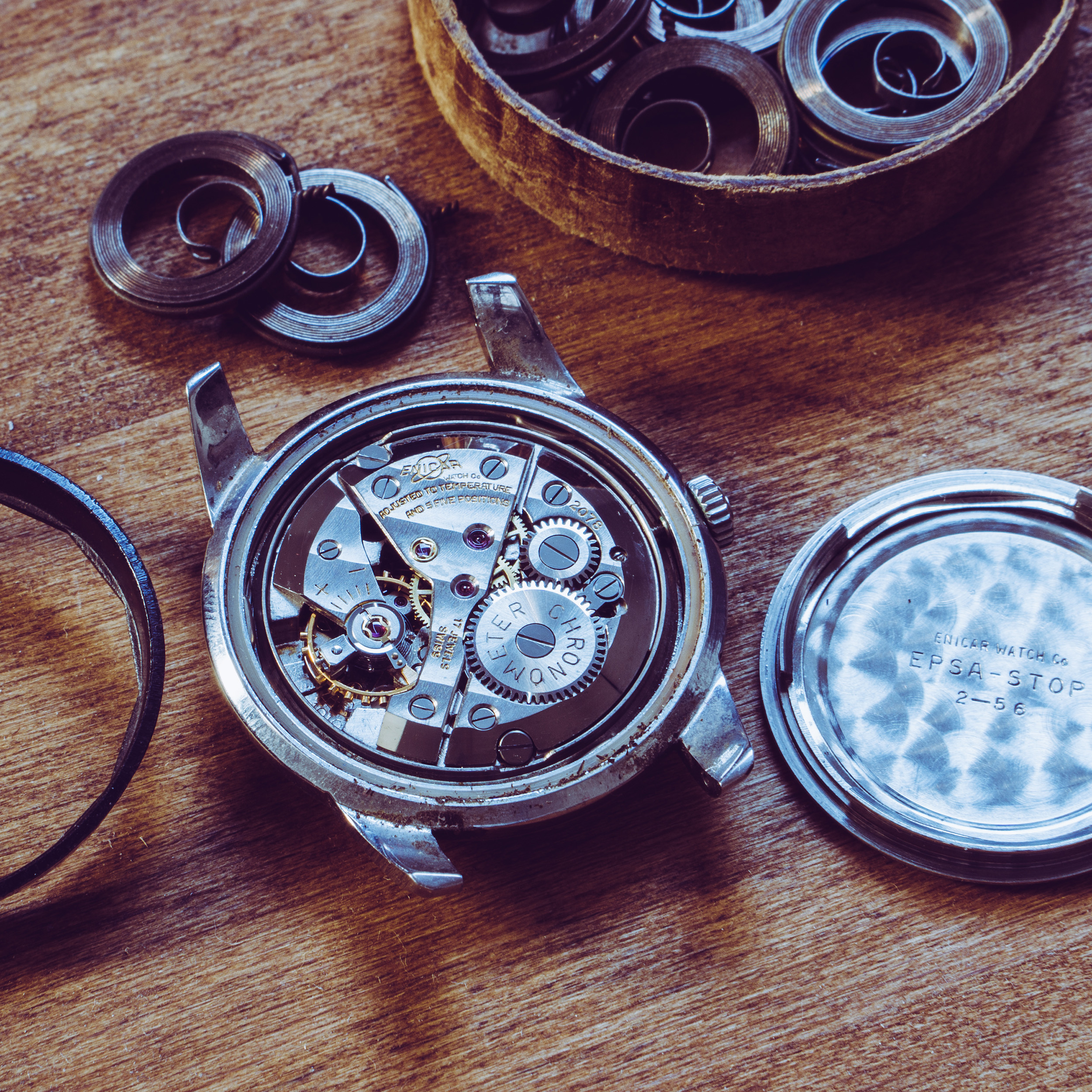 The second is an Enicar Ref. 100/78-10 aS with a manual chronometer movement Cal. AR 1010 and Chronometer serial 2078. Unfortunately it looks like the dial was redialed.