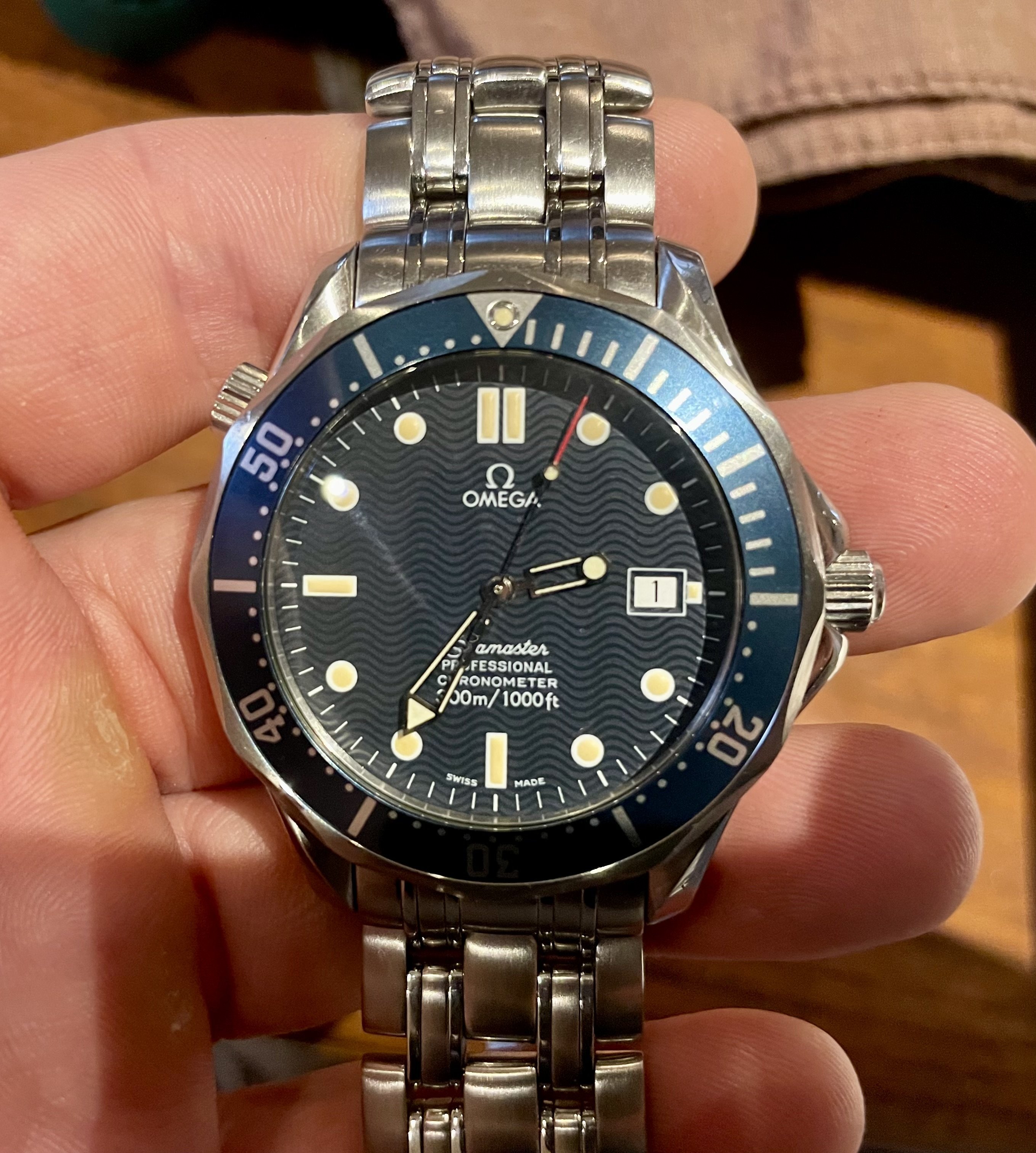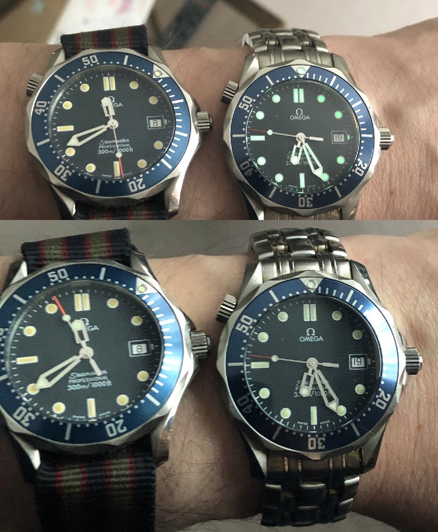 On the right a "World is not Enought". Normal 3, super luminova. Luminova lume will not fade over time vs tritium. 1998 is a coherent date for that watch, yes.