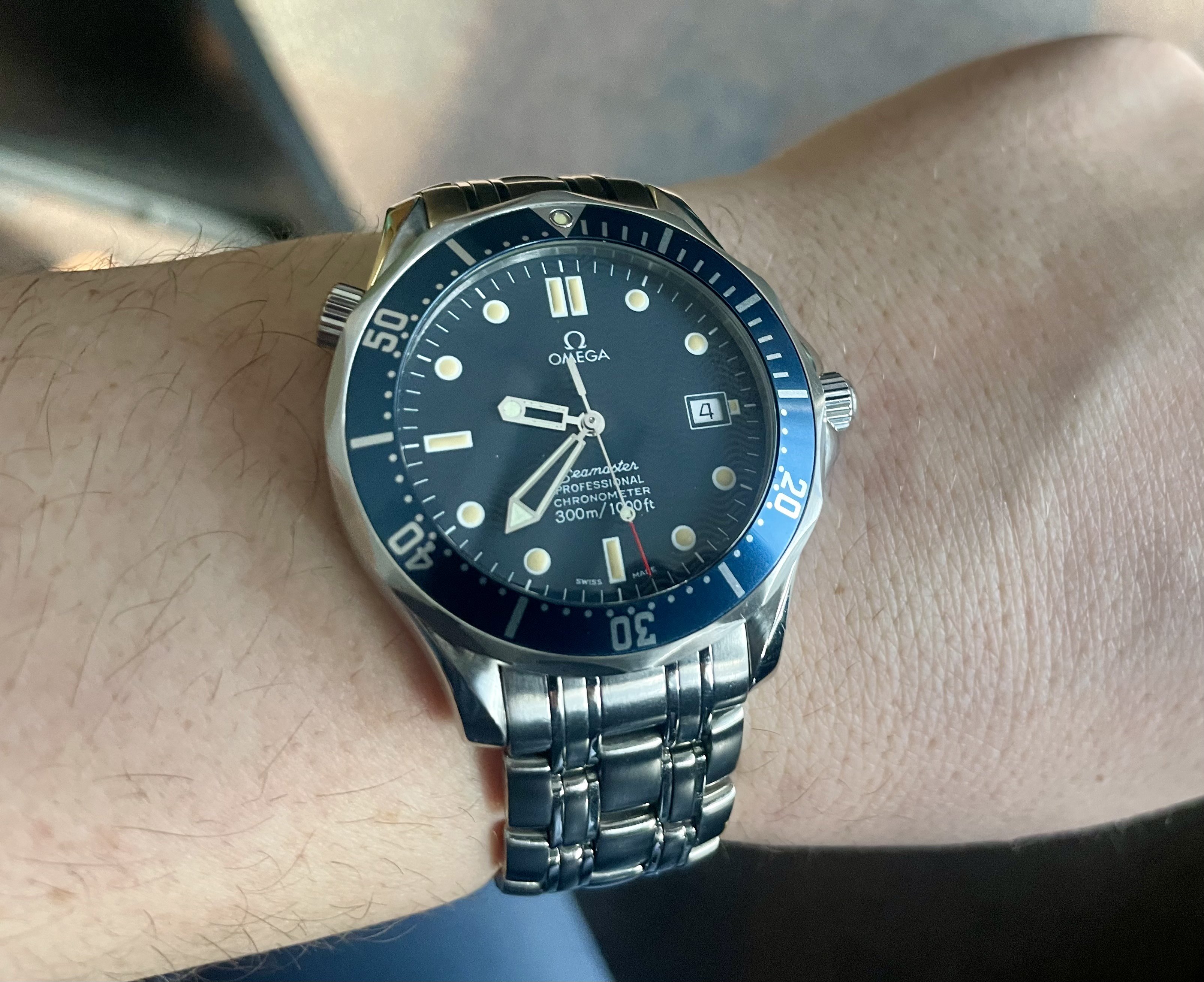 The most obvious is the shape of the 3 in the 300. Look closely. OP's watch or mine have some asymmetric 3. The one from 2006 has a symmetric 3.
