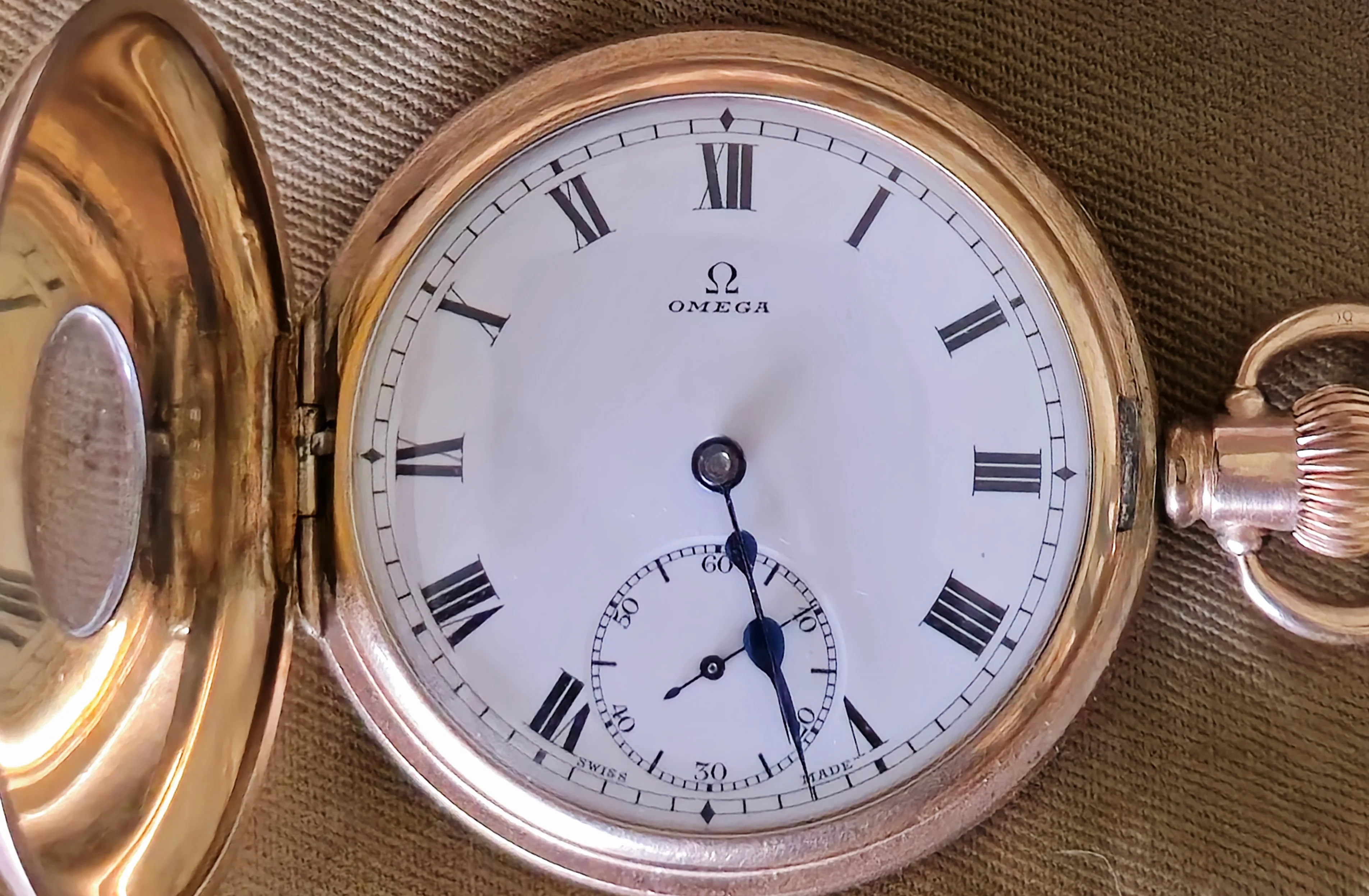 Posts 8,484 Likes 60,615 TexOmega ·Jun 10, 2025 Appears to be a small ladies Demi-hunter Omega pocket watch with gold plated case made in England. Movement serial number dates it circa 1910 but the case made later, so a marriage of pieces. Case really not made for this mov't/dial combo.