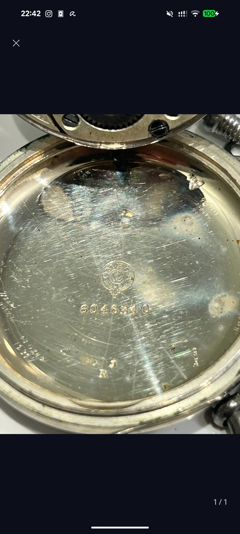 I need help identifying a small mark inside the caseback of this old Omega pocket watch, estimated around 1935. It is located above the letter “r” and is not the large maker’s stamp in the center. The mark appears scratched or lightly engraved rather than punched, and I cannot match it to any official silver hallmark. Could someone tell me what this mark is or what type of marking it might represent?