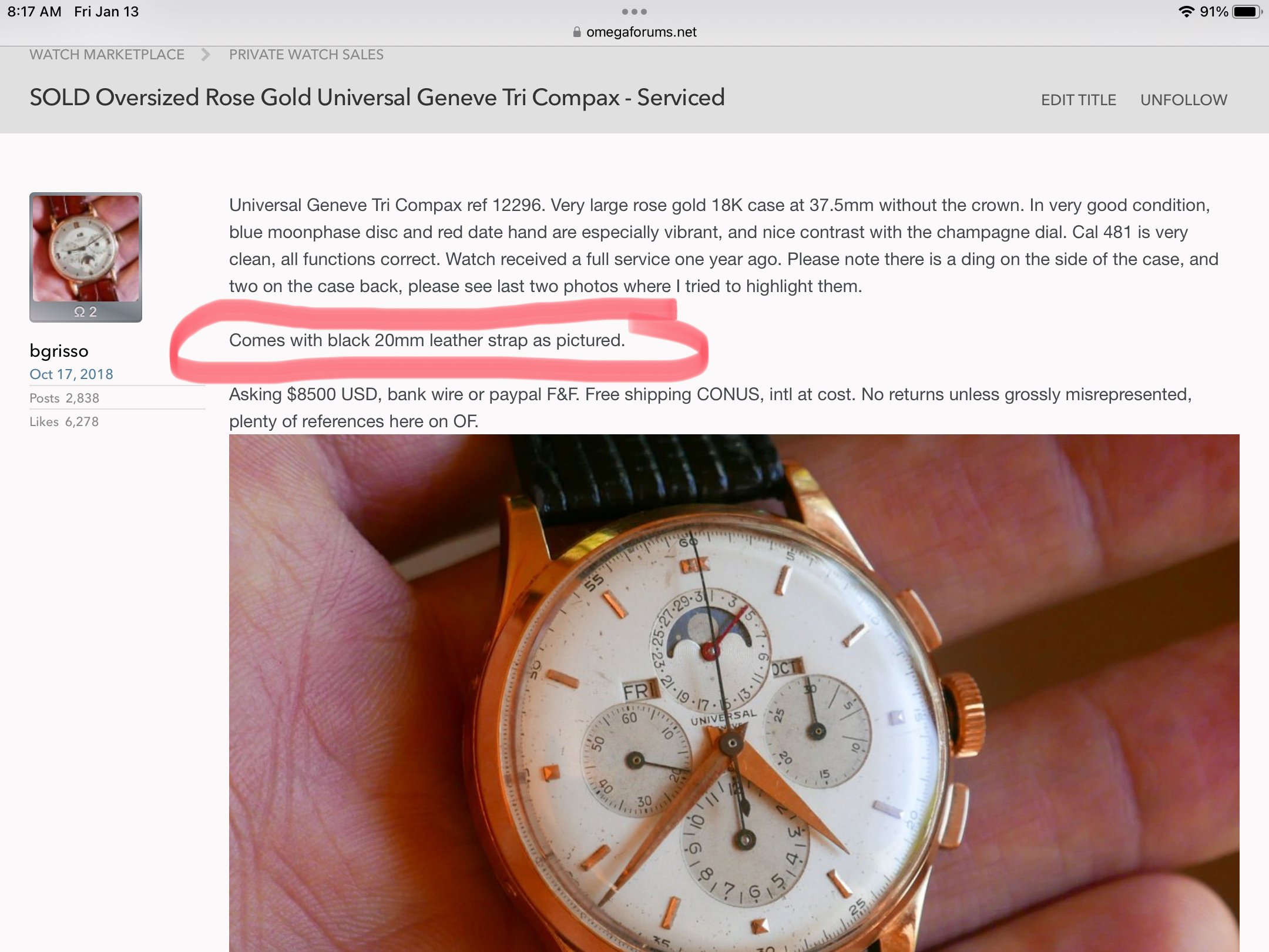 ·As I mentioned in the other thread, strap size is reference specific, not just based on case size. I believe a 12296 takes a 20mm strap. However it also depends on the brand somewhat as there are variations in accuracy of the actual strap size. So if you google this ref you will see 18mm, 19mm, and 20mm straps being used.