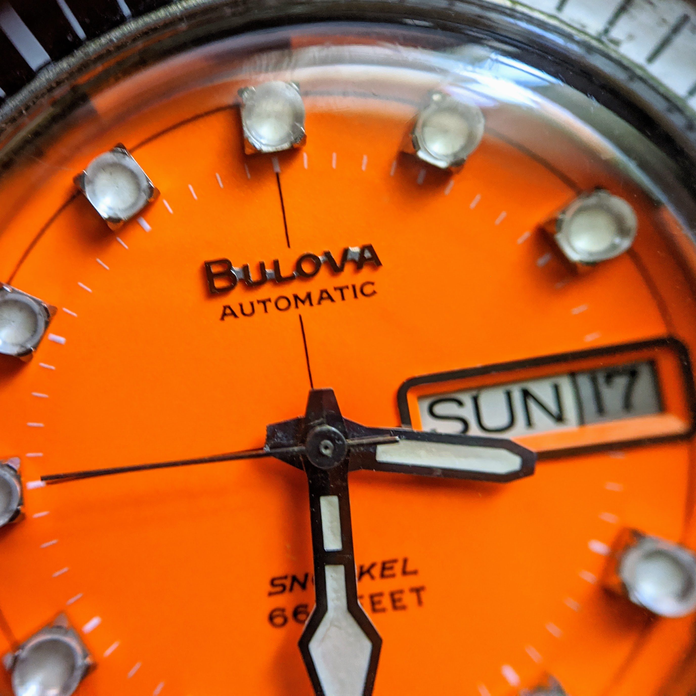 One warning -- don't buy a loupe if you want to keep thinking your watches are perfect. Here's a phone camera shot of today's watch through my BelOMO achromatic 10x triplet.