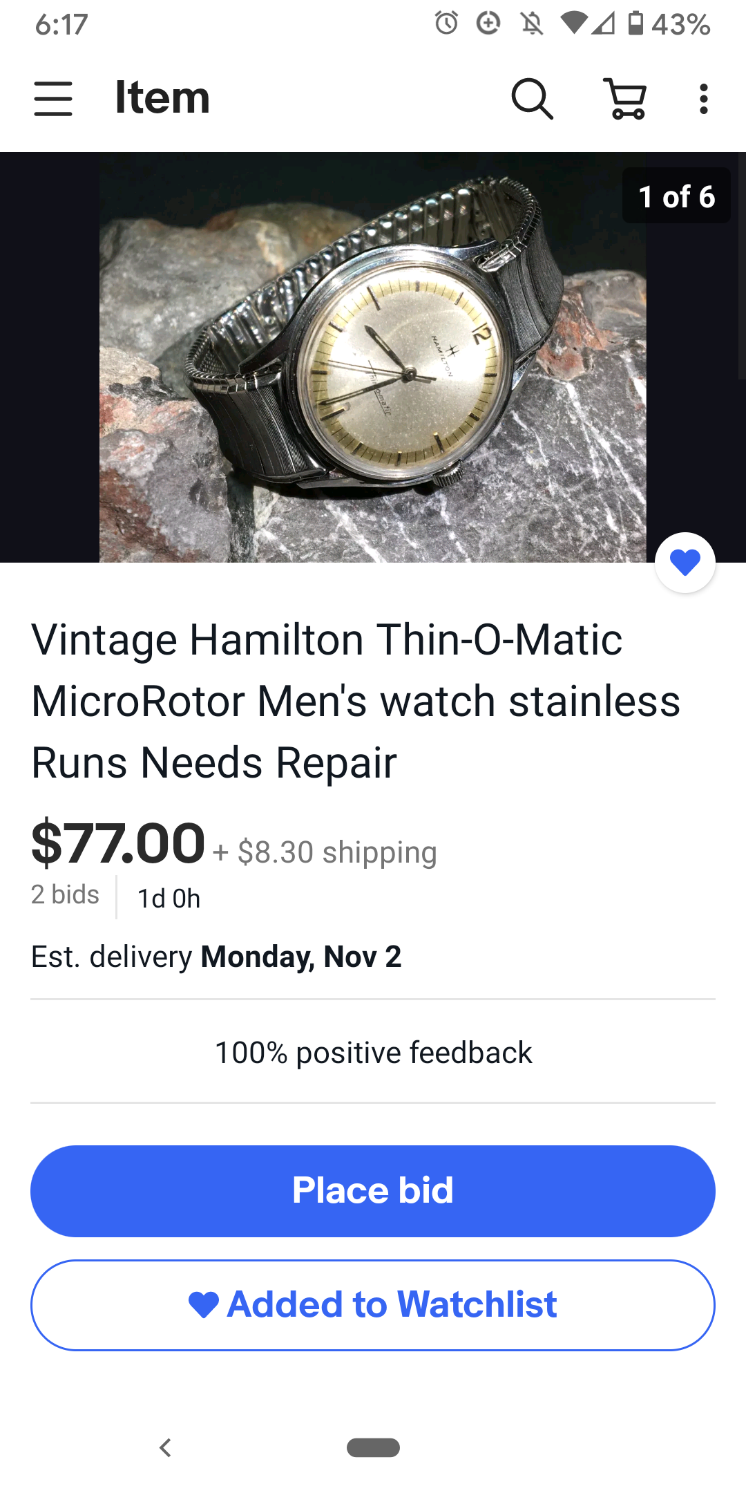 On that theme- another watch for which I happily paid $700 for a similar example ended yesterday- I put in a low ball bid and got it for $288. Talk about unpredictable markets!