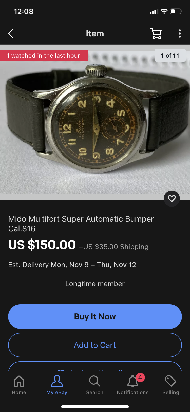 Seller says 35mm which seems optimist for the period so perhaps 33mm + crown, but an actual 35mm would be a wonderful surprise. Has make offer- let’s see if someone here can steal this thing.