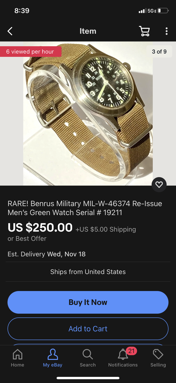 If you missed the last Benrus D-Day reissue, here is another. Needs a little TLC with a crystal wet-sanding, but should clean up nicely. If you aren鈥檛 familiar with these- read back a few pages. Price is not horrible, but make offer under $200 would be better.