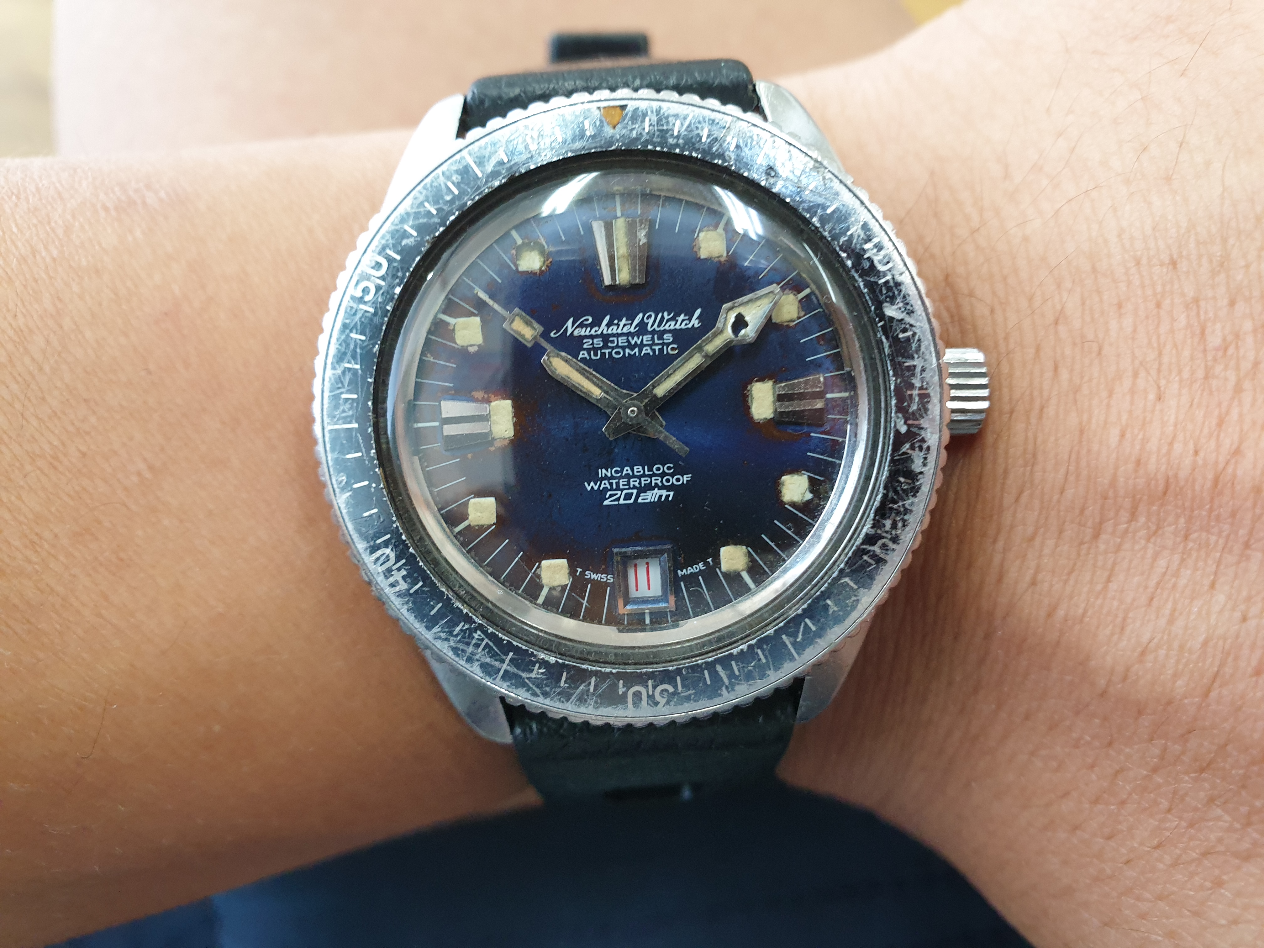 Not a BIN- so breaking my own rules- but for you Technos Skylight nuts- this one has the medallion back and case looks to be in decent shape. Not keeping time, and dial has some crud on it, but if you want that back.... make this dude an offer.