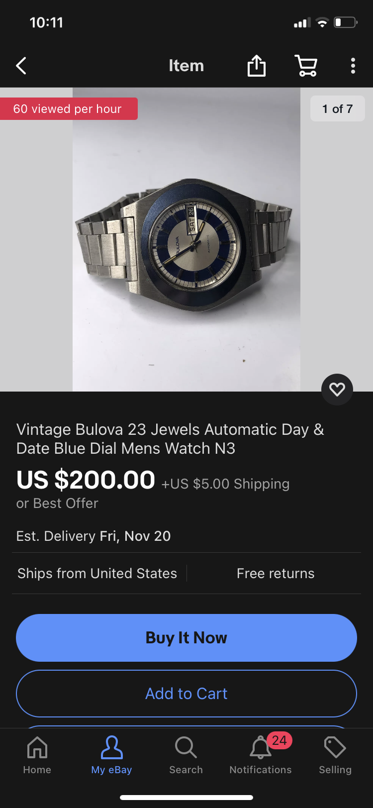 Nice Bulova with what seems to be the original bracelet. https://www.ebay.com/itm/264936063470