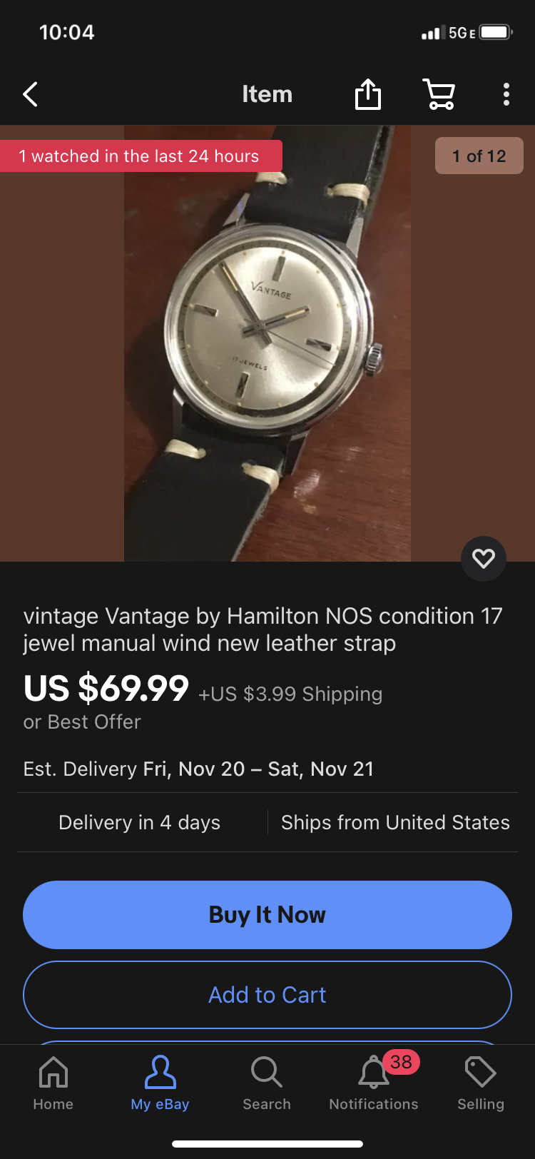 This is a lovely chrome plated Vantage (Hamilton). 34mm (all dial so will wear well on any wrist) stunning sunburst dial with silver outer track and bright perfect lume pips, faceted indices so they play the light- this is a really clean design that’s timeless, elegant and sporty. Seller has make offer so let’s see who can get this for lunch money.