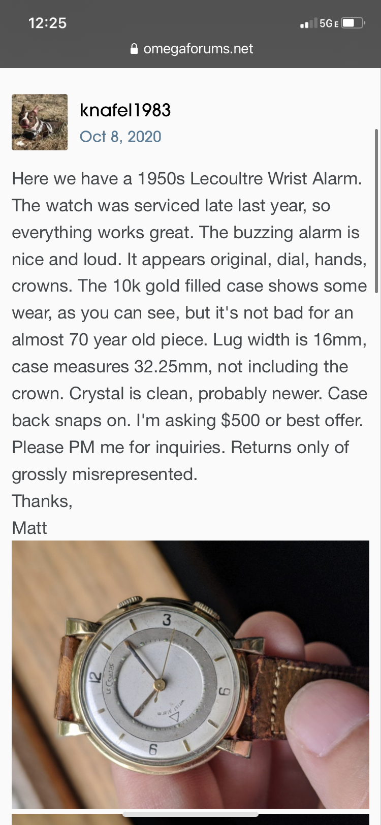 I’ve purchased from these guys several times- they are good people. I had an issue with a 40’s chrono I bought from them and they made good on it. I have them in my saved sellers- they have great stuff.