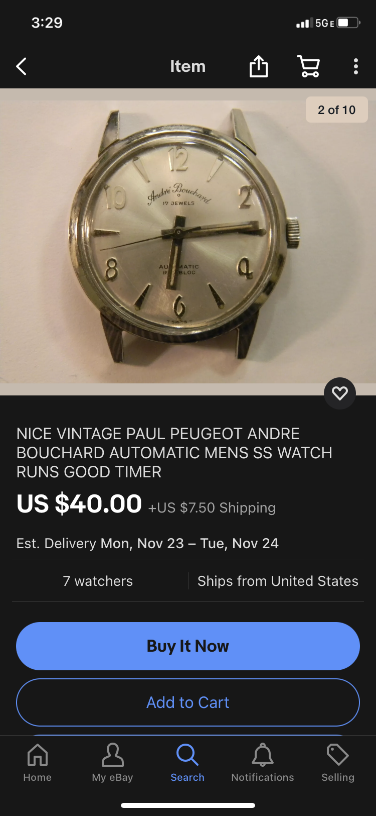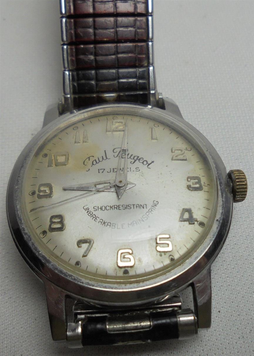 Very nice Andre Bouchard made by Paul Peugeot (big mass maker the likes of Wakmann or NIvada whereupon other companies can put their names). All stainless with classic shape that is absolutely conventional, lovely dial with applied numerals and just enough sunburst to be interesting but not enough to be exciting, nice lume on the hands and dial that can be seen but not flashy and won’t be noticed by others, A Schild movement which is very good but not exceptional. Size is 33mm which is not big, but not small- truly middle of the road.
