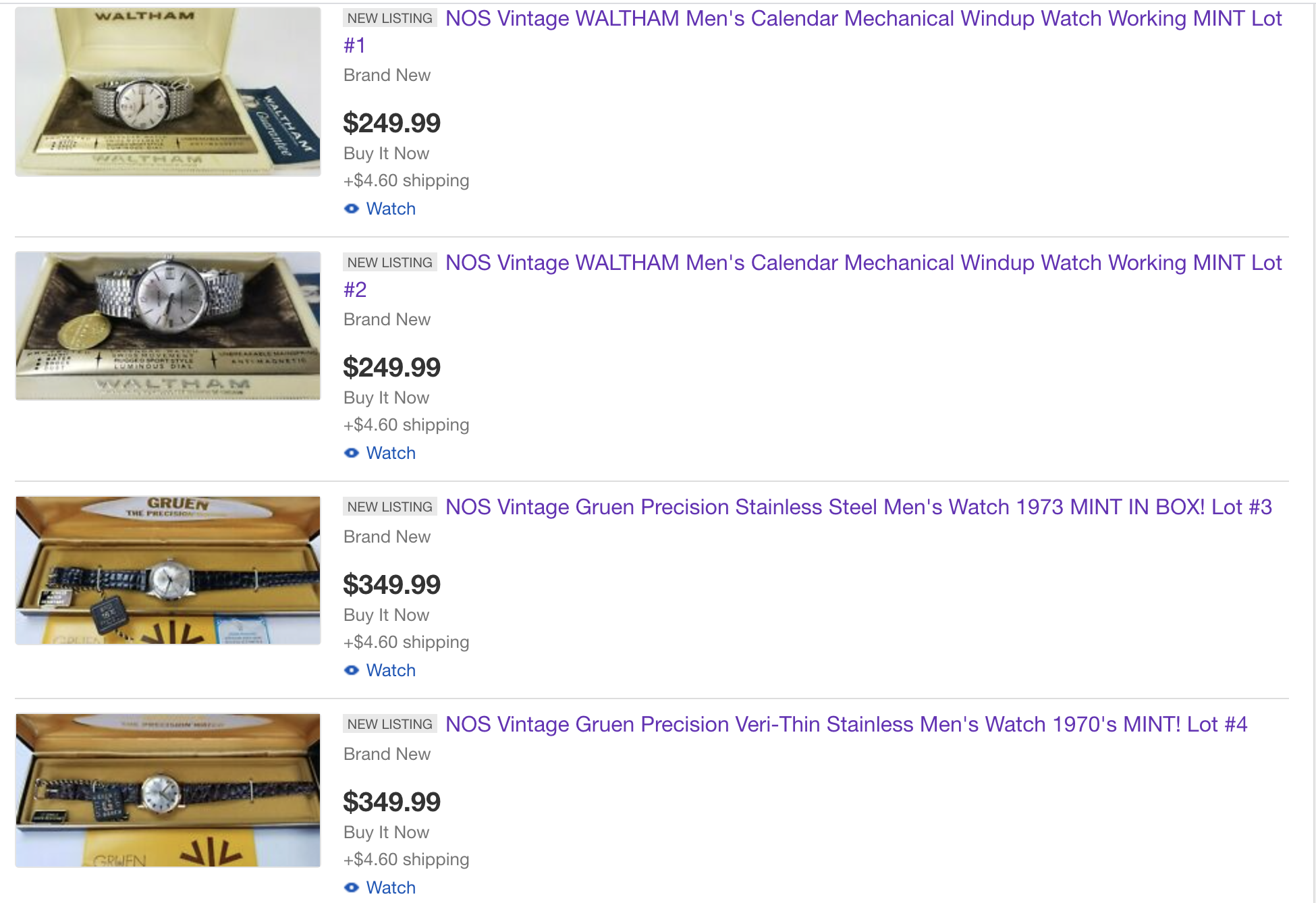 This seller just listed 4 NOS 70s watches (Waltham & Gruen) at quite reasonable prices. Full sets and mint condition.