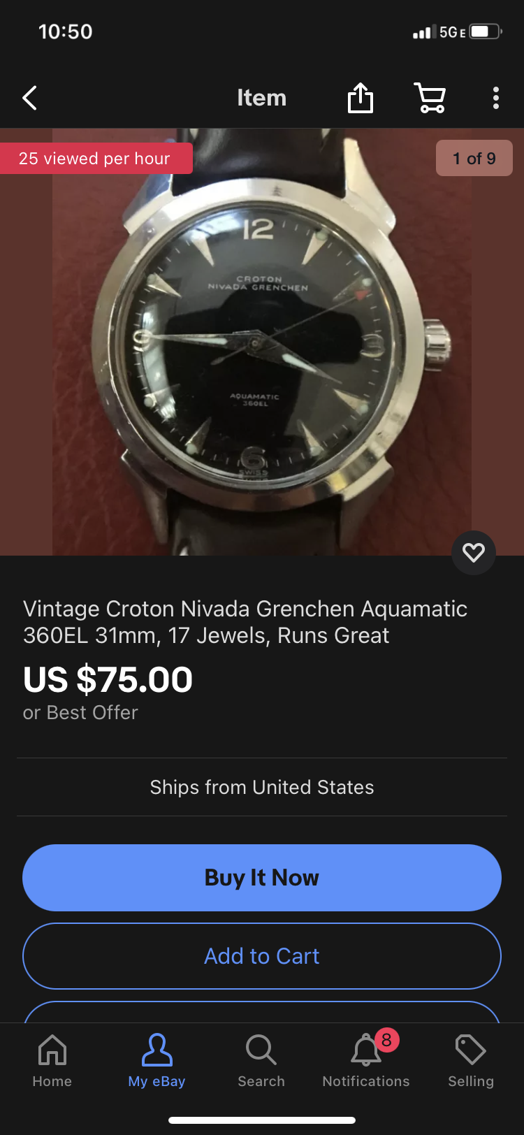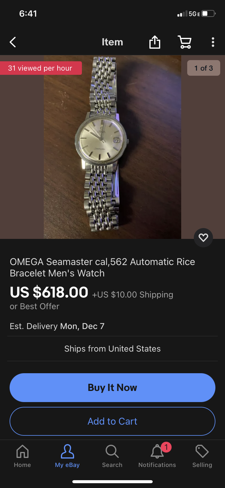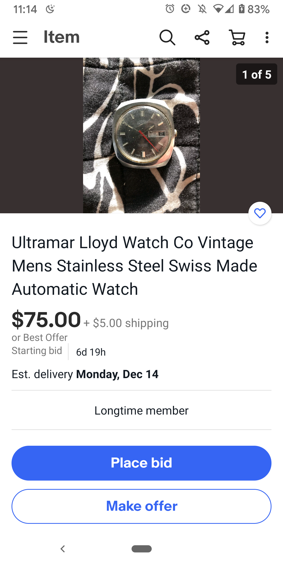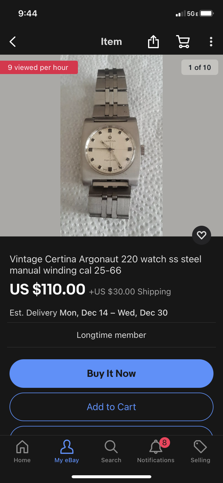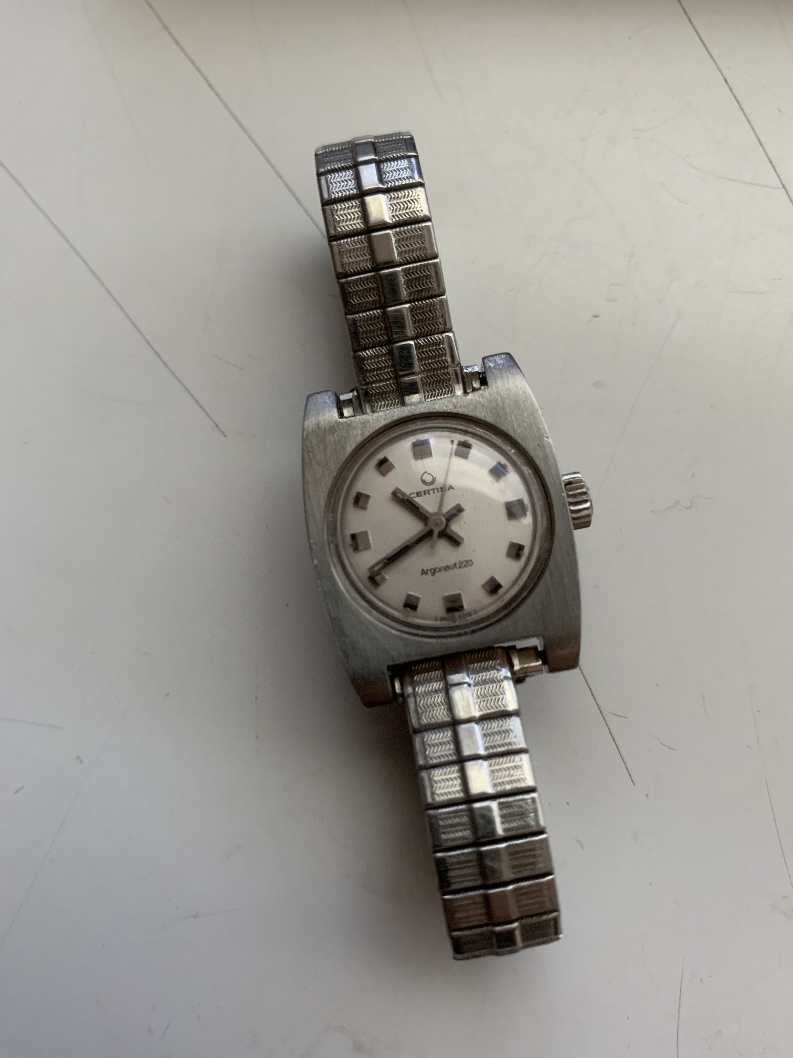 Certina Argonaut- nice angular case, dial looks clean, bracelet may be aftermarket- seller looks like he’s cleaning out a watchmaker’s estate. Price is nice- even with the $30 shipping, but watch is on the smaller side.