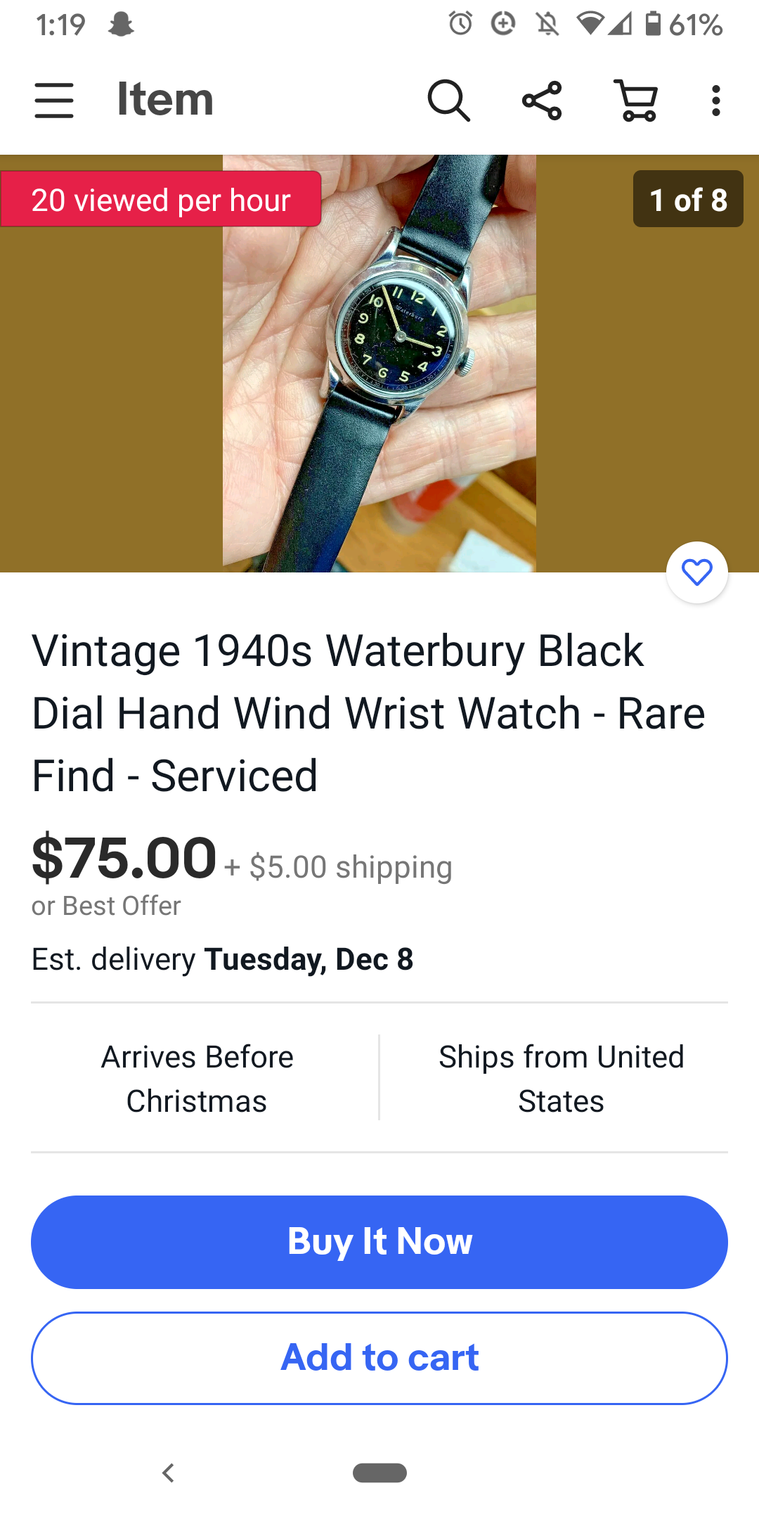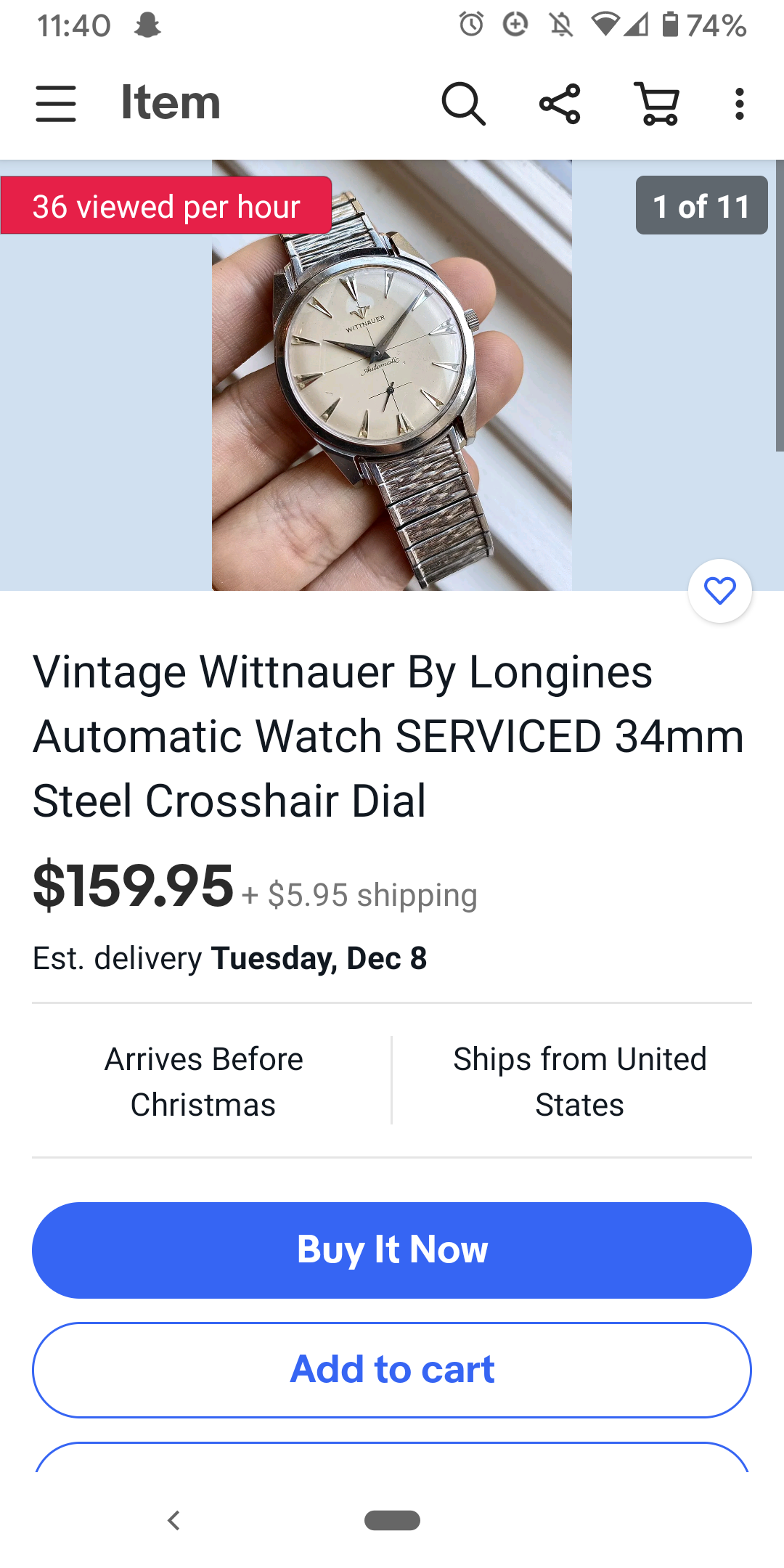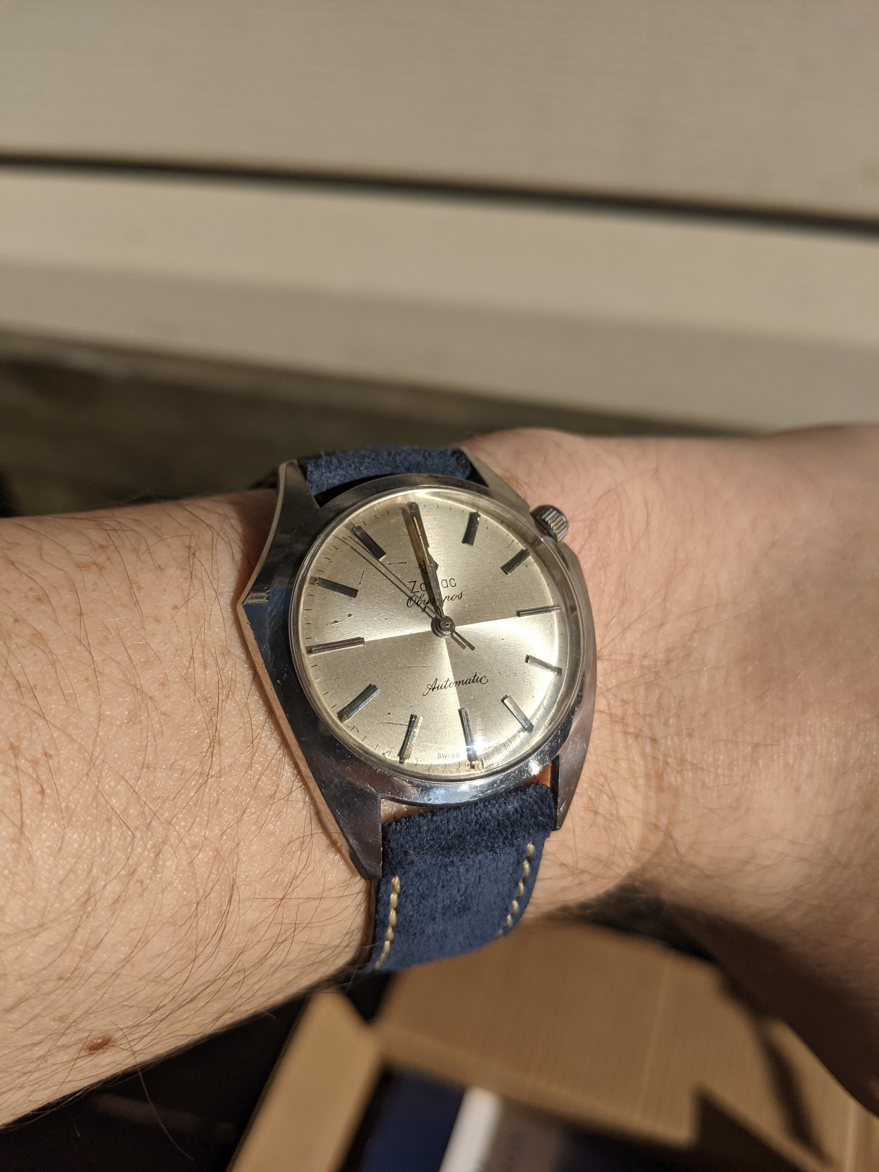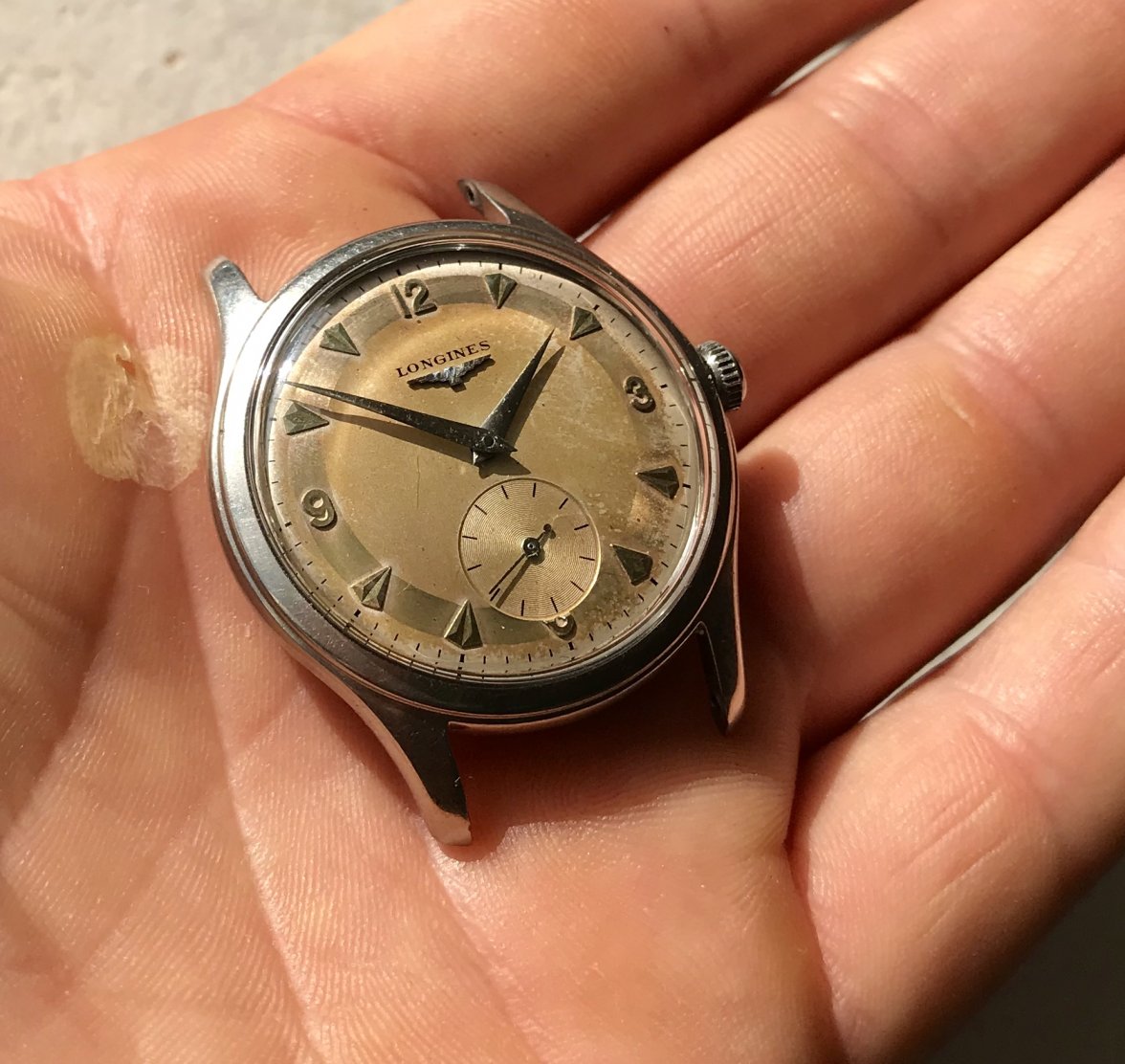 This is for the pantina junkie- 1955 Longines with Tri-tone sector dial and arrow markers- this is a lovely watch- if you like the patina and intend to eventually have it serviced.