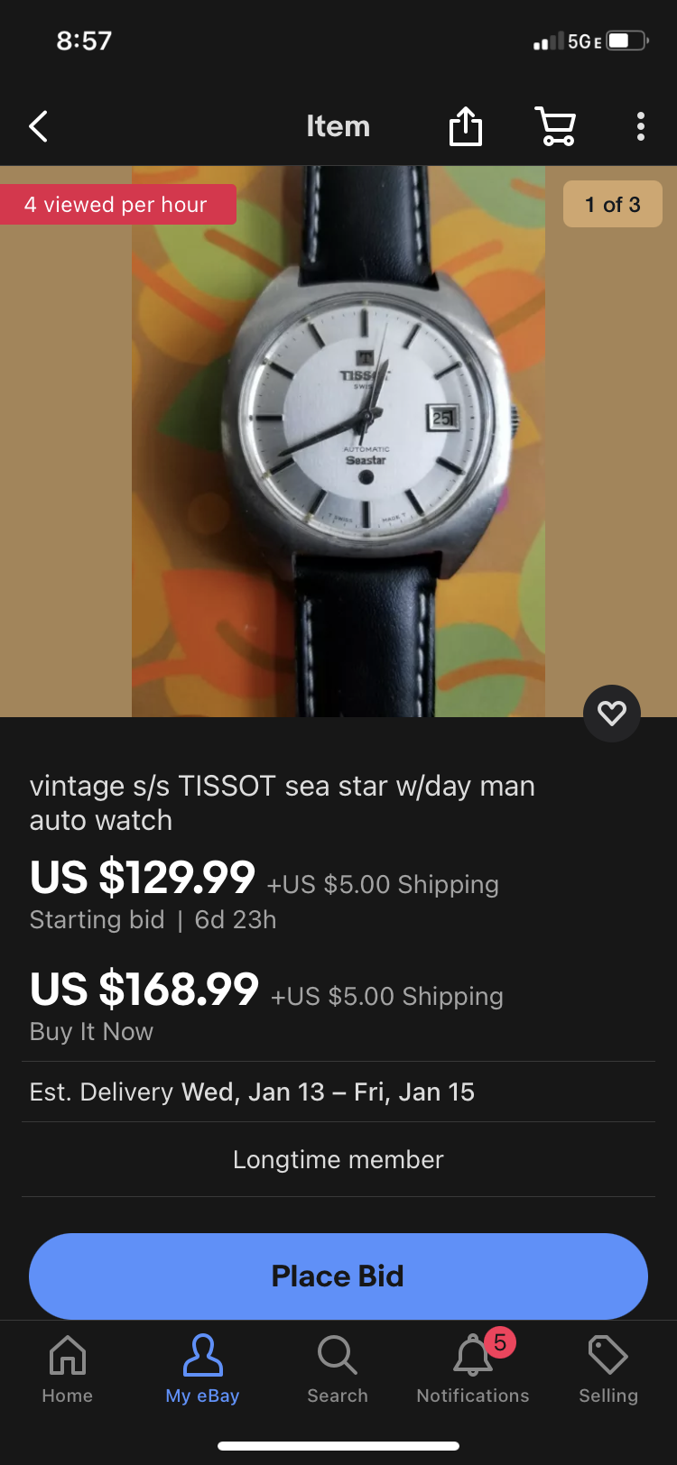 ·Nice looking SS Tissot Seastar-Seven Visodate. Looks to be in good shape and has a clean signed back which is always a plus on these (and worth a small premium). Has make offer- would be a nice buy around $150- but still not bad at asking for a classic styled Tissot.