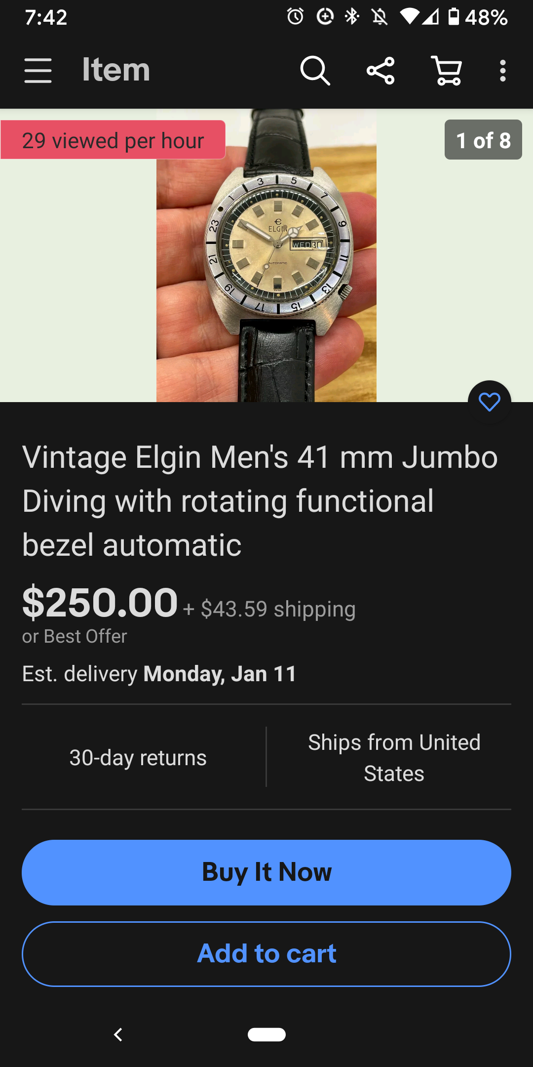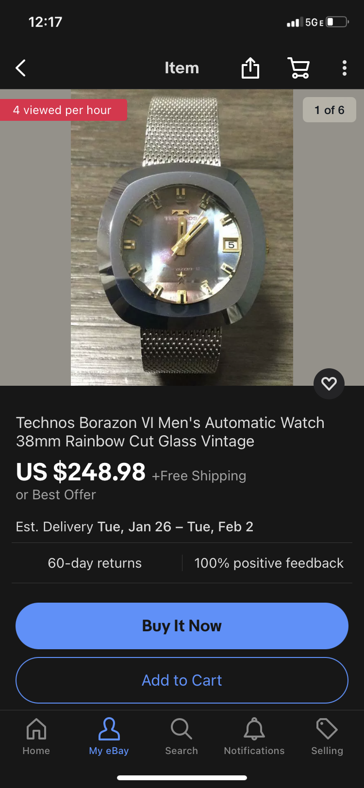 Good day. First, let's all cheer the close of this dumpster fire of a year! I'm wondering if you might all chime in with an opinion. I sniped a watch and lost (barely) and now because the fellow (or woman) whose bid won has pulled out, I'm being offered a second chance at a price of $990. It seems fair to me but I'm just not sure - any opinions? https://www.ebay.com/itm/VINTAGE-MEN-S-STAINLESS-VULCAIN-CHRONOGRAPH-WATCH-1376-/264986436314?nma=true&si=8f%2Fnncv8kb1mRrF2pYa69T6KkCg%3D&orig_cvip=true&nordt=true&rt=nc&_trksid=p2047675.l2557