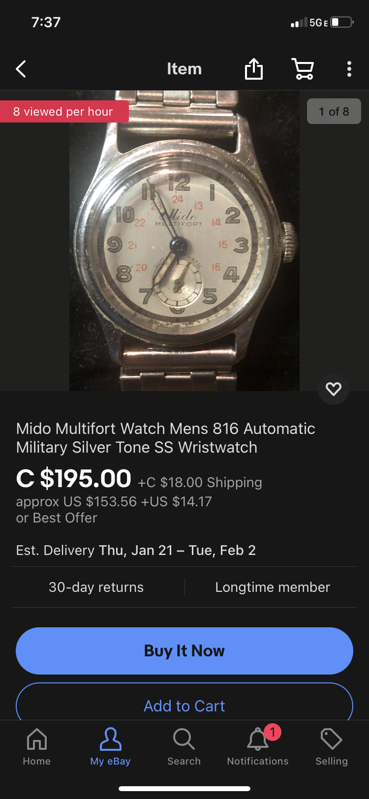 Cool watch, but I like to buy the seller. This one put "military" in the listing title--and never mentioned it again. I could be wrong, but I don't think this watch was ever connected with the military. That's called keyword spam, it's forbidden on eBay, and I don't deal with sellers who use it.