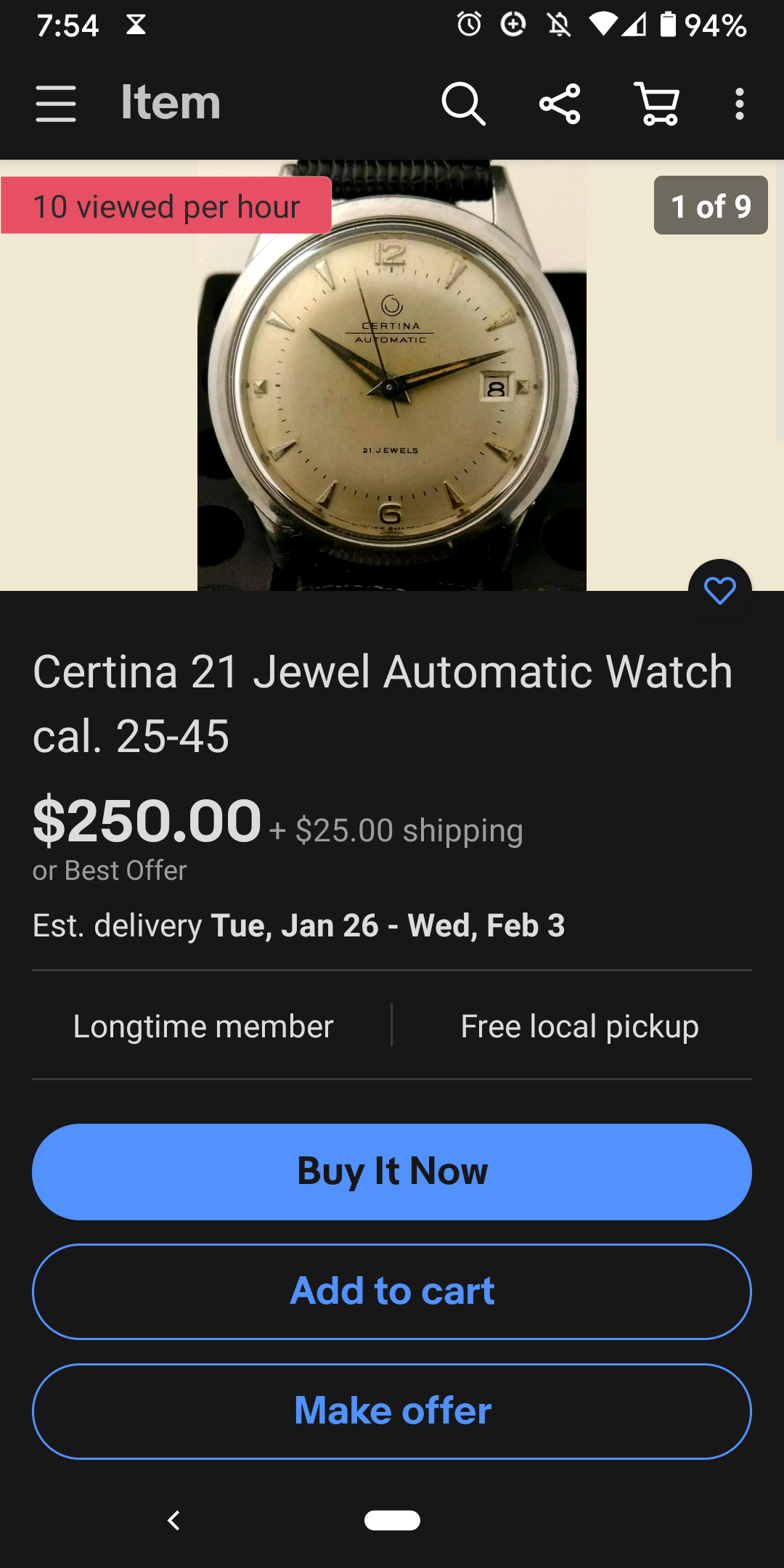 ··Sunburst dial fanThe majority of US watches posted on this thread - and yes, I’m looking at you; Bulova, Benrus, Elgin, Waltham and Wyler (and I hope I’ve got that right) - all seem to be teensy 33mm watches. Pretty enough but too small even for my skinny wrists.