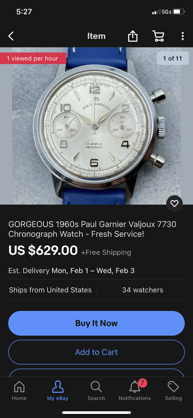 ·Nice looking 7730 based chrono from one of the many Paul’s. Plated case looks near perfect and the sunburst dial is lovely. Seller is one I watch (although I have never purchased from him) and he puts up nice stuff all the time. Considering he (self) serviced it, the price is actually a good deal .