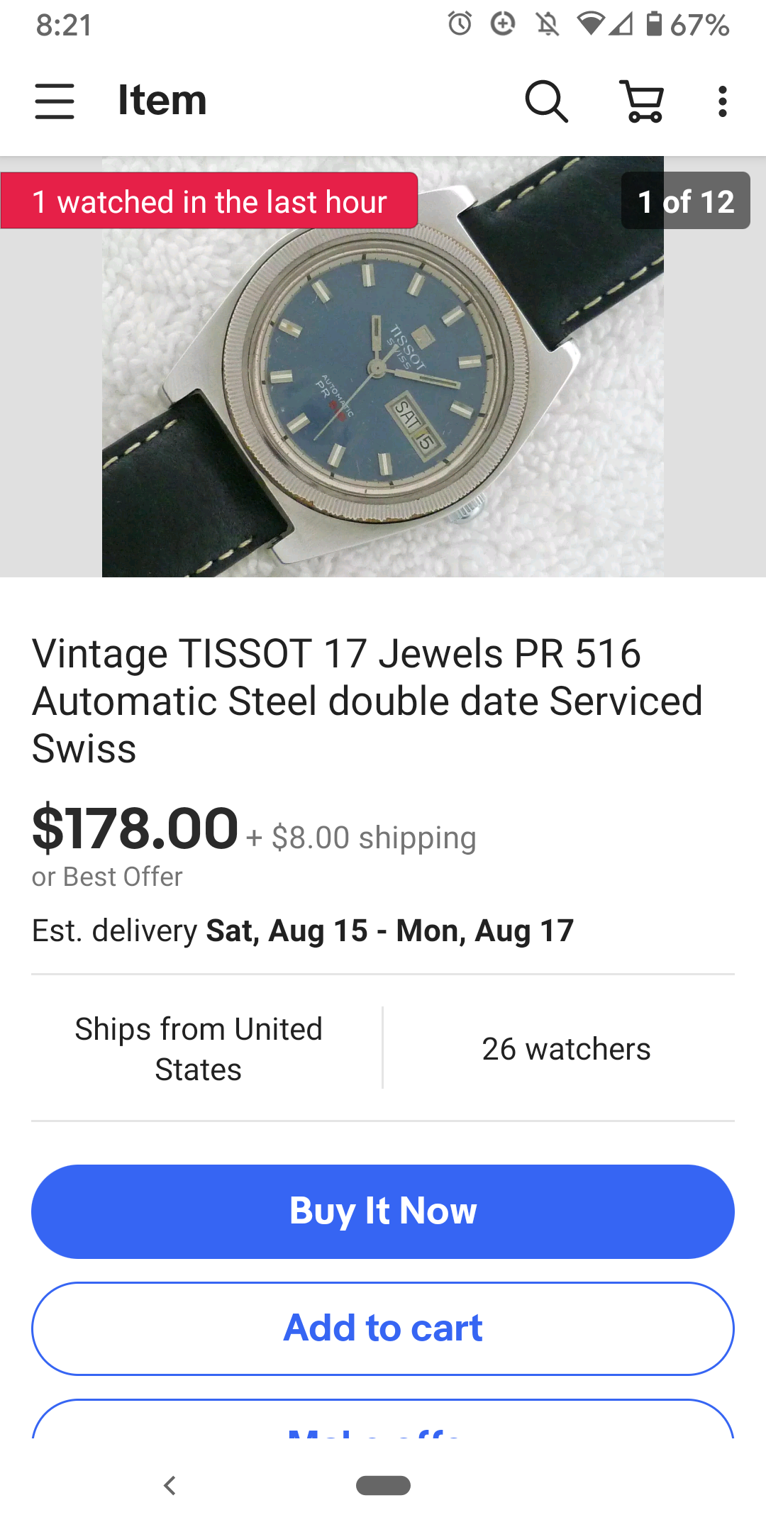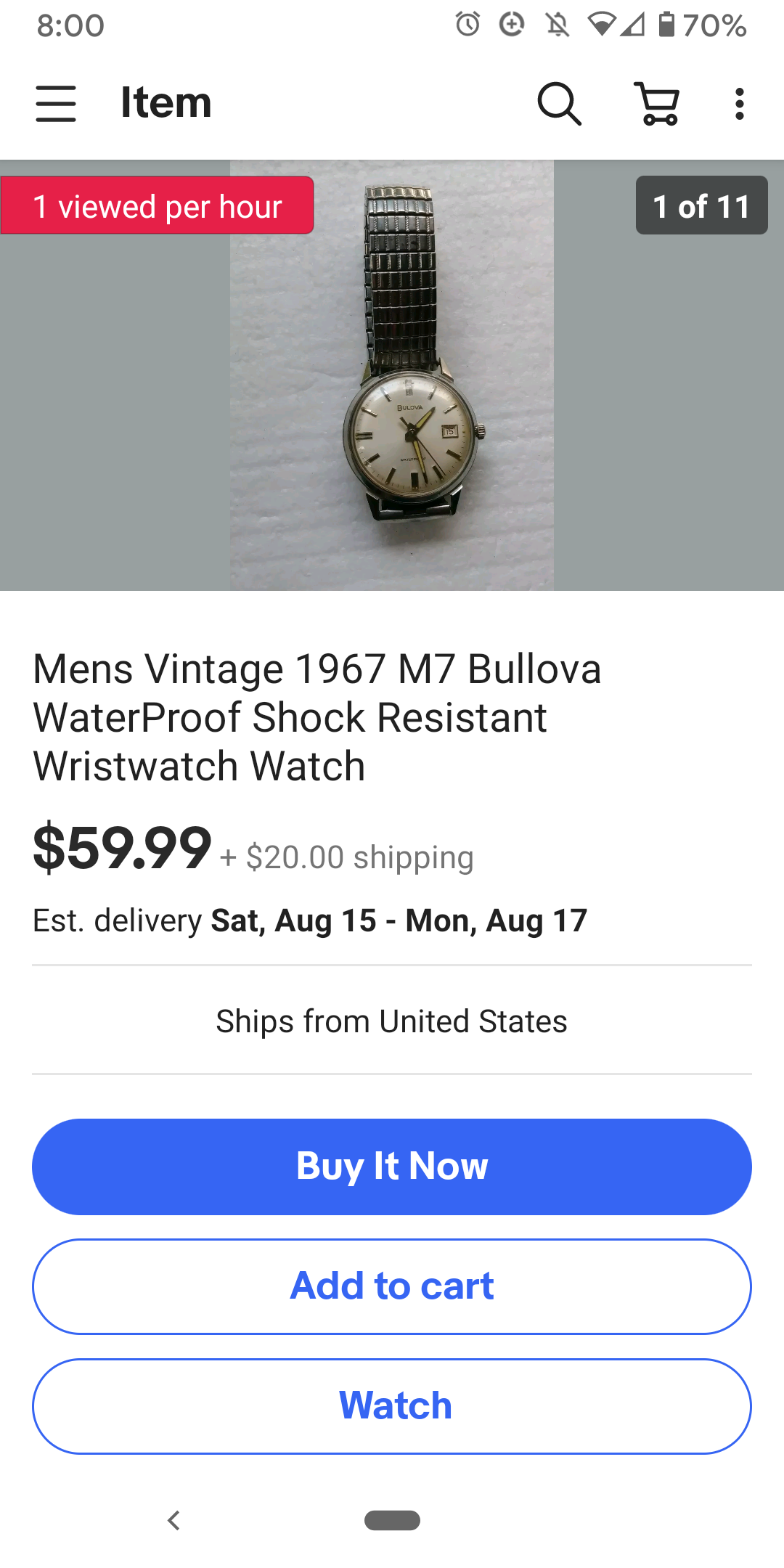 Black dialed 1969 Bulova, stainless case looks sharp and not polished to a blob. Photos are crap but dial looks great with bright yellow lume pips. And everyone loves the whale dials.