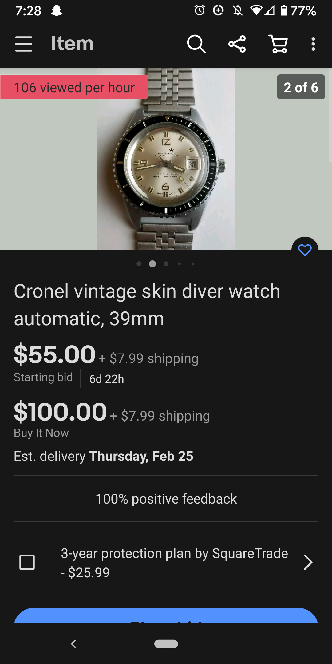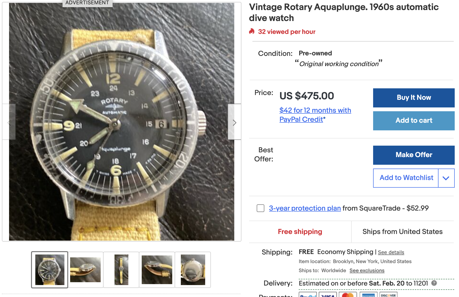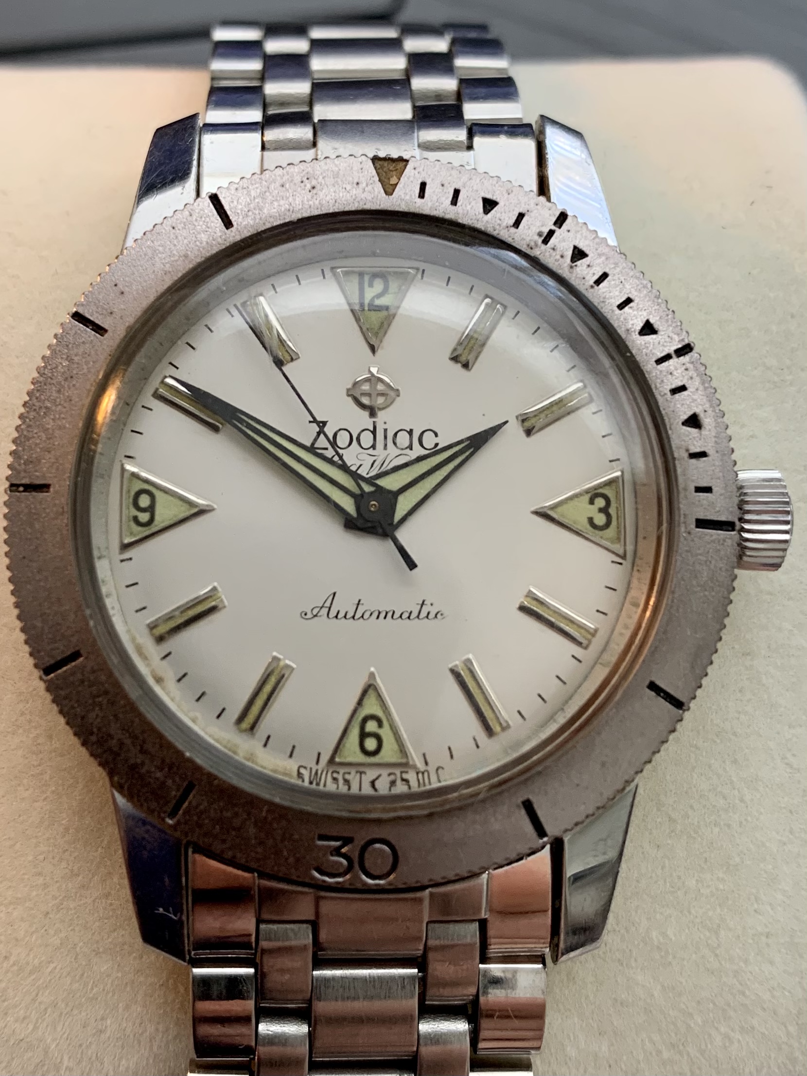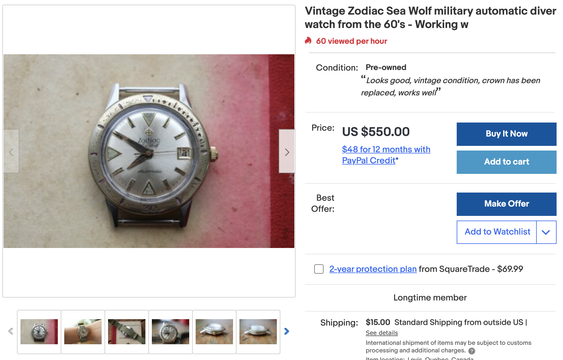 If patina's your thing, this Sea Wolf has plenty of it. Great looker, imho. Crown is a replacement. Someone here should throw in an offer and get it!