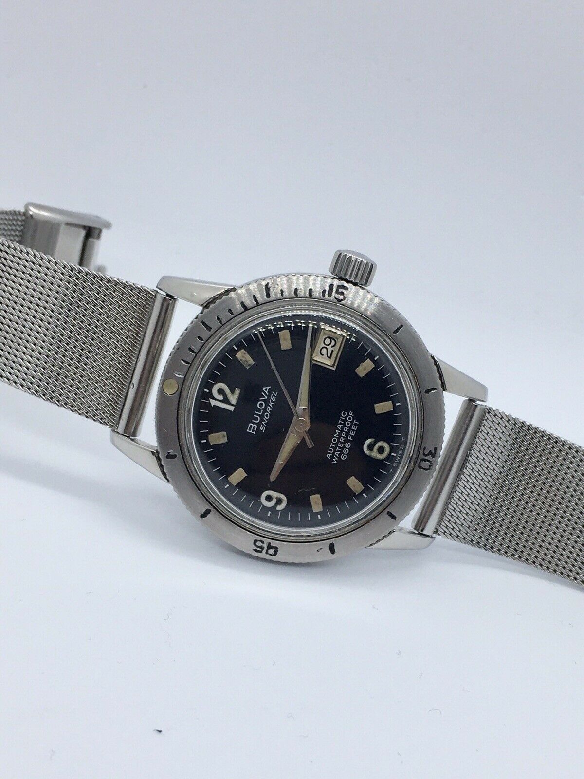 Bulova Snorkel from the Uk. Trying to cut down on purchases. Love the strap with its metal lined buckle holes. But maybe strap not original to the watch?