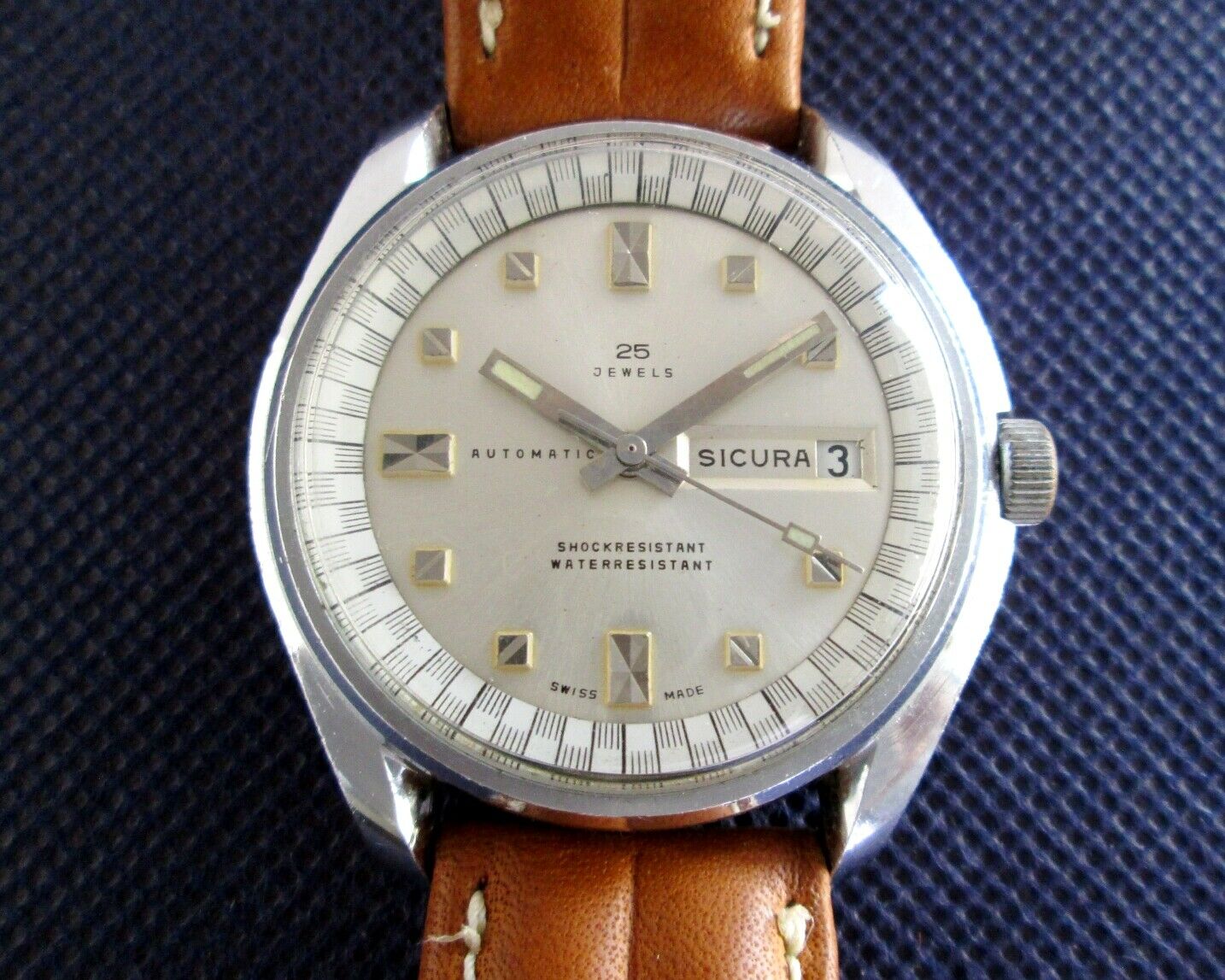 After seeing a member's Sicura today, I was browsing Ebay for that brand and saw this example of a racetrack dial in good shape compared to most in this price range on Ebay. 38mm. I know some might want a full stainless steel case but I liked the dial. Seller had a lot of details about the brand if you're curious. No relation to the seller.