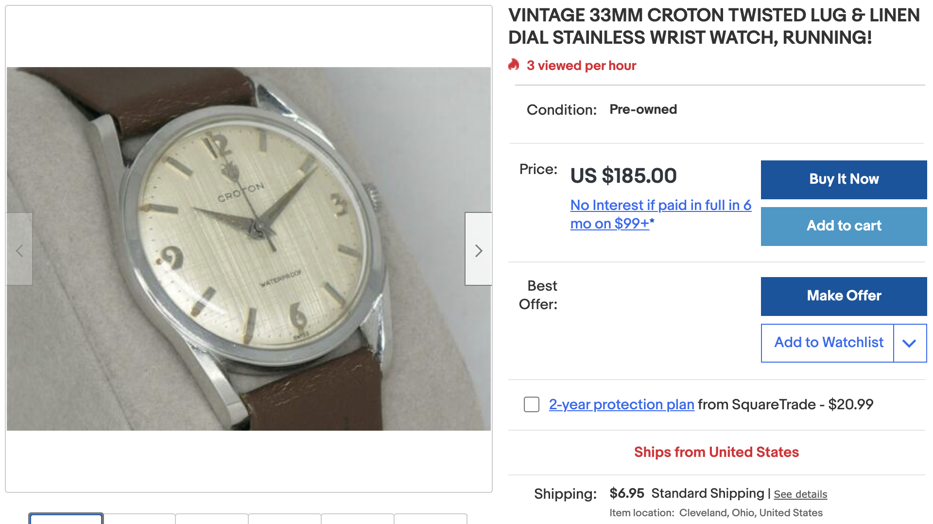 This all stainless Croton also caught my eye with the nice twisted lugs and clean linen dial. A bit pricey but the seller accepts offers.