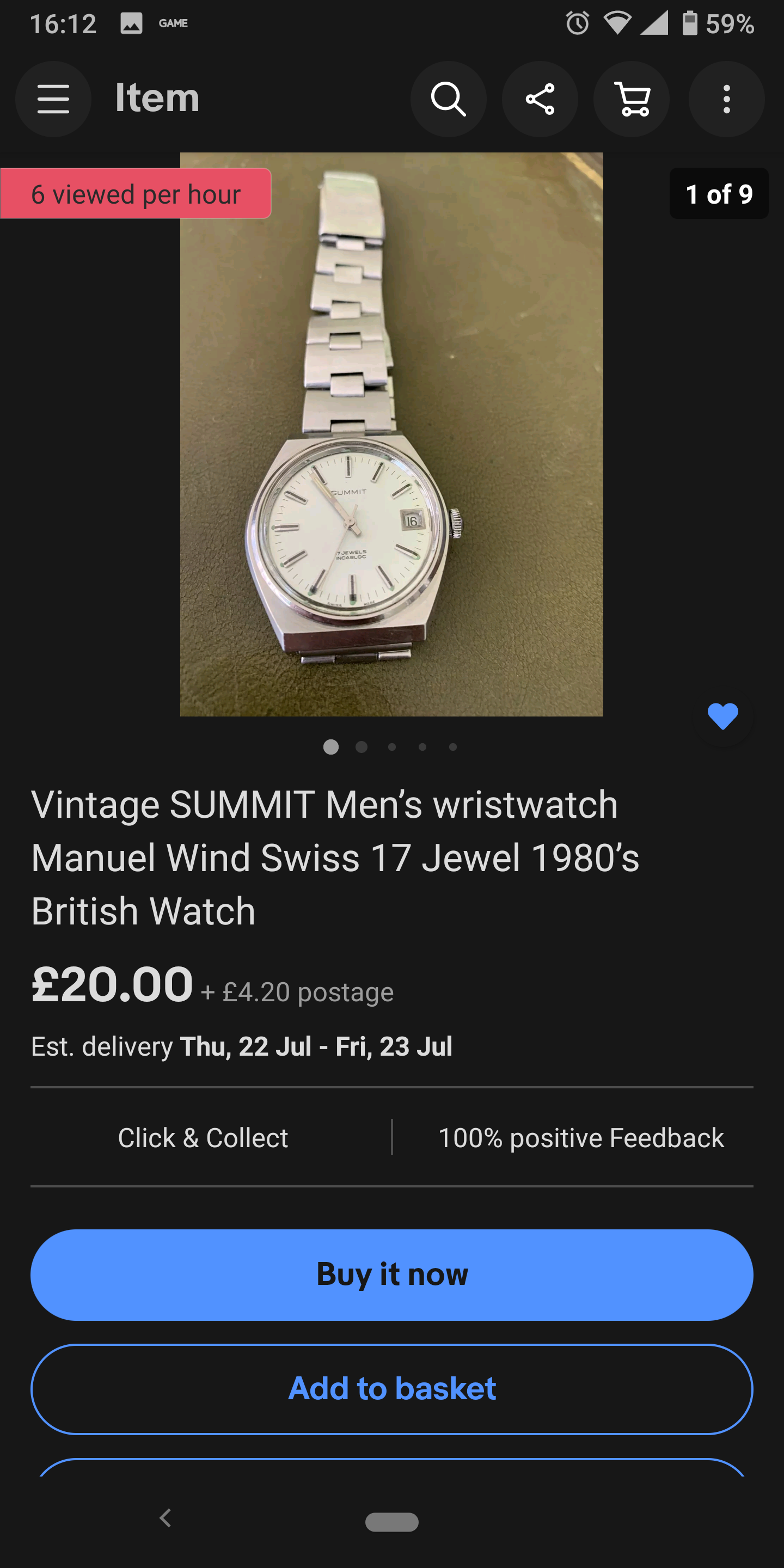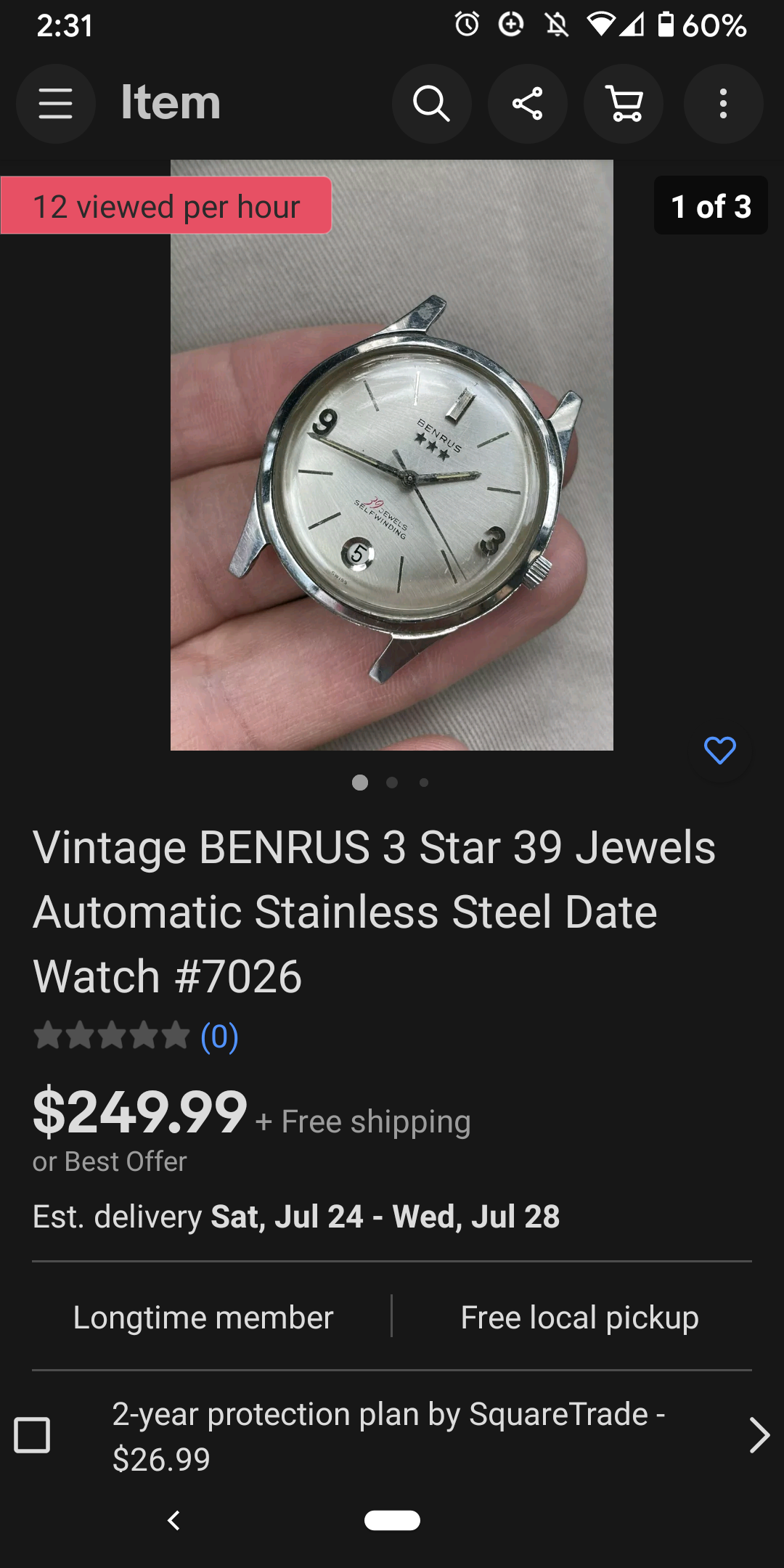 WAT, stainless steel 1973 Bulova 666 for $250? Even with a broken day change, I don't think this will last long. Has make offer, but if you like it, just lock it in.