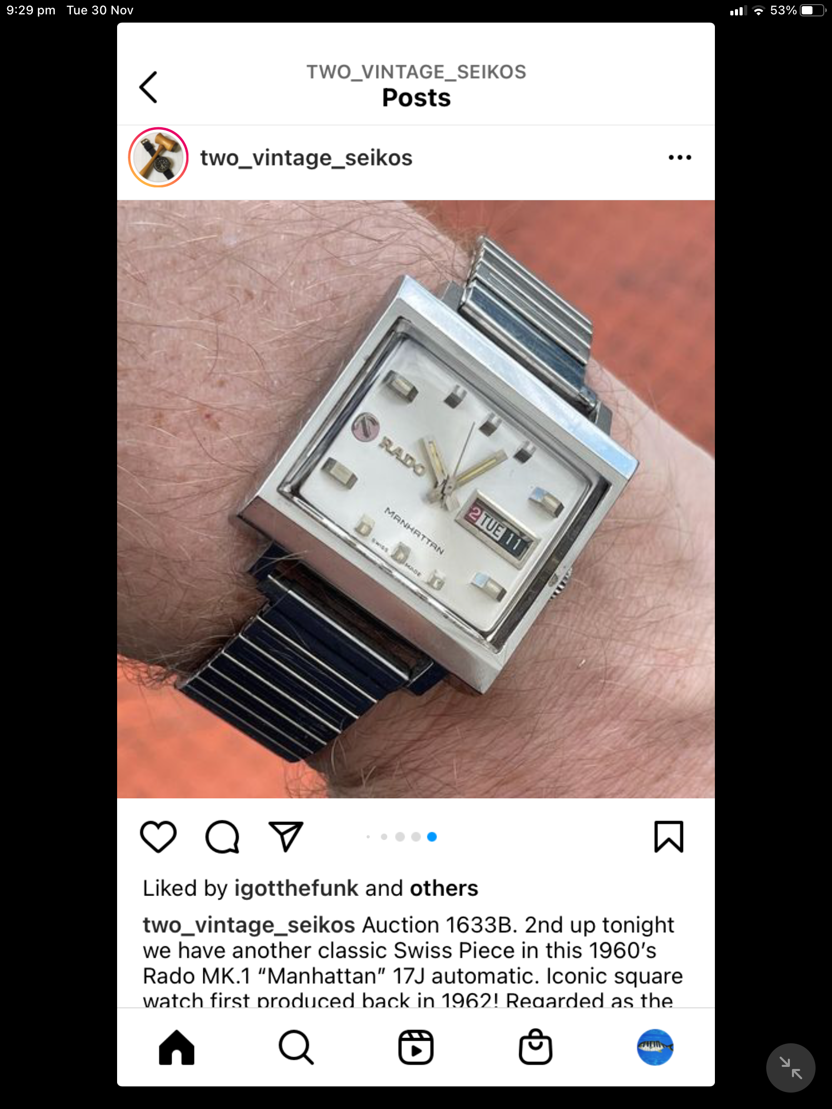 ·So, not old- but cool. This is one of the modern reissues of the classic Oceanographer in one of the alternate color ways. There is a lot of polarized opinions on these, but as a lover of the original 666’s, I was happy to see Citizen actually care to get these as close as they did to the originals. It is slightly larger than the OG’s at 44mm’s, but the UFO case actually makes them feel a bit smaller (bezel is actually around 41ish). The factory bracelet (again- nice remake of the bullet bracelet) and additional strap + full kit makes this a nice deal for the price- and seller has make offer.