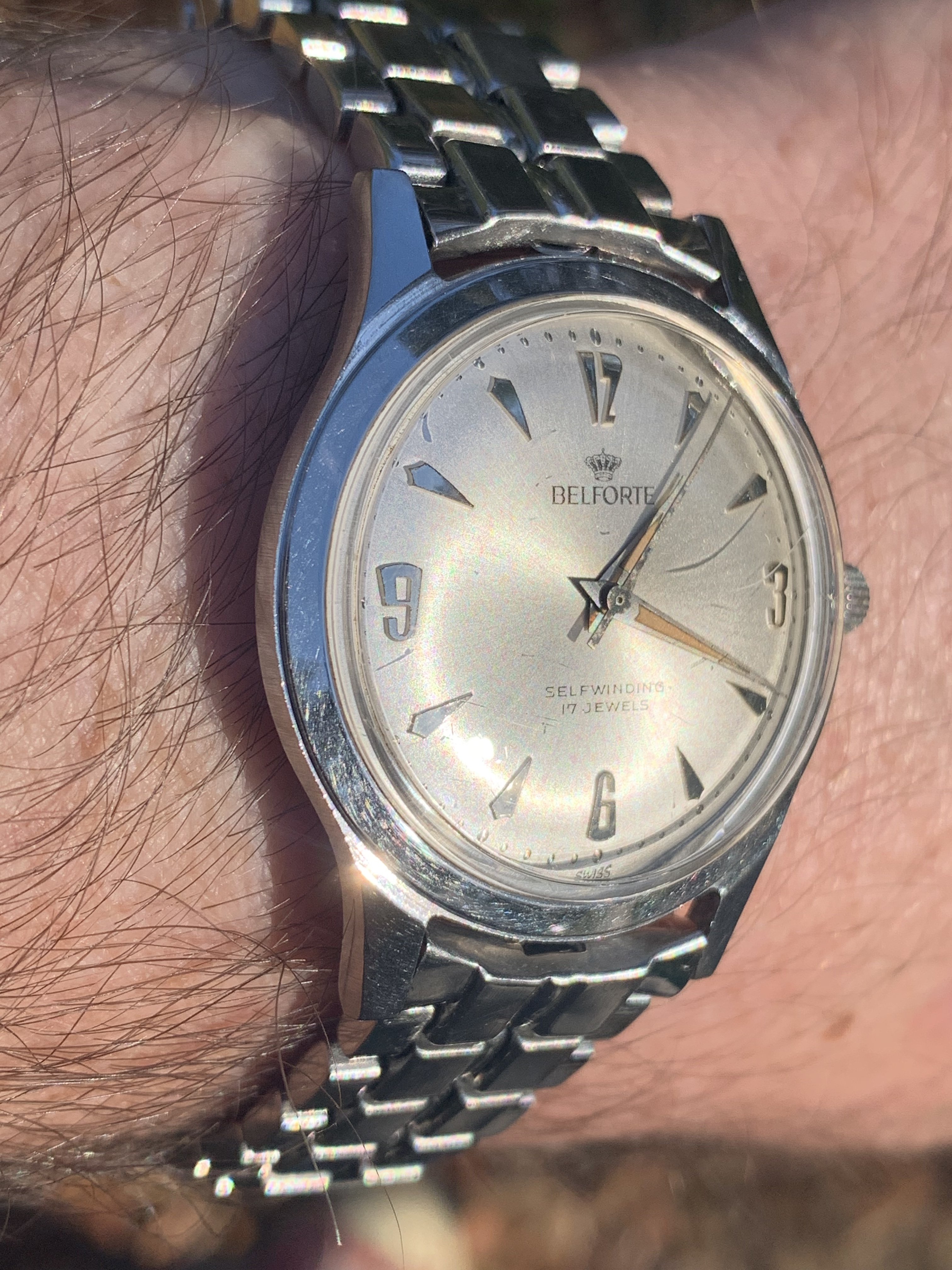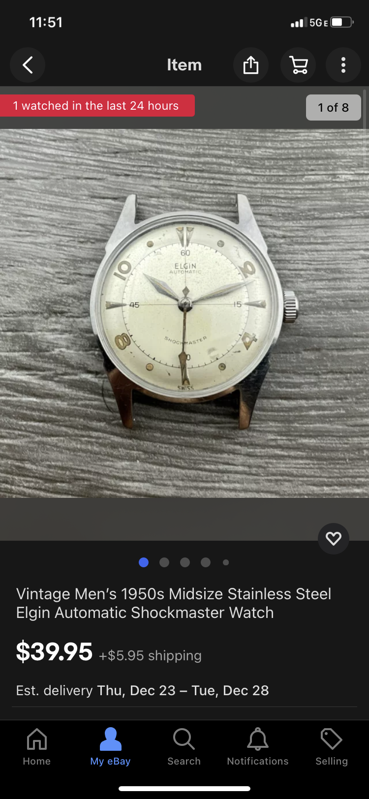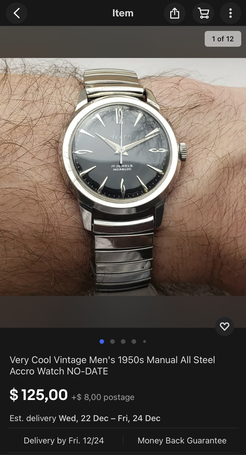 Stainless Seiko with an awesome two-fine blue dial and geometric case. Seller doesn’t say bracelet size and doesn’t specify if running but second has moves position in the pics. Finishes look to be intact- this thing will really pop after a clean-up. Has make offer so may be able to get it around $100.