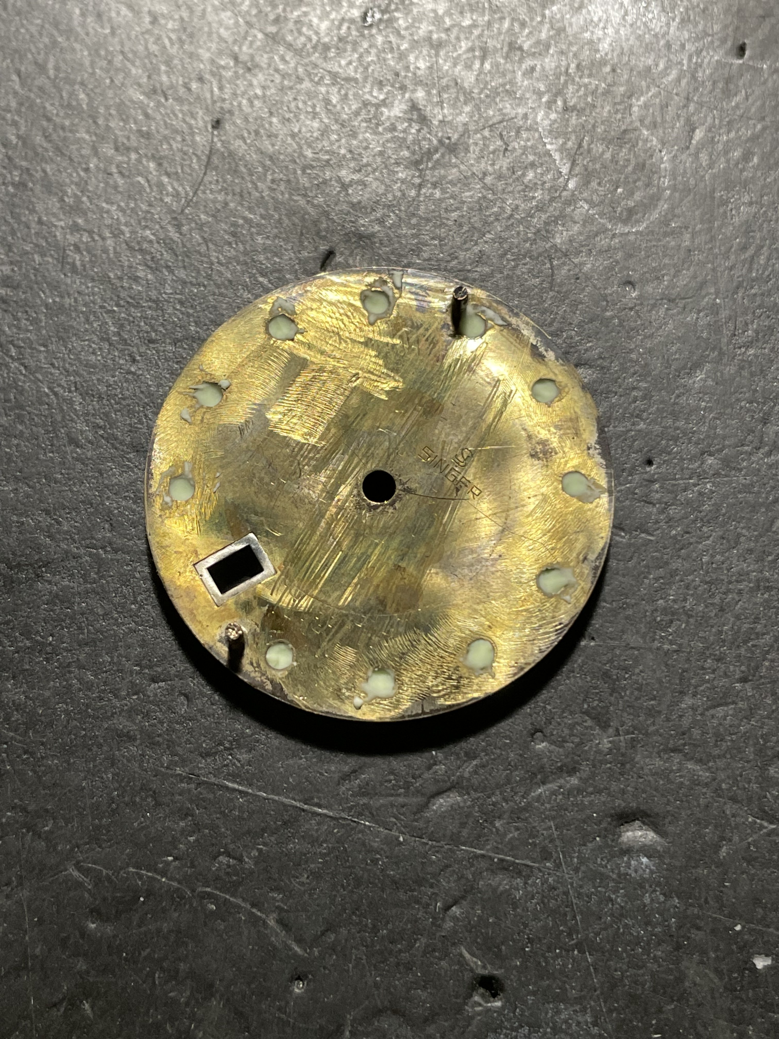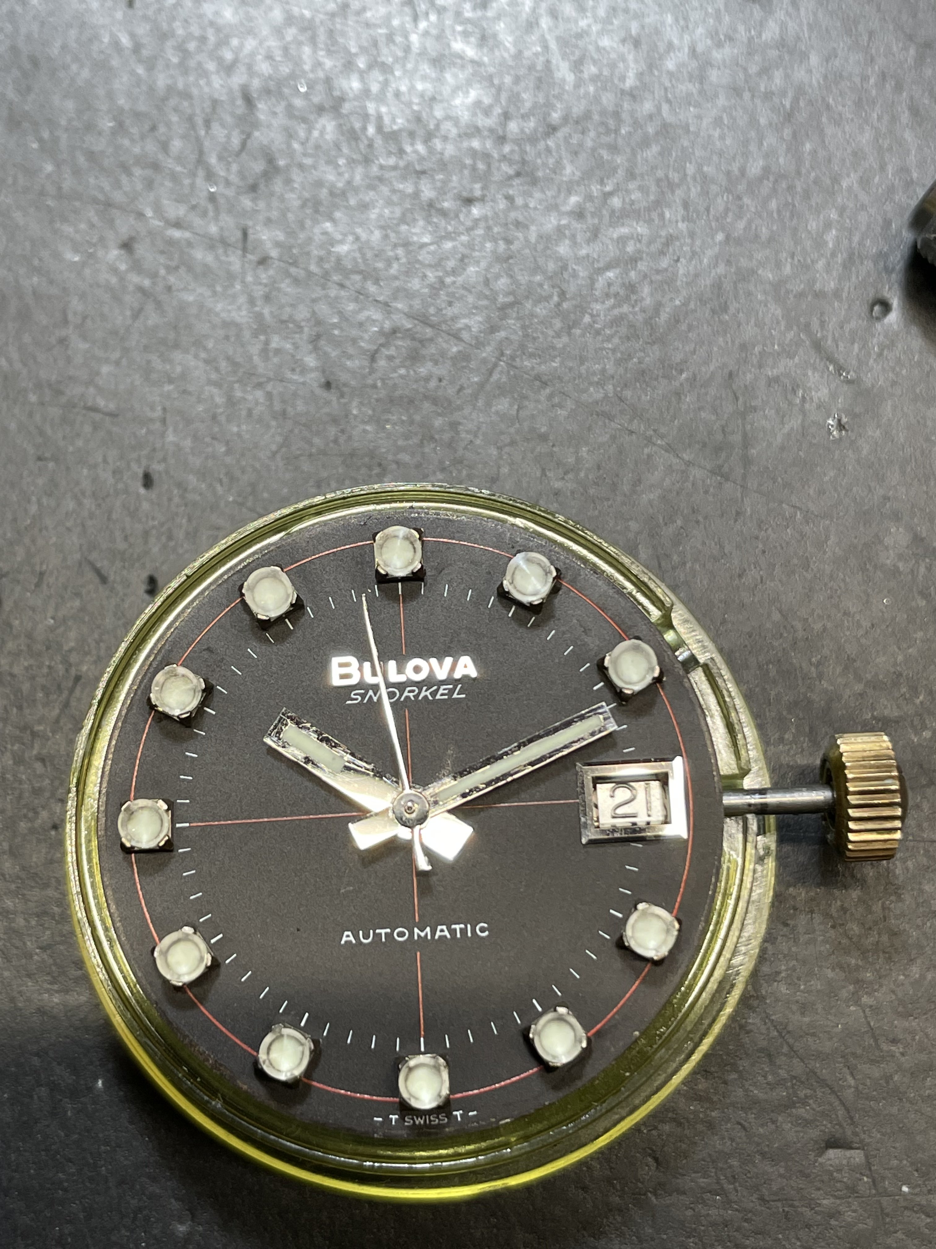 The lume had fallen out of the hands and was missing from about half of the filled “pots”. Rather than doing pips on the dial, Bulova chose to use applied acrylic “pots”, they are like little frosted blocks that illuminate with the lume below. I had no clue how these pots were filled, but in Bulova’s (Singer’s) infinite wisdom, they applied the pots to the dial, then filled the lume from underneath.