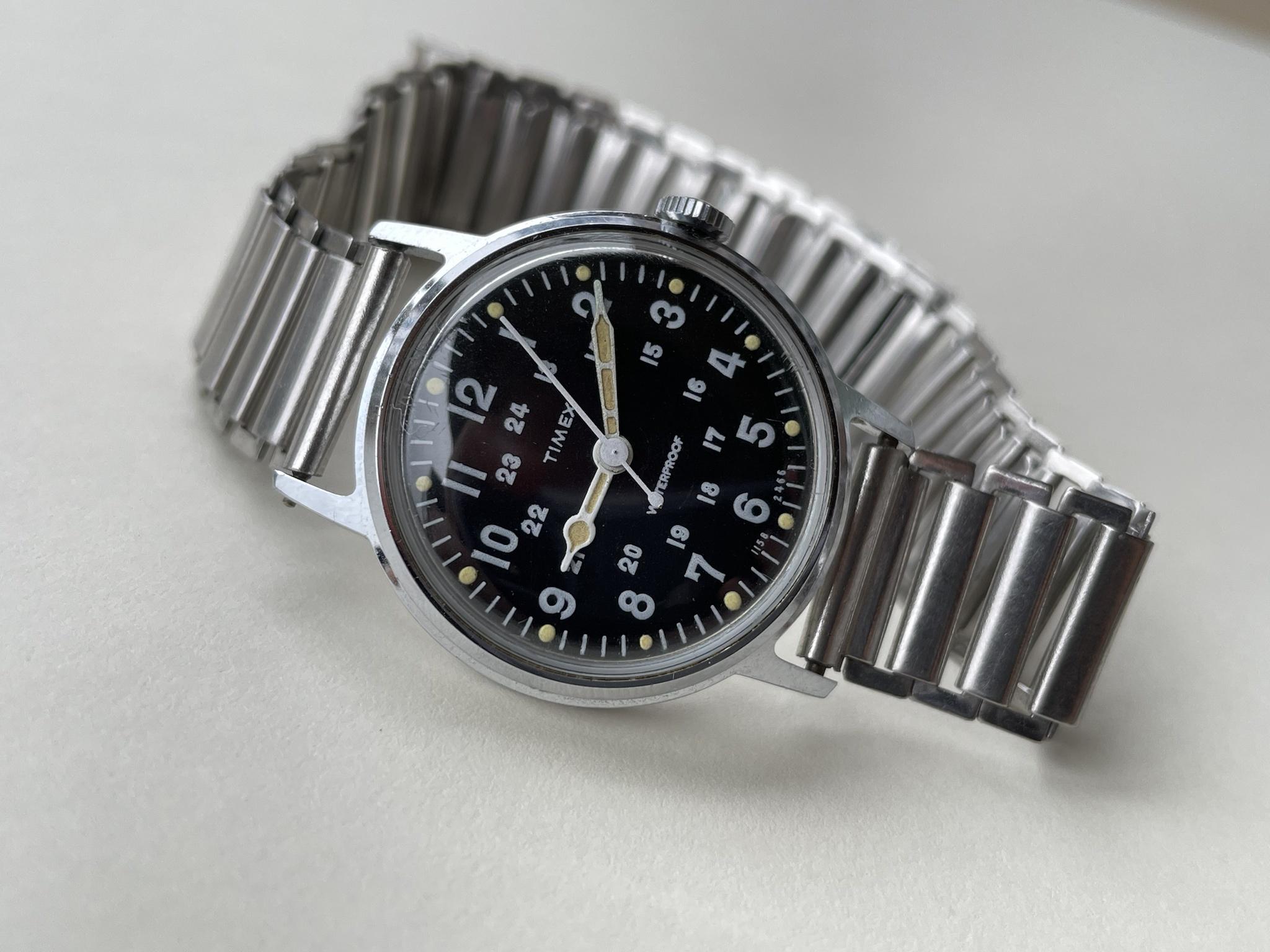 $275 or best offer on reddit for a really cleanly aged 1960's Timex Military inspired field watch with its original BonKlip bracelet. It's 32mm and hand wound.
